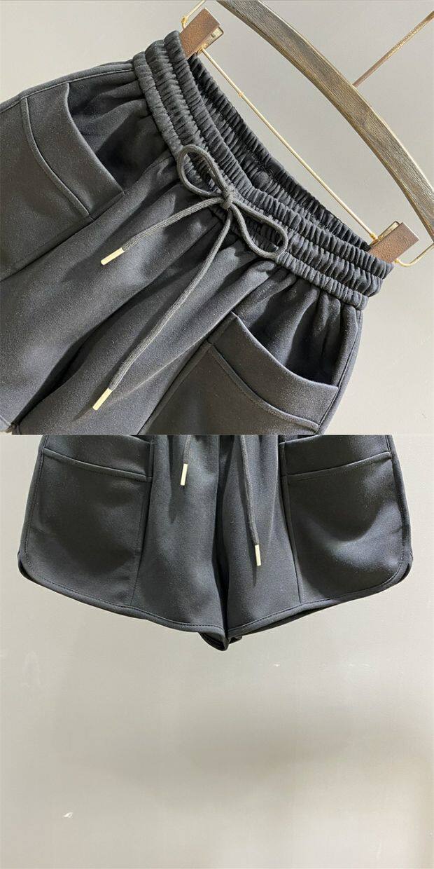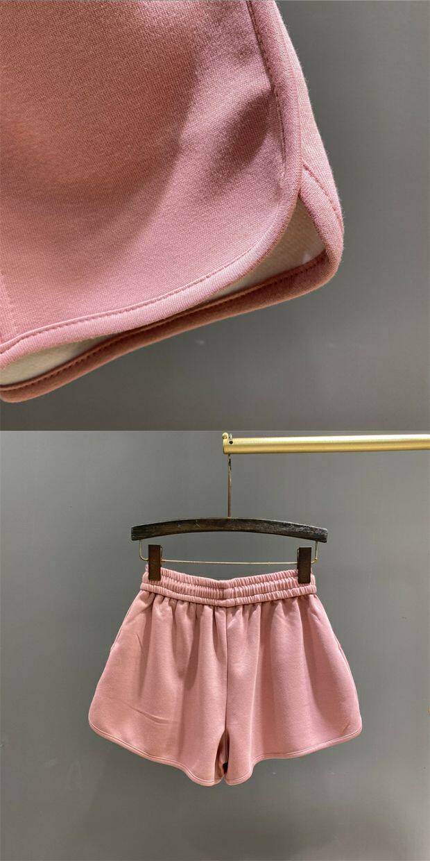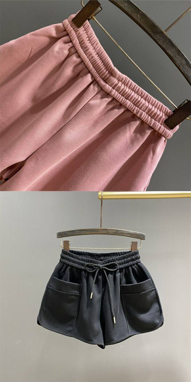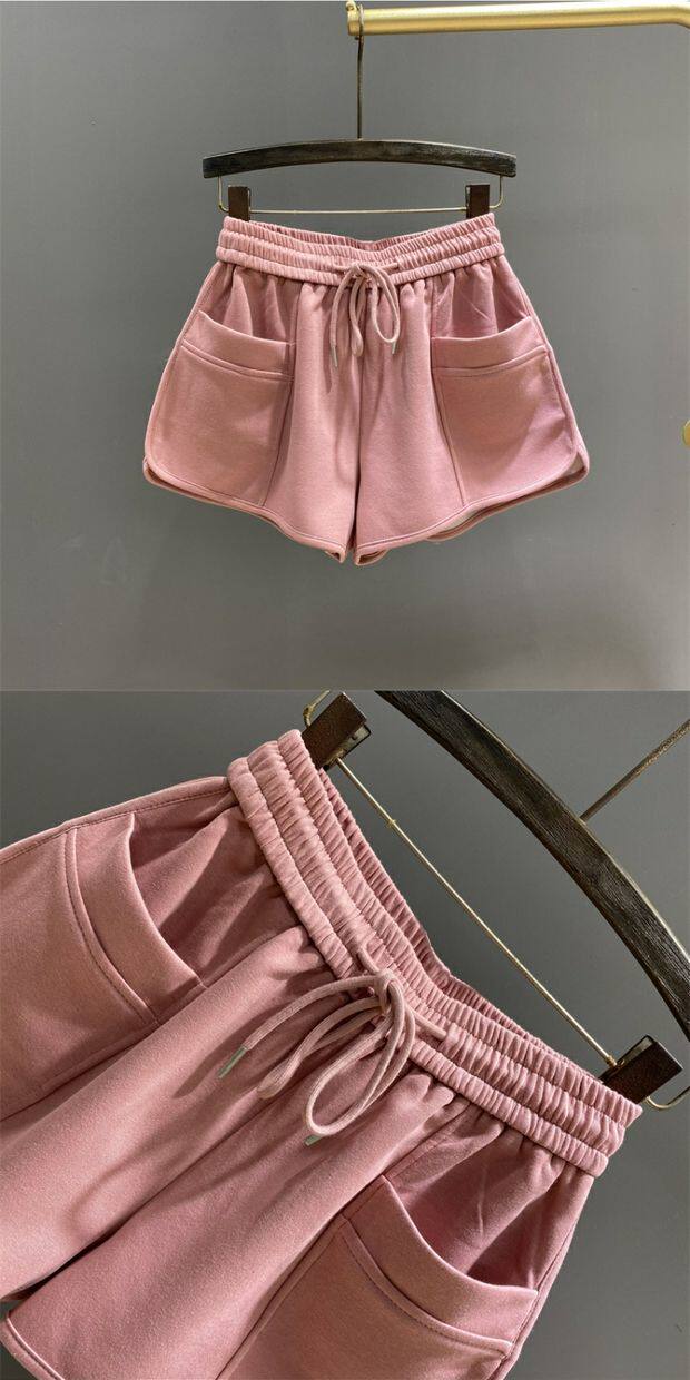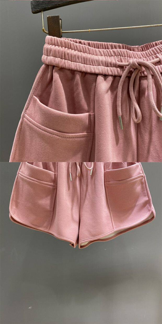 粉色松緊腰休閒運動短褲女2026年夏季新款寬鬆顯瘦A字濶腿褲熱褲