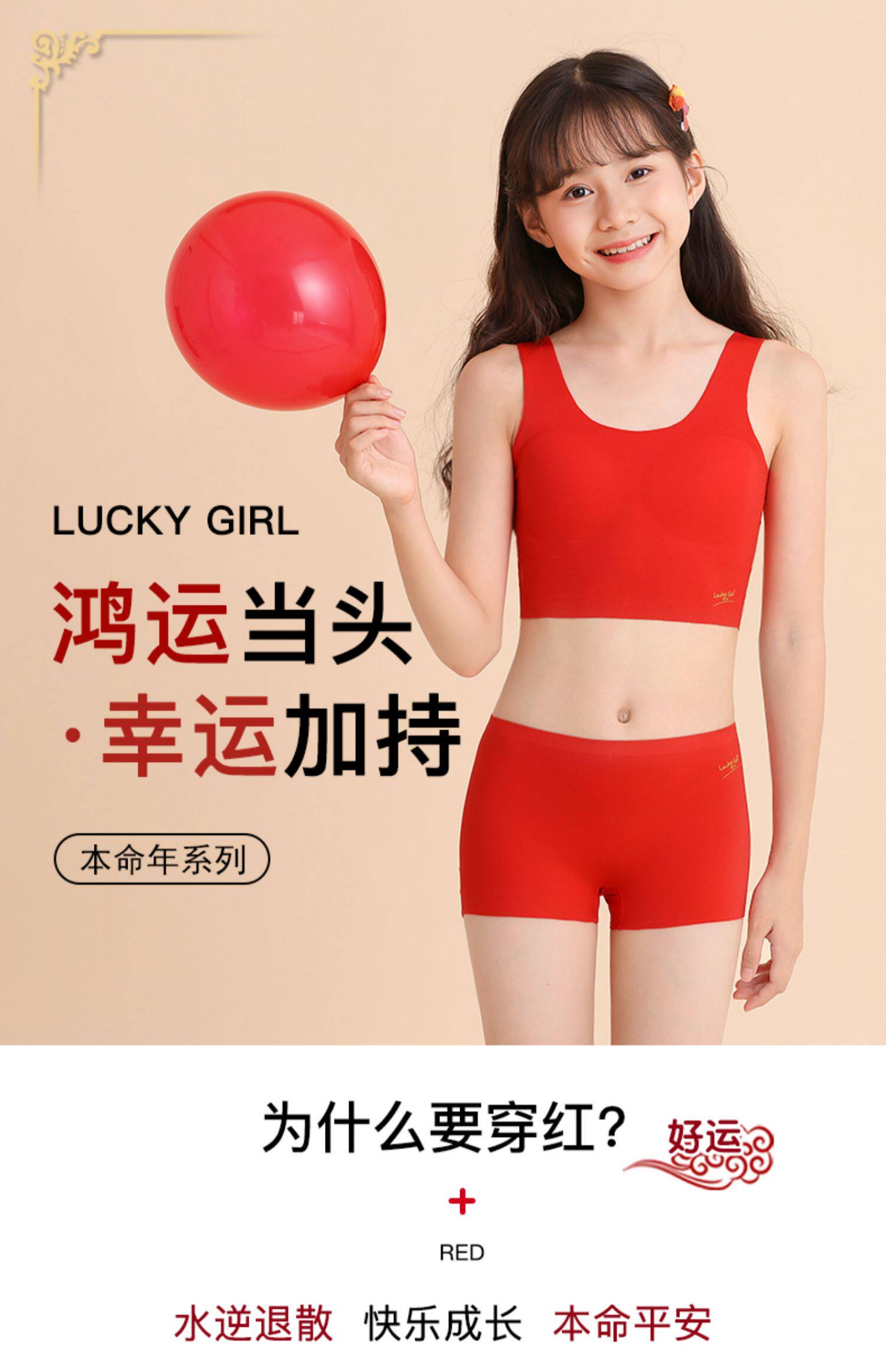女童本命年背心兒童大紅色內褲中大童發育期12嵗女孩純棉內衣套裝