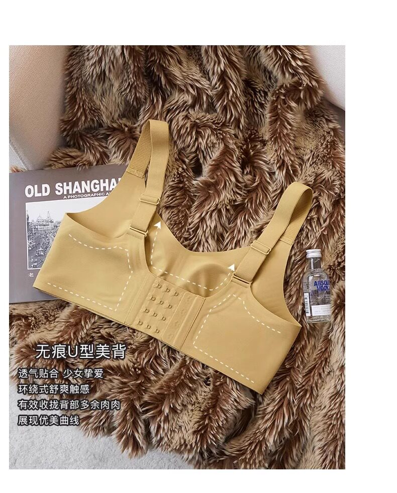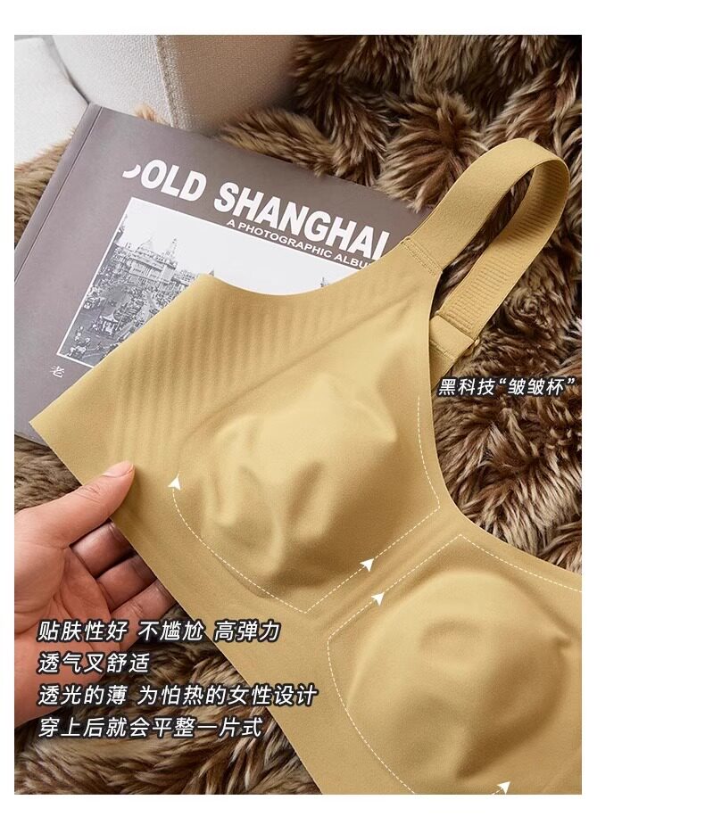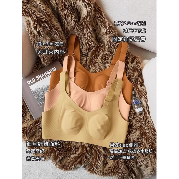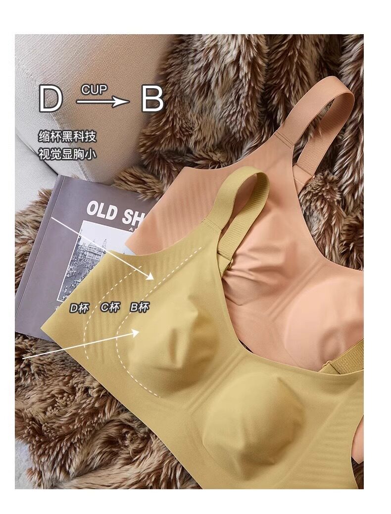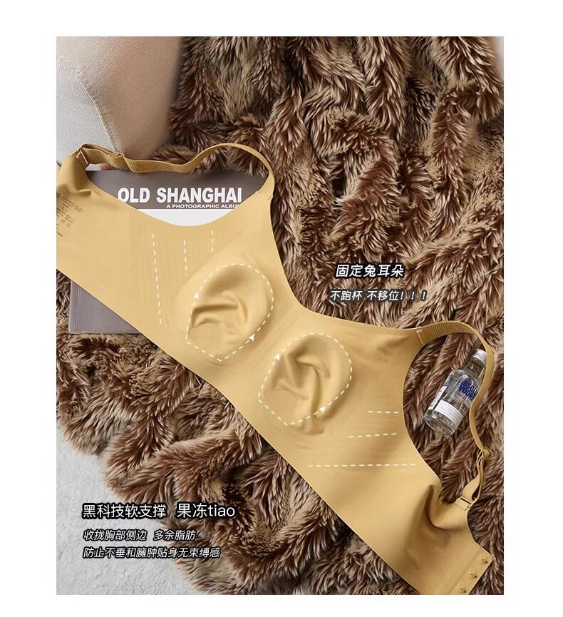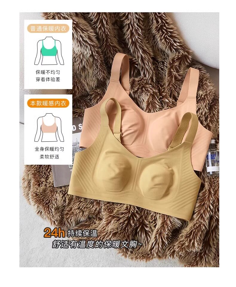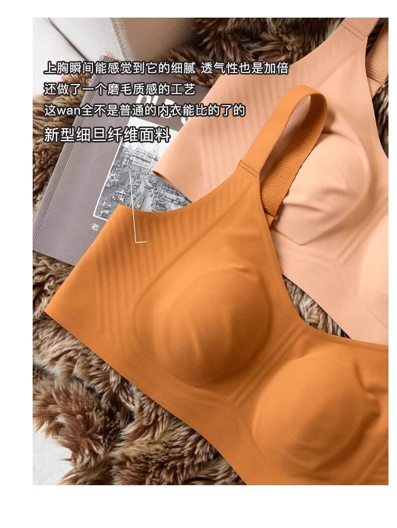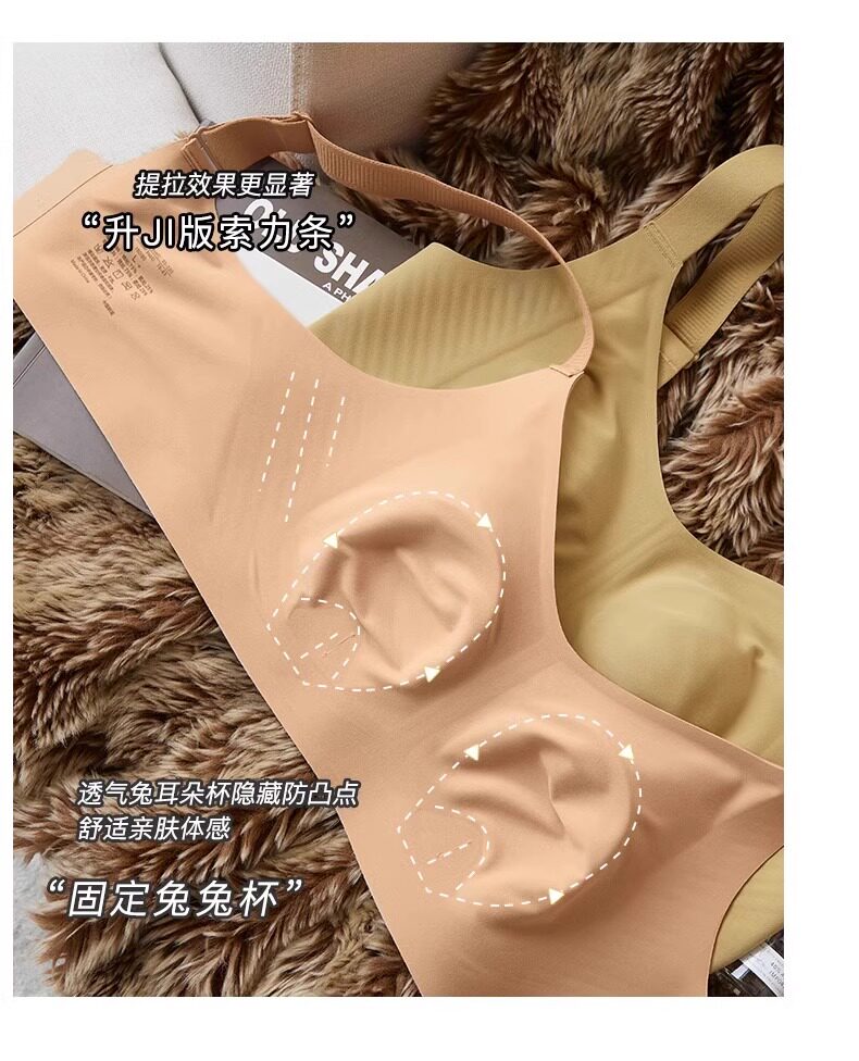 秋冬磨毛薄款兔耳朵大胸顯小保暖內衣無痕收副乳背心無鋼圈文胸罩