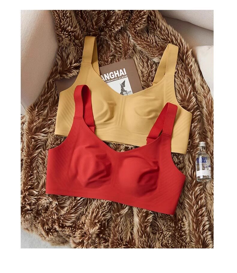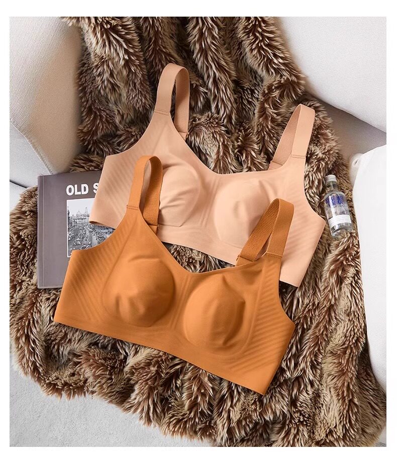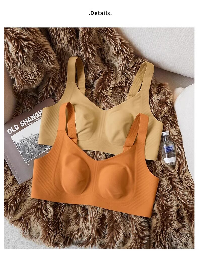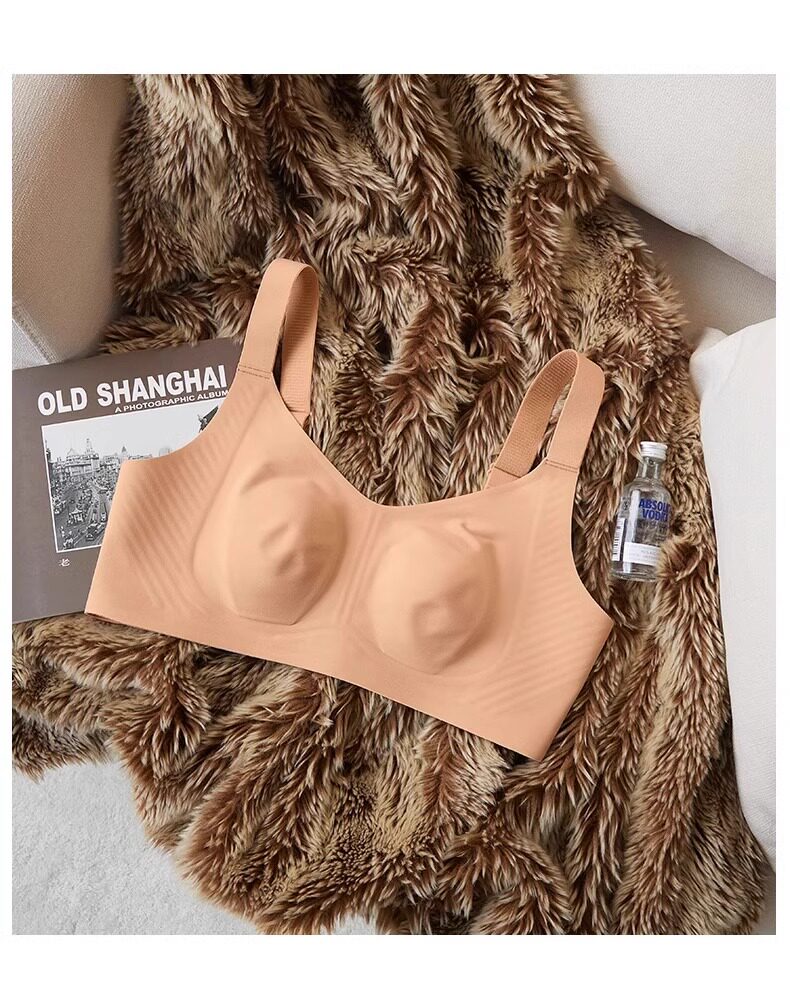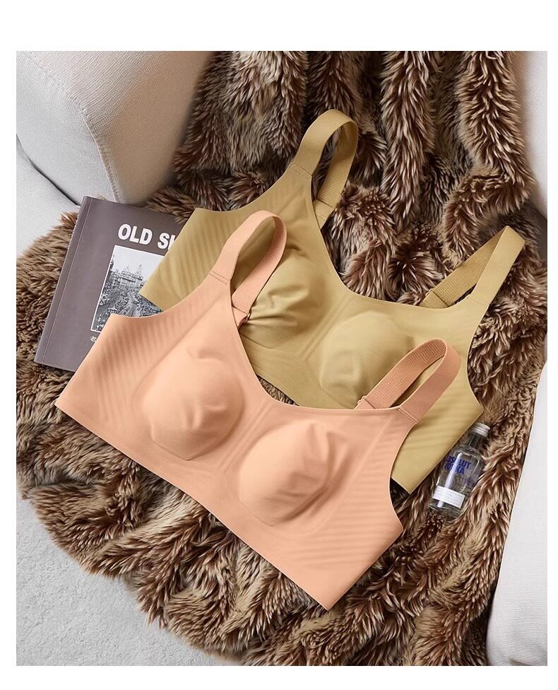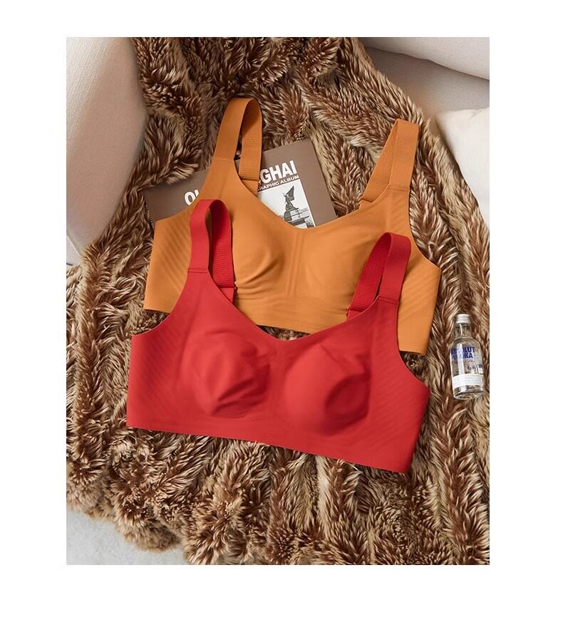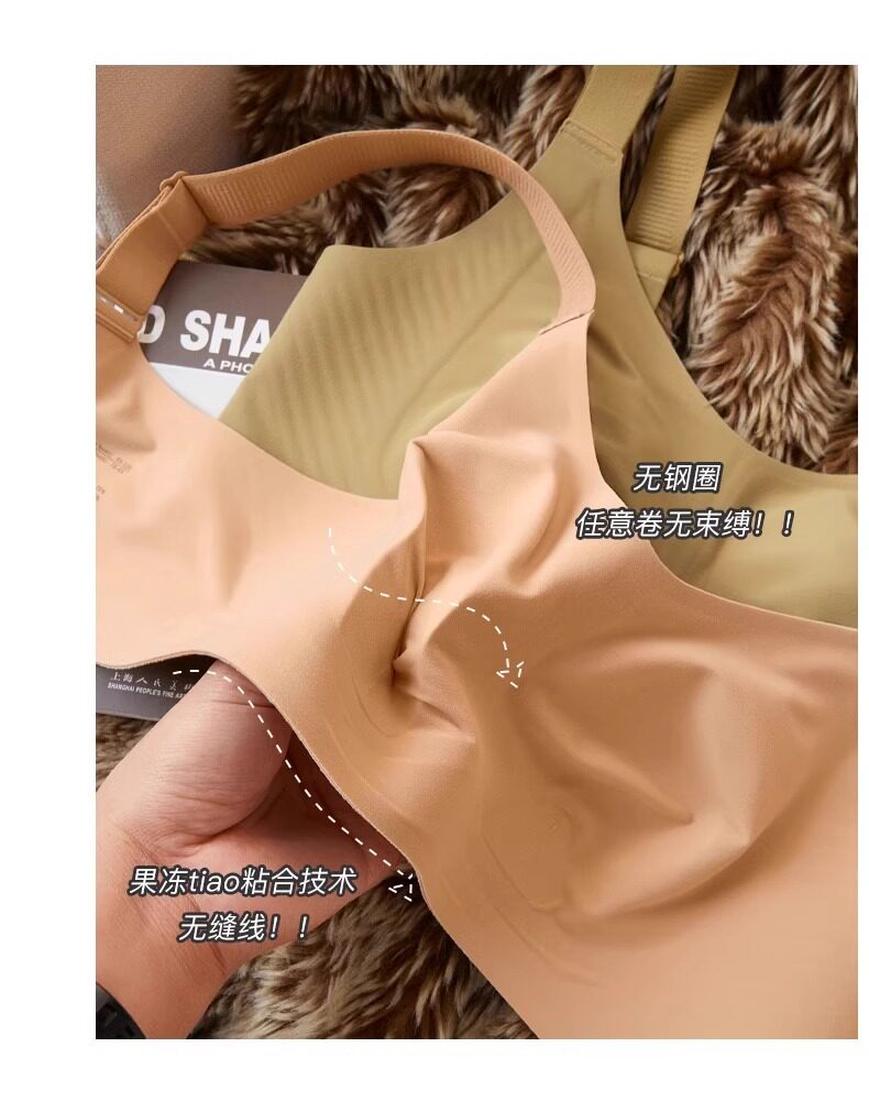 秋冬磨毛薄款兔耳朵大胸顯小保暖內衣無痕收副乳背心無鋼圈文胸罩