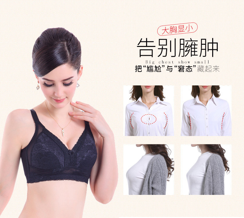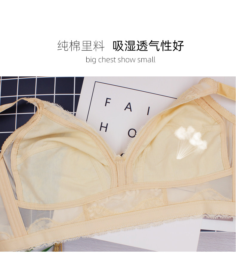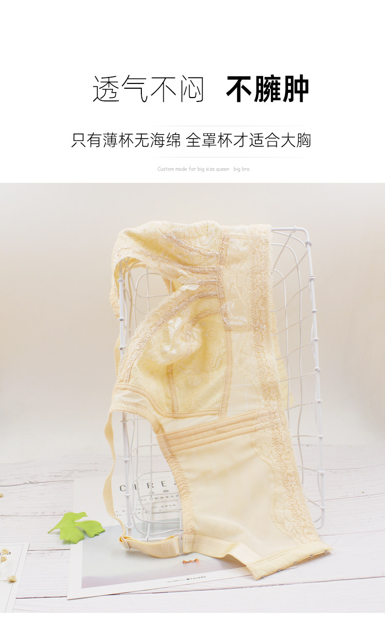 大胸顯小全罩杯文胸無鋼圈超薄款胖MM加大碼胸罩縮胸顯胸小內衣女