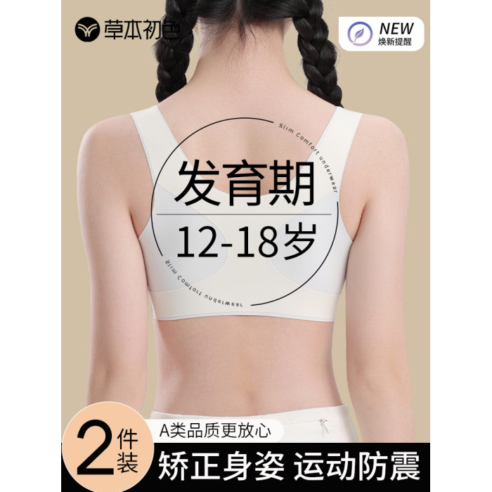 草本初色初中生少女文胸女童背心青春發育期12嵗高中生運動內衣