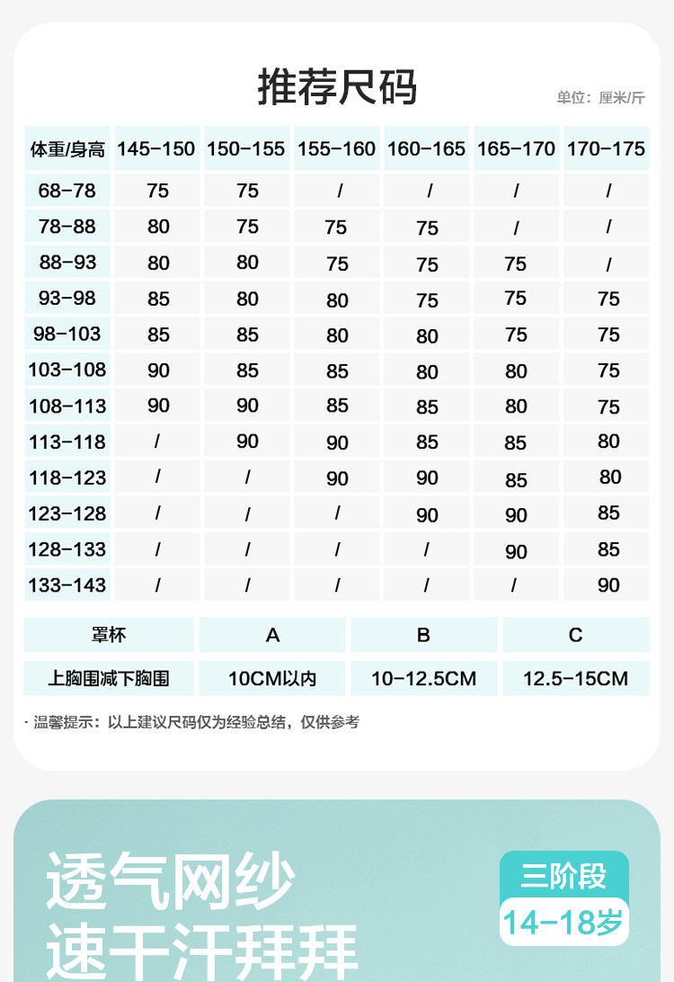 高中生少女文胸發育期少女內衣青春期少女發育期青少年運動內衣