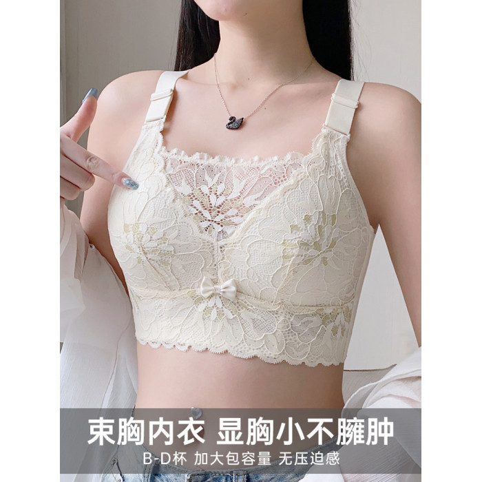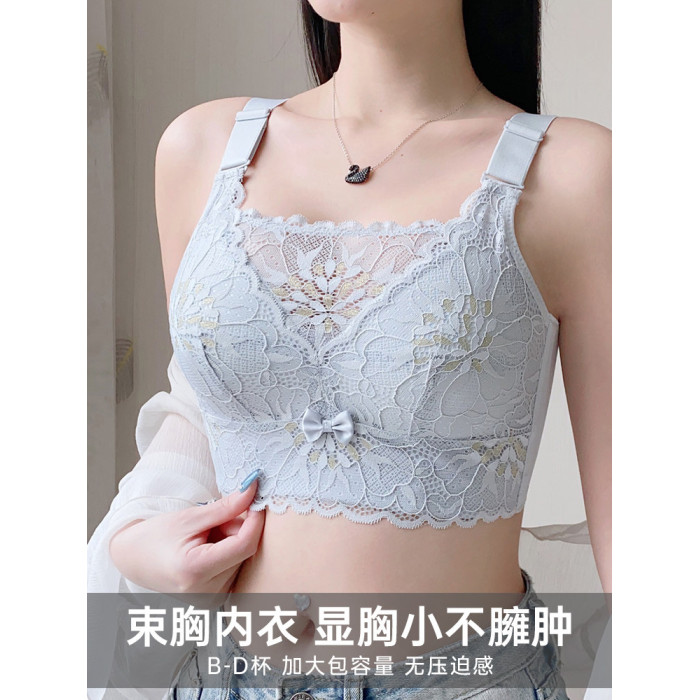 內衣女大胸顯小薄款聚攏防走光抹胸收副乳防下垂夏天無鋼圈文胸
