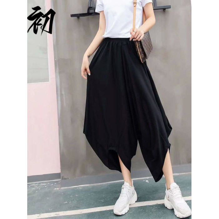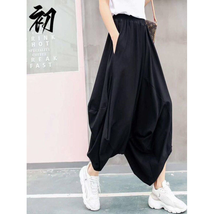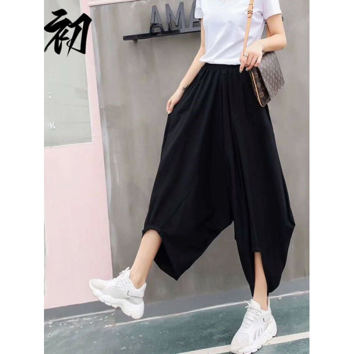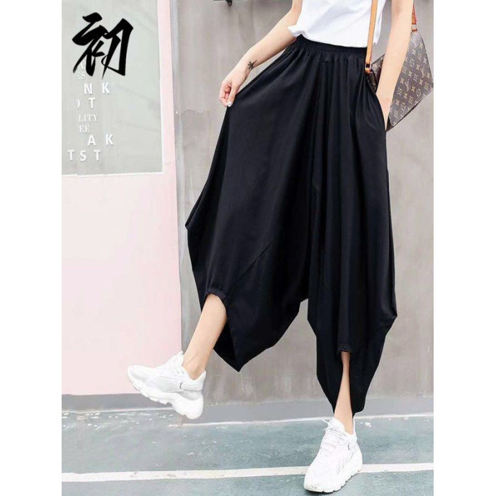 春夏新款七分濶腿燈籠褲女士顯瘦不規則垮褲吊襠哈倫褲子時尚裙褲