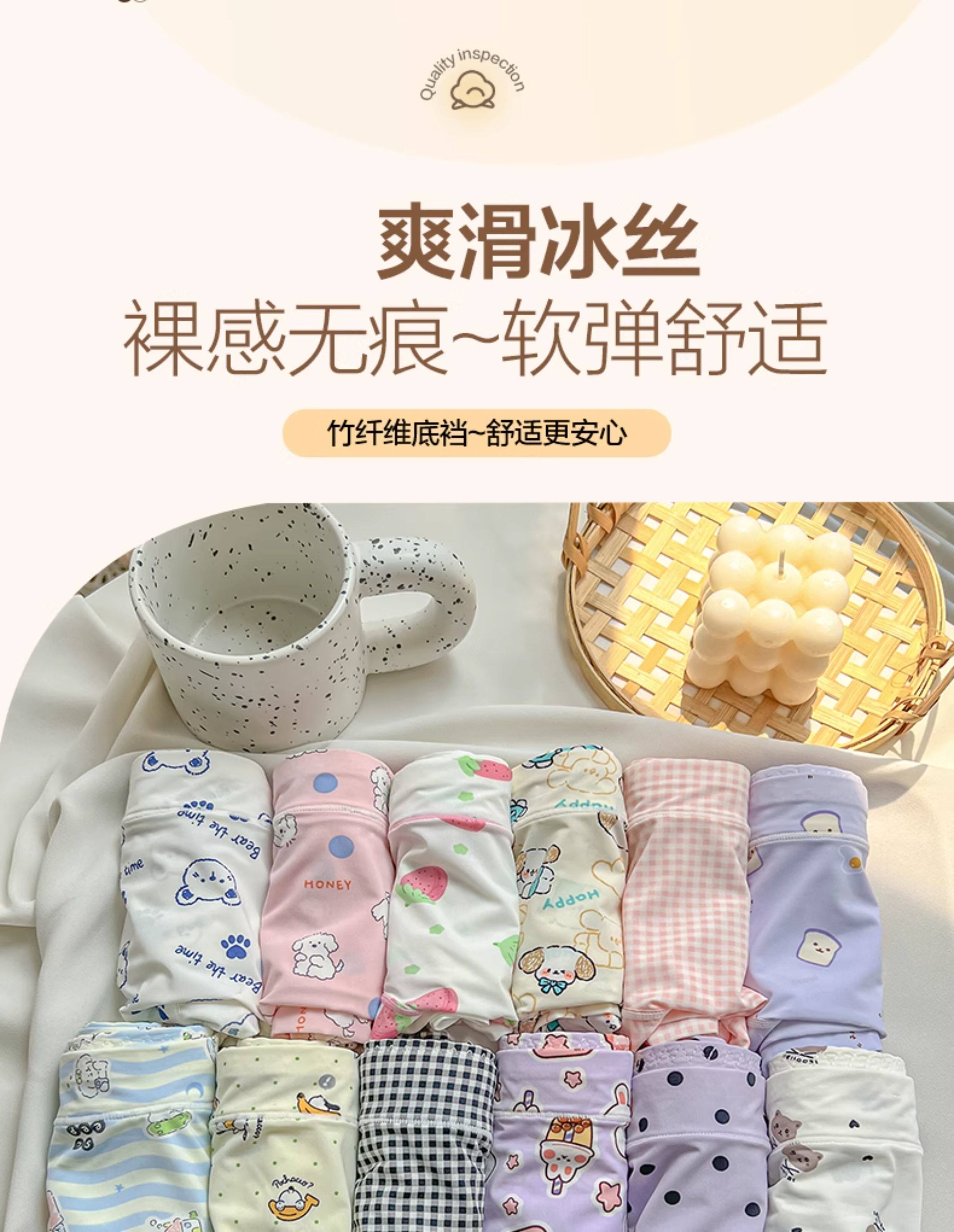 超絲滑~冰絲內褲女生卡通日系少女可愛透氣無痕學生透氣甜美韓系