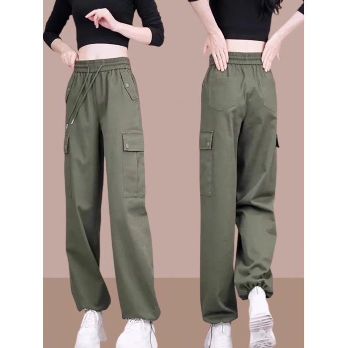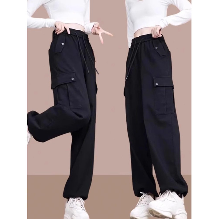 工裝褲2025春秋季新款女士寬鬆高腰休閒褲運動褲百搭束腳哈倫褲子
