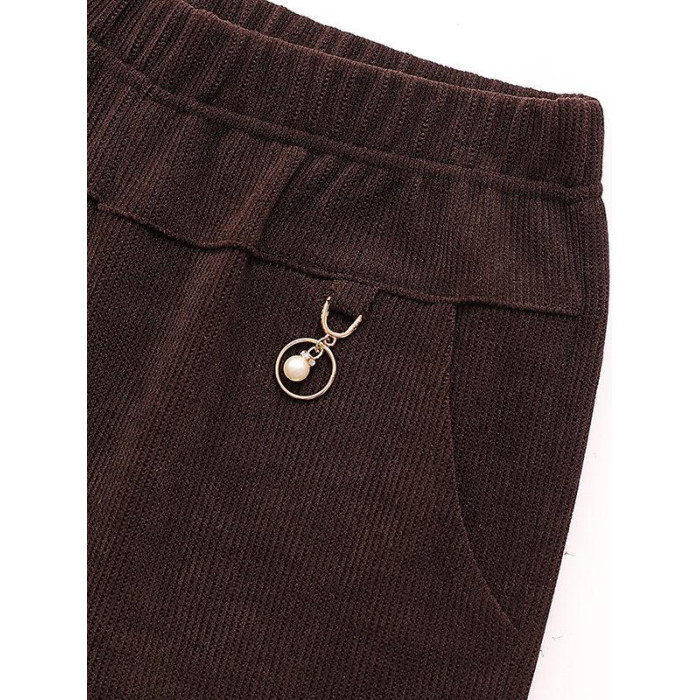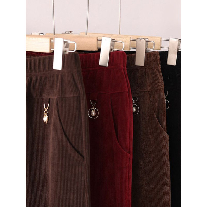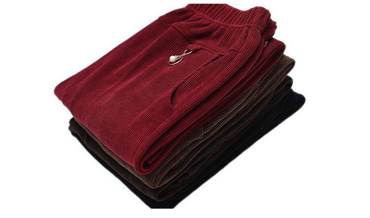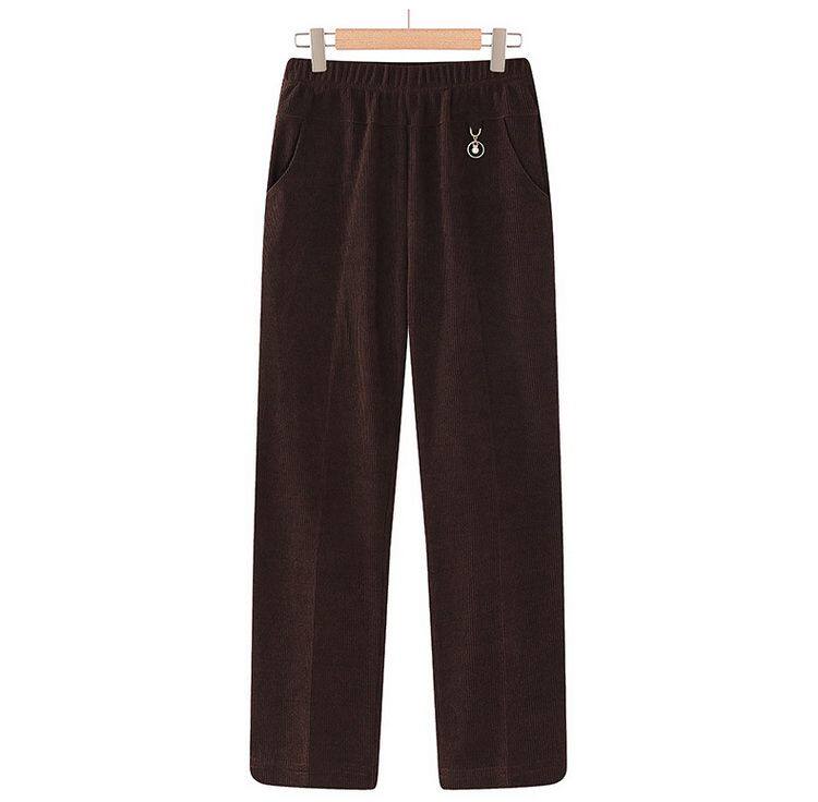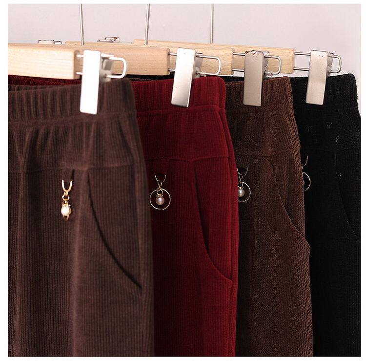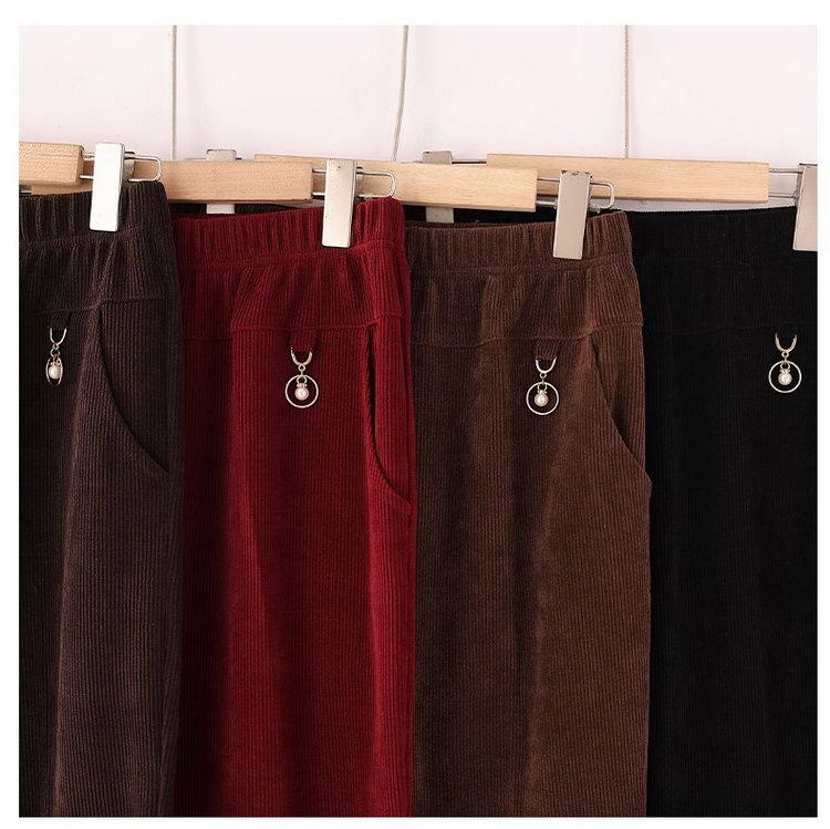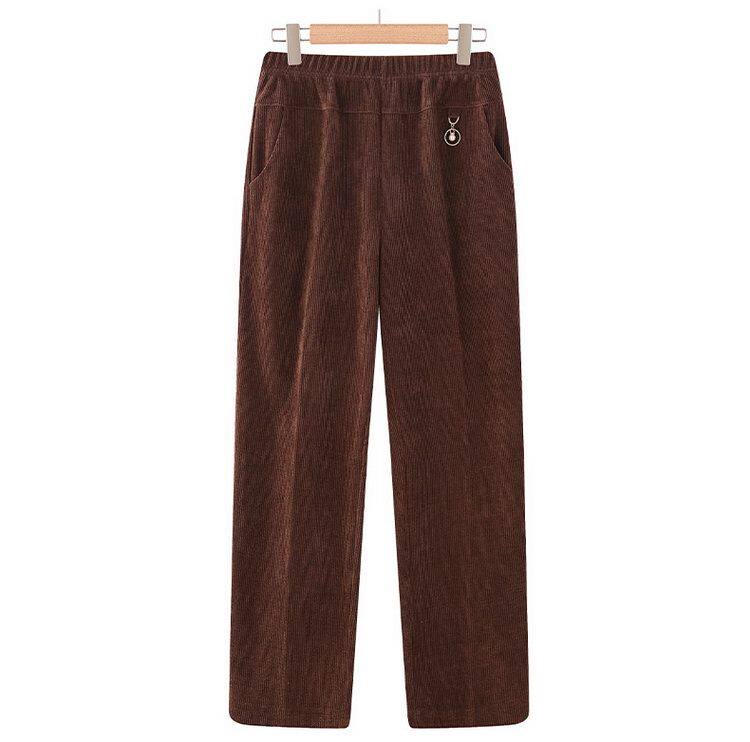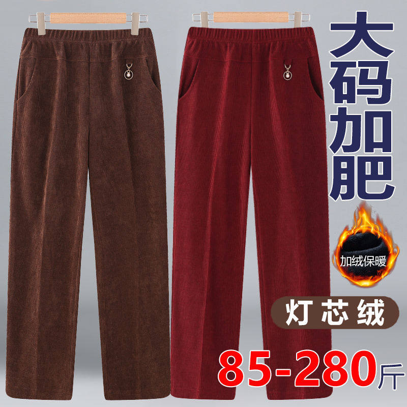 200斤秋冬胖媽媽加絨燈芯絨女褲子加肥加大碼高腰春秋中年條絨褲