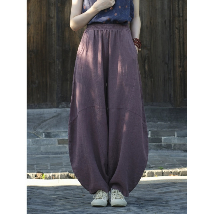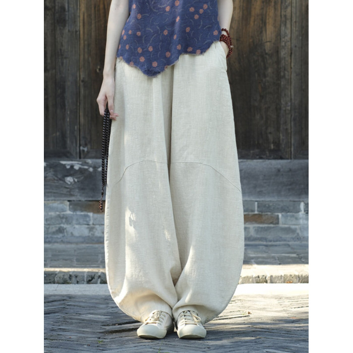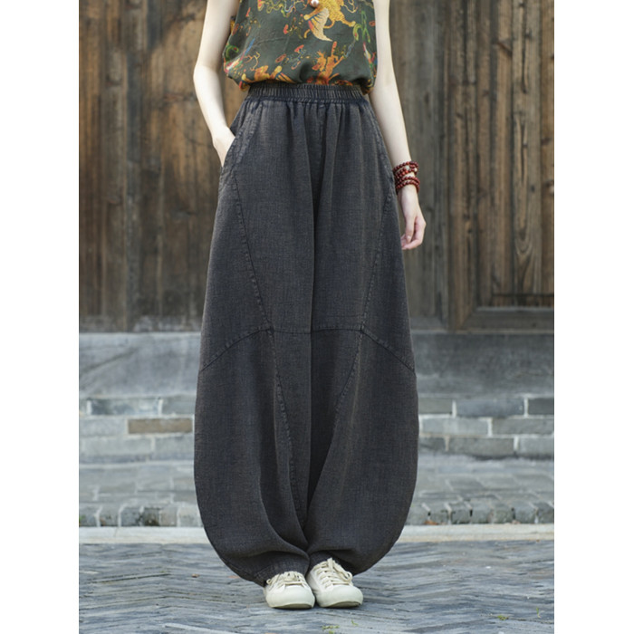 棉麻打坐褲子女炒色做舊休閒褲寬鬆長褲禪修高腰太極燈籠褲26春秋