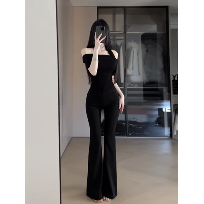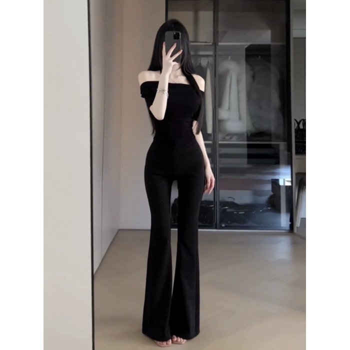 小個子150XS秋季韓版簡約百搭高腰顯瘦修身純色休閒彈力喇叭褲女