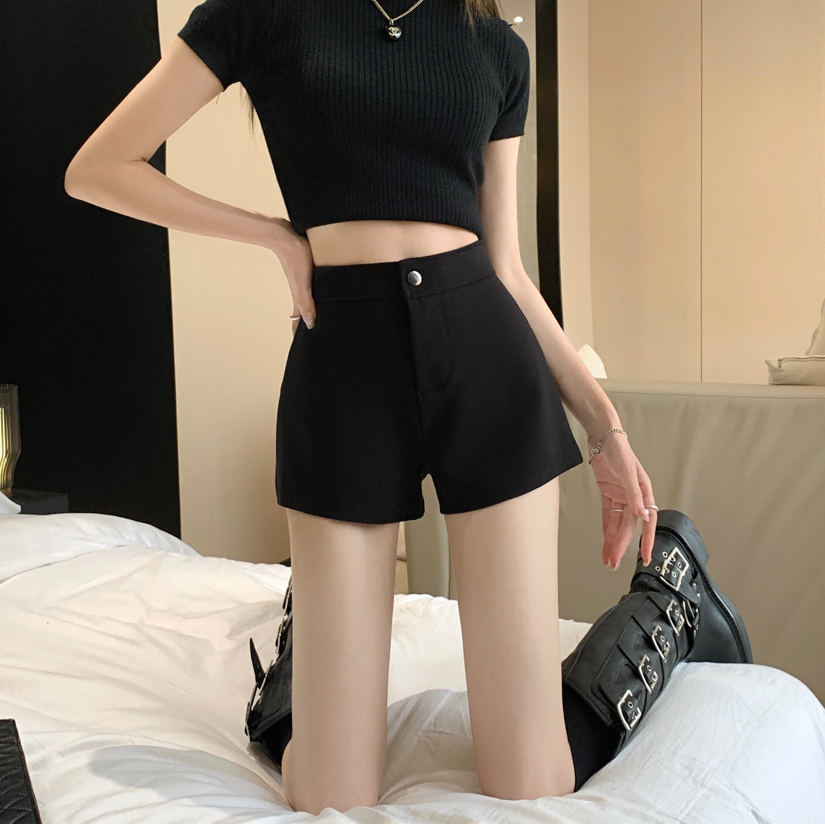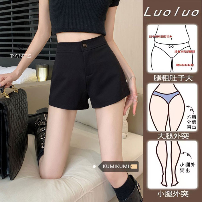 辣妹緊身休閒西裝短褲女春2026新款大碼胖mm高腰顯瘦直筒濶腿熱褲
