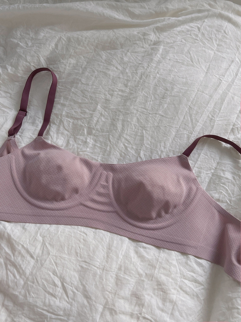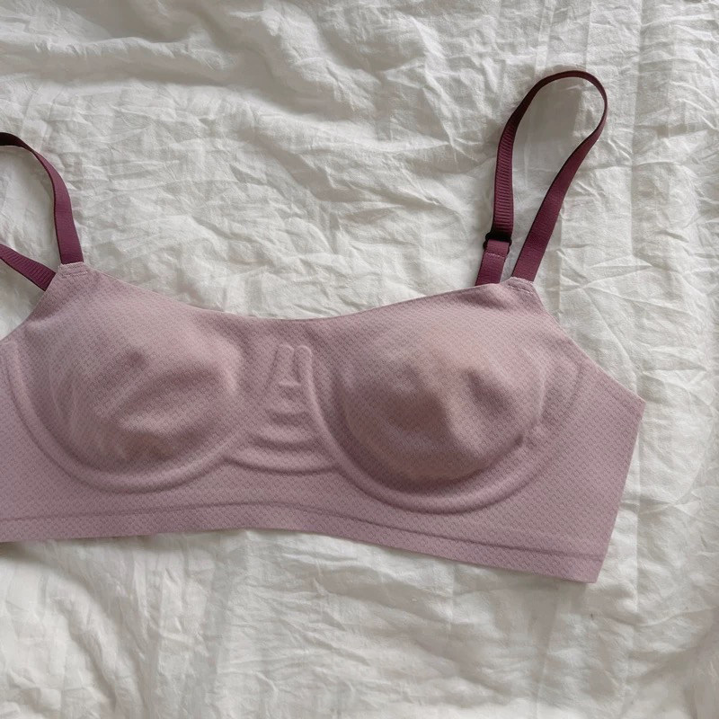 裸感冰肌大胸顯小薄款內衣女無鋼圈無痕上托防下垂舒適果凍文胸