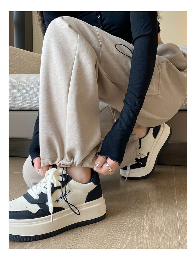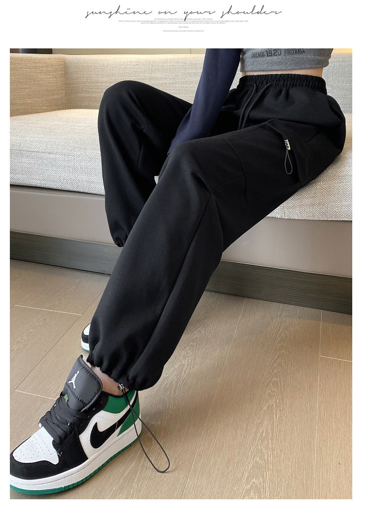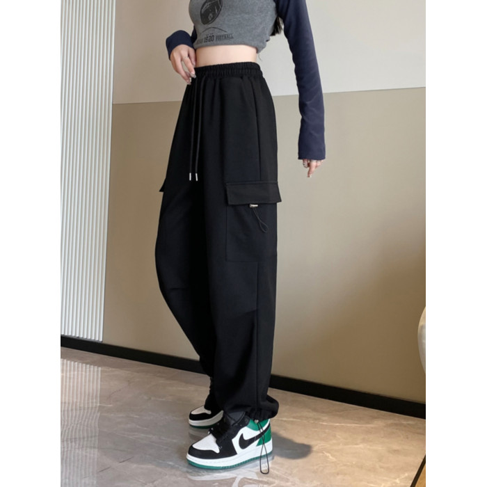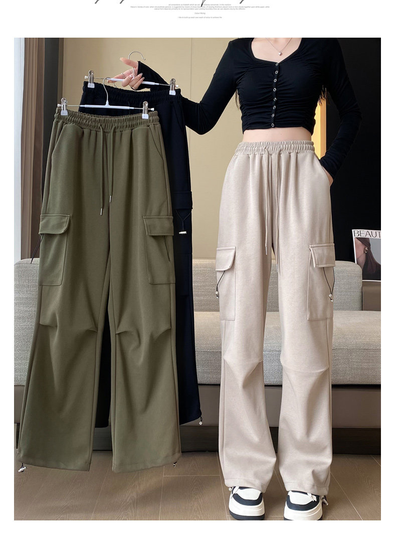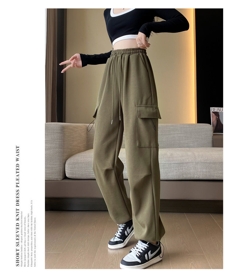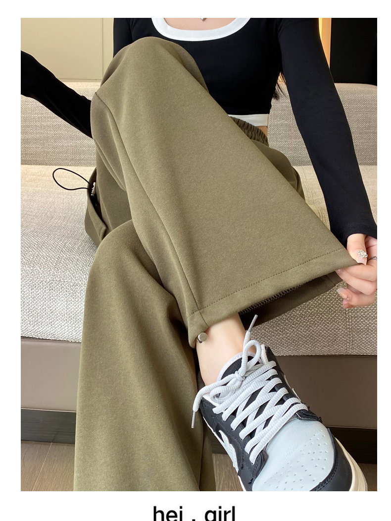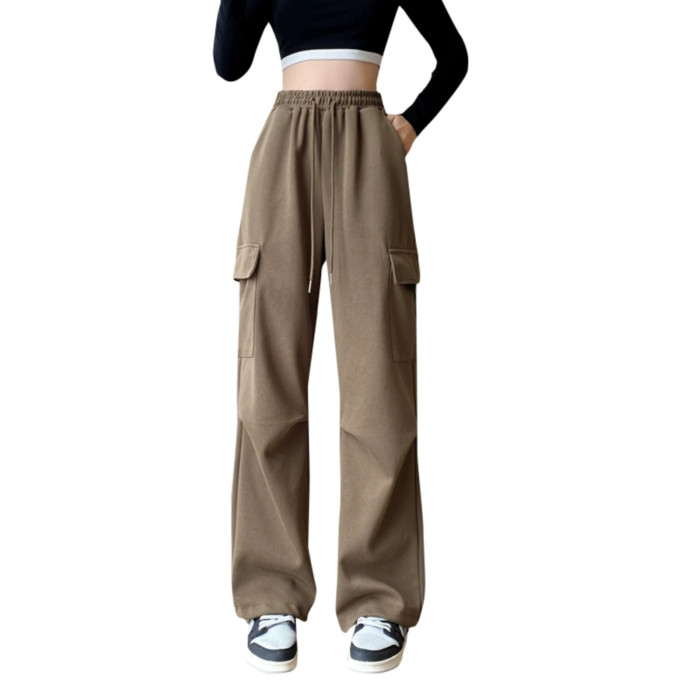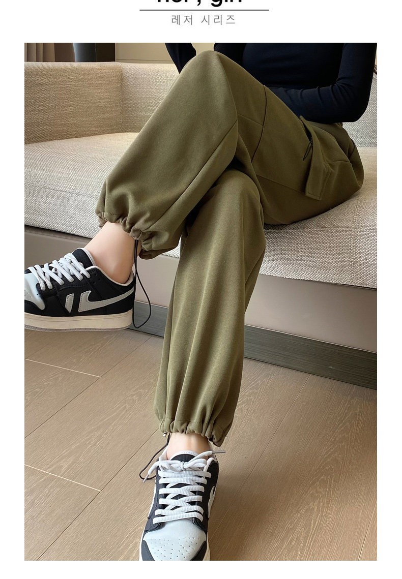 美式加絨工裝褲女秋冬高腰綁帶垂感直筒濶腿褲小個子休閒運動衛褲