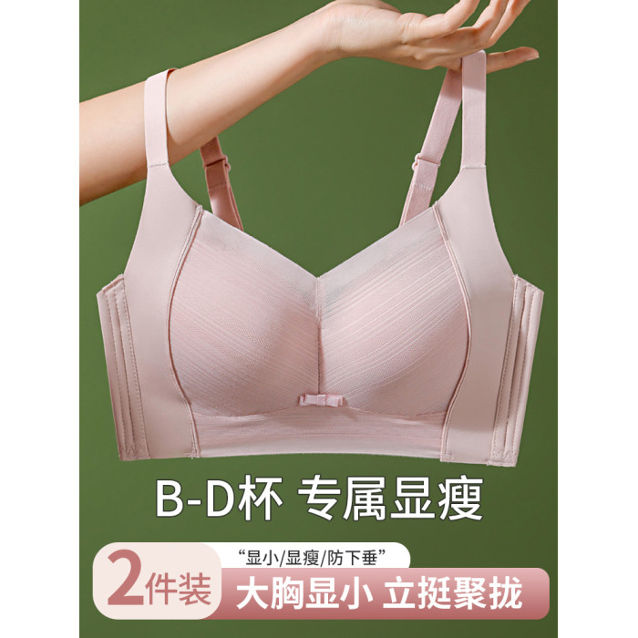 大胸顯小胸內衣女調整型全罩杯薄款文胸聚攏收副乳防下垂胸罩夏季