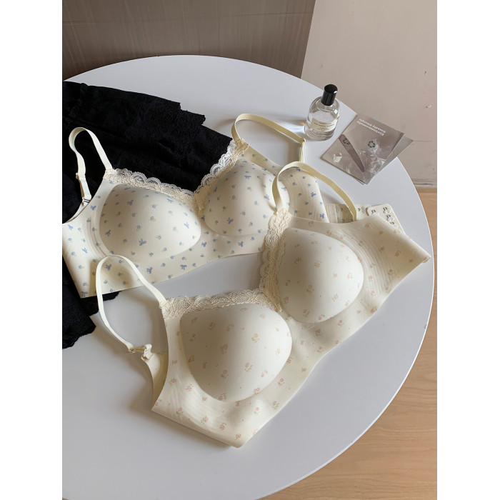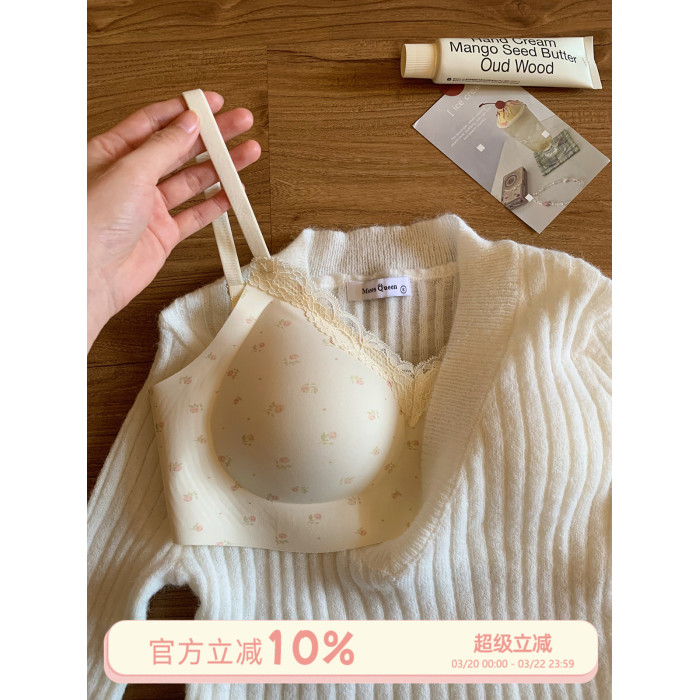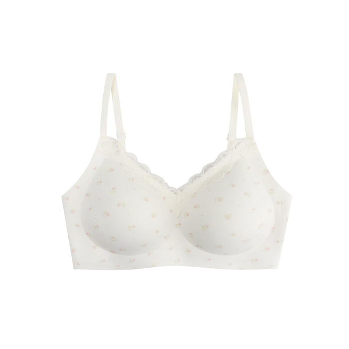 馨幫幫Bra 甜美碎花蕾絲無痕內衣女小胸聚攏舒適無鋼圈防下垂文胸