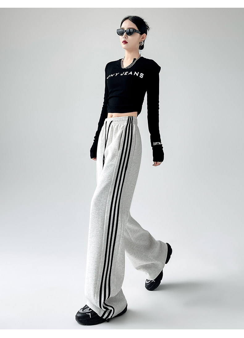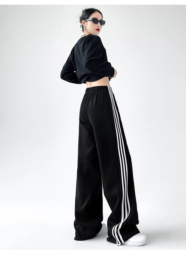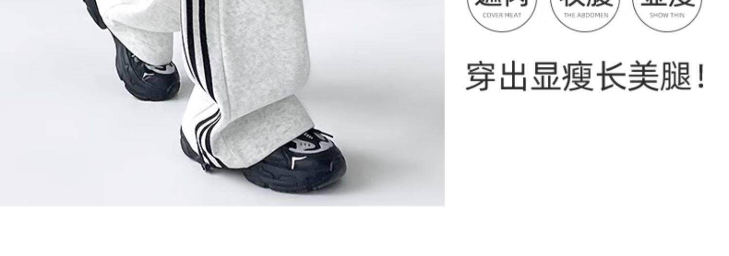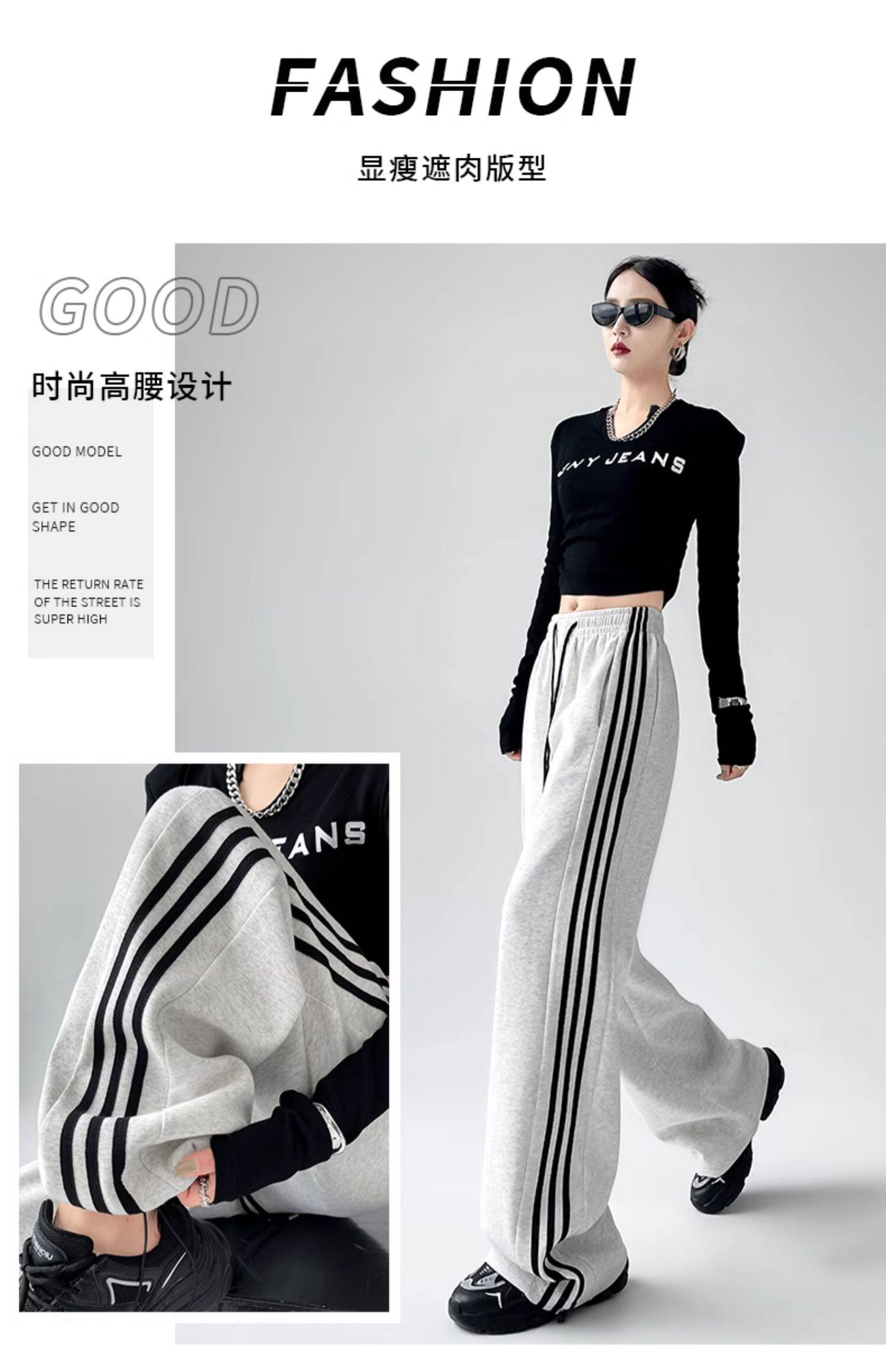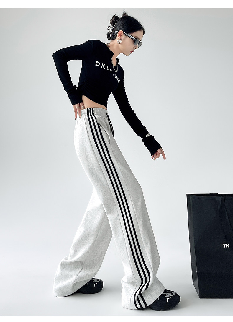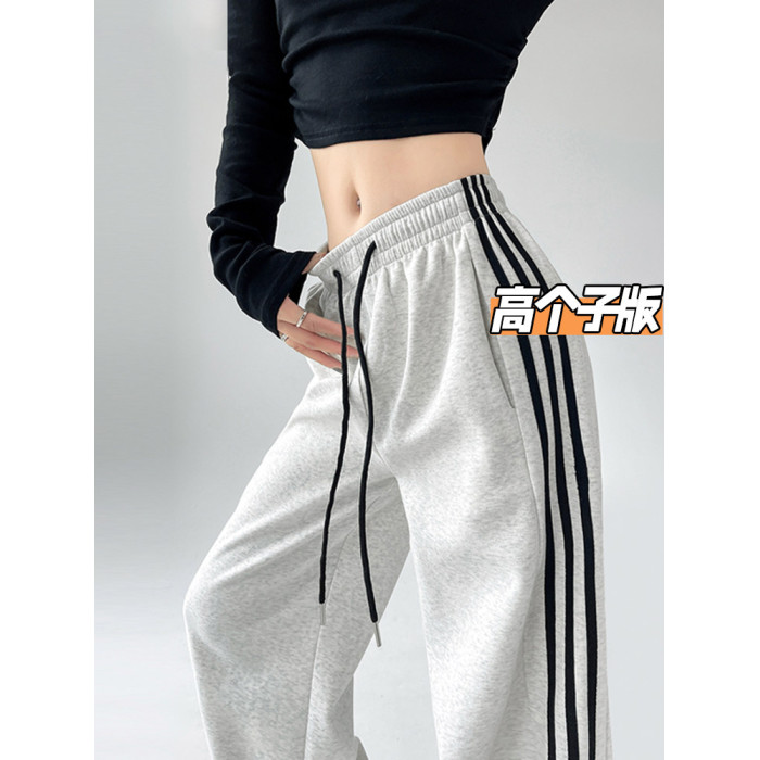 高個子超長175美式運動褲女春秋款高腰垂感寬鬆直筒慵懶條紋衛褲