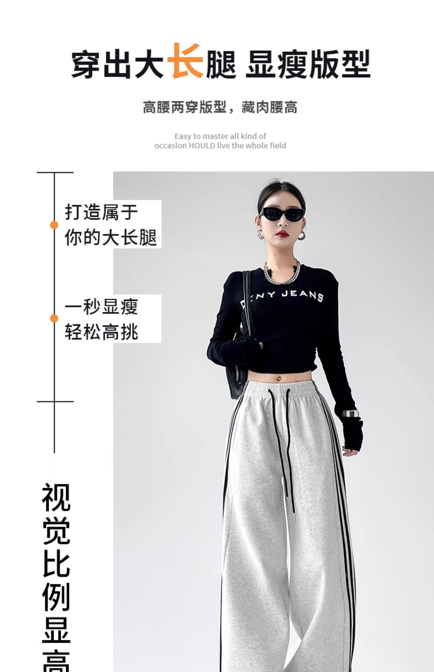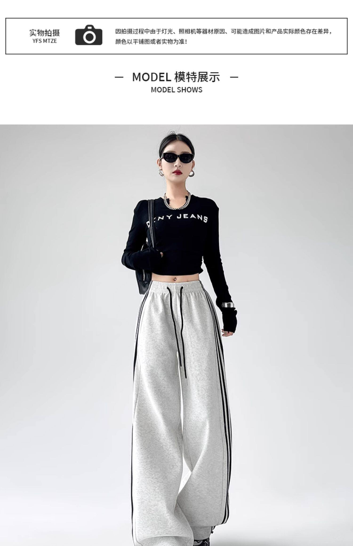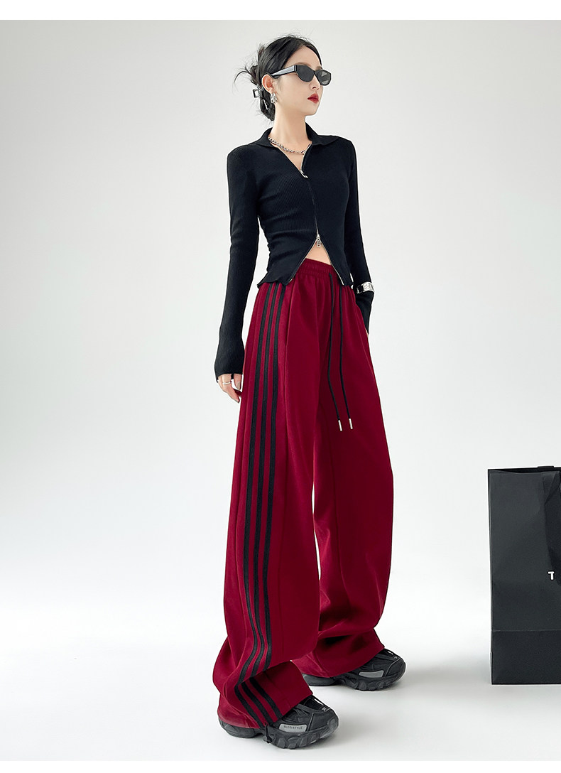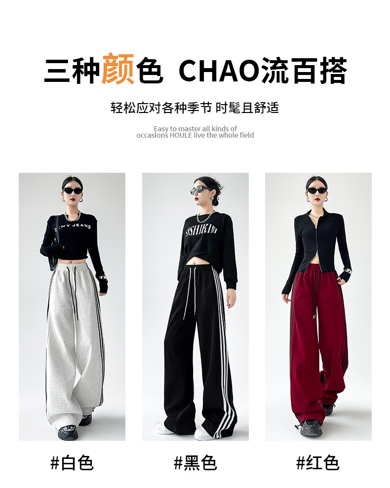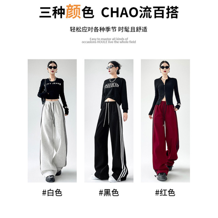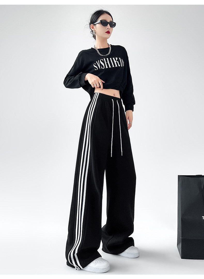 高個子超長175美式運動褲女春秋款高腰垂感寬鬆直筒慵懶條紋衛褲