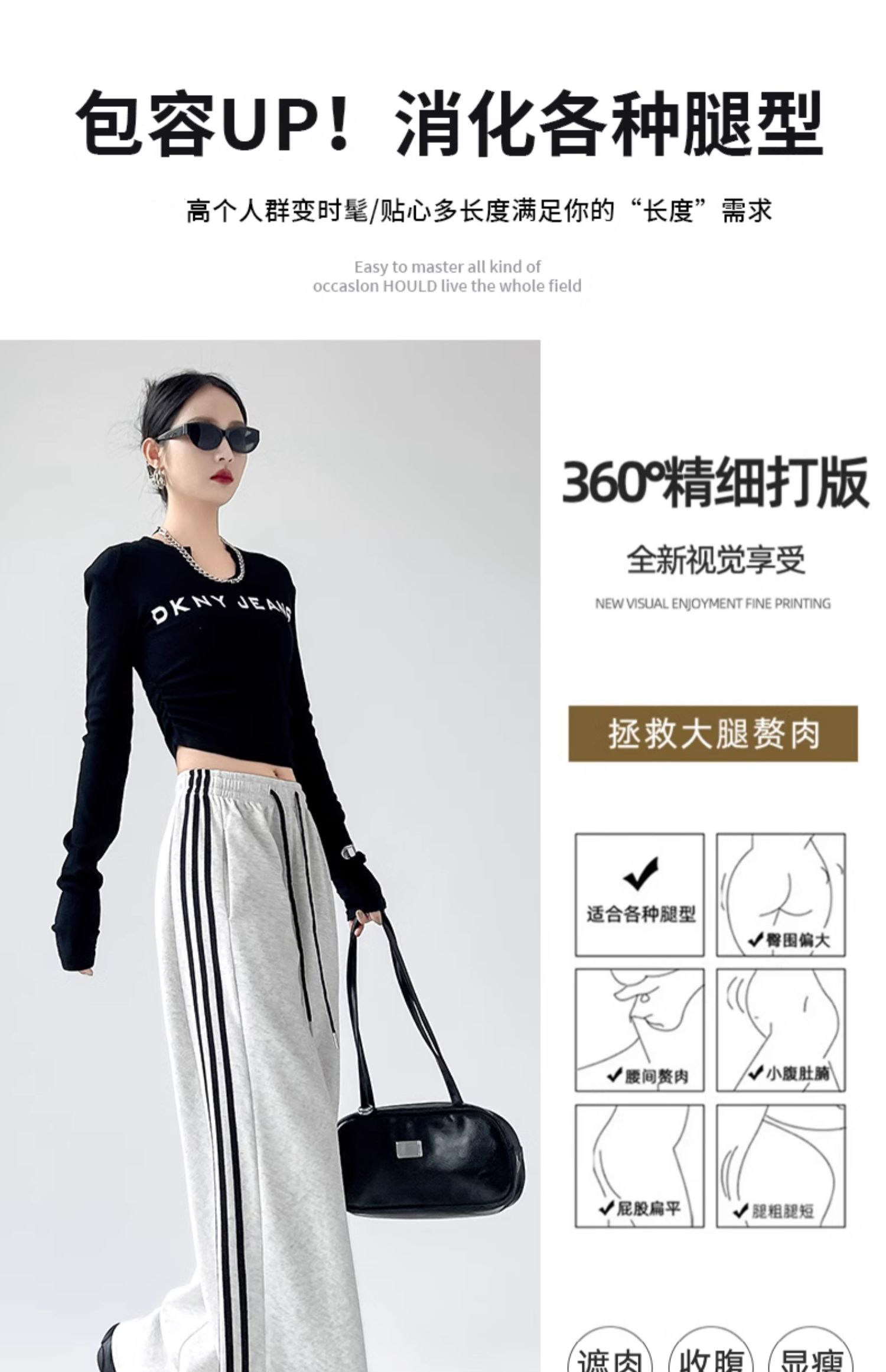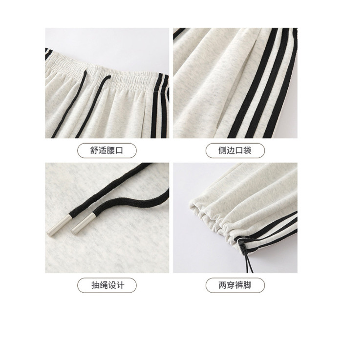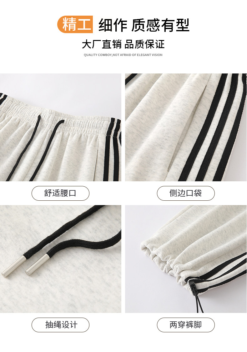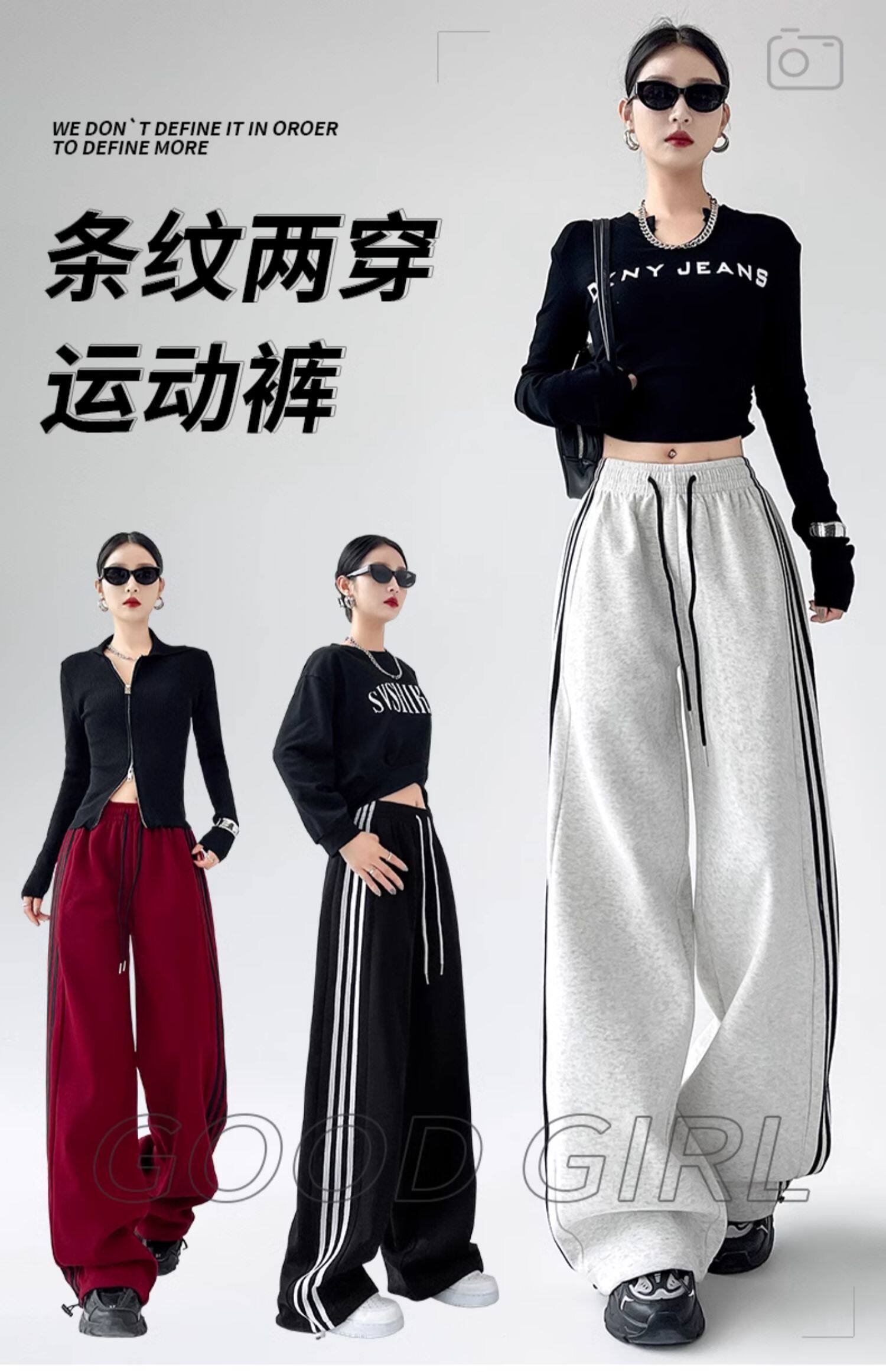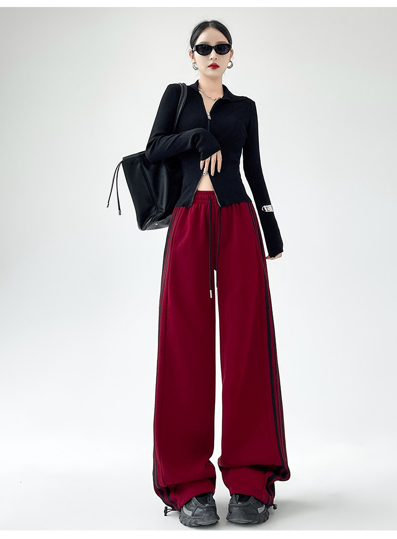 高個子超長175美式運動褲女春秋款高腰垂感寬鬆直筒慵懶條紋衛褲