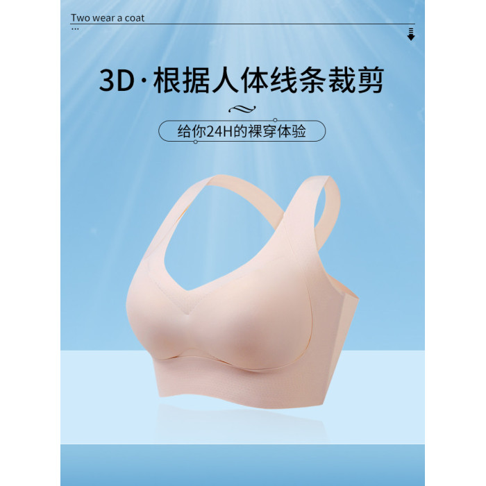 冰絲無痕後背交叉帶內衣女夏季文胸運動無鋼圈美背寬肩帶聚攏薄款