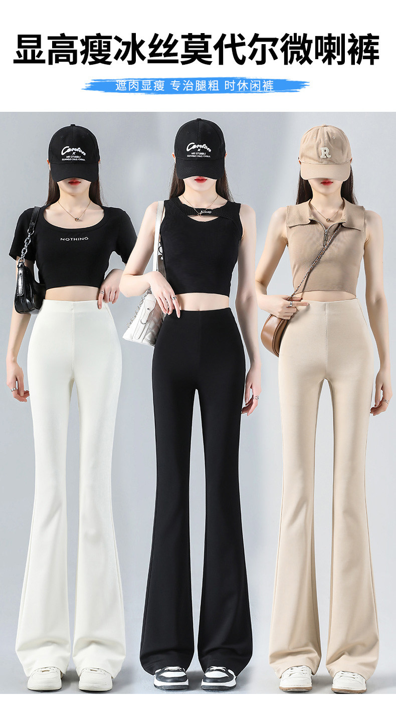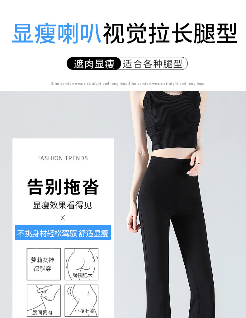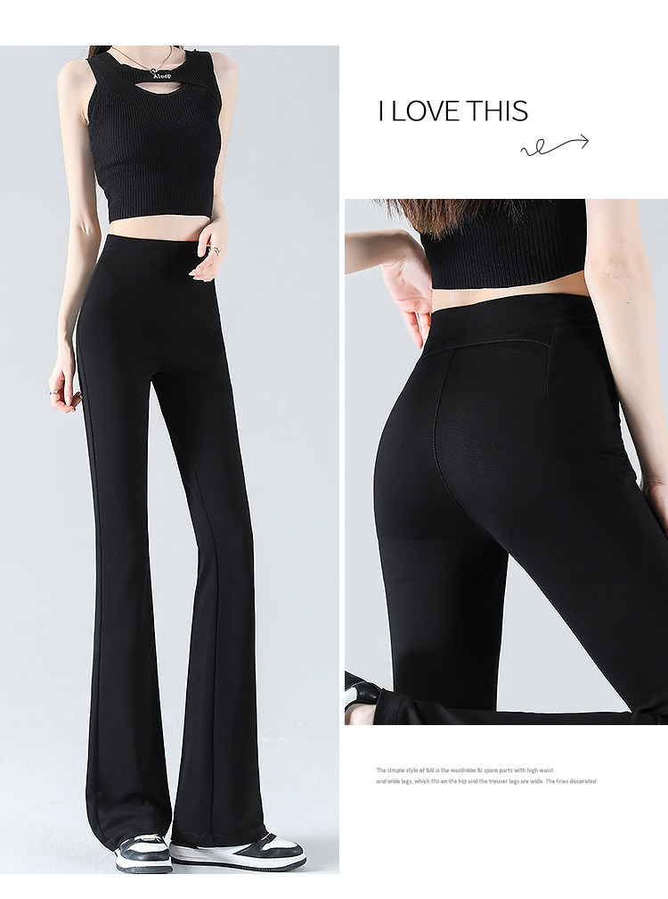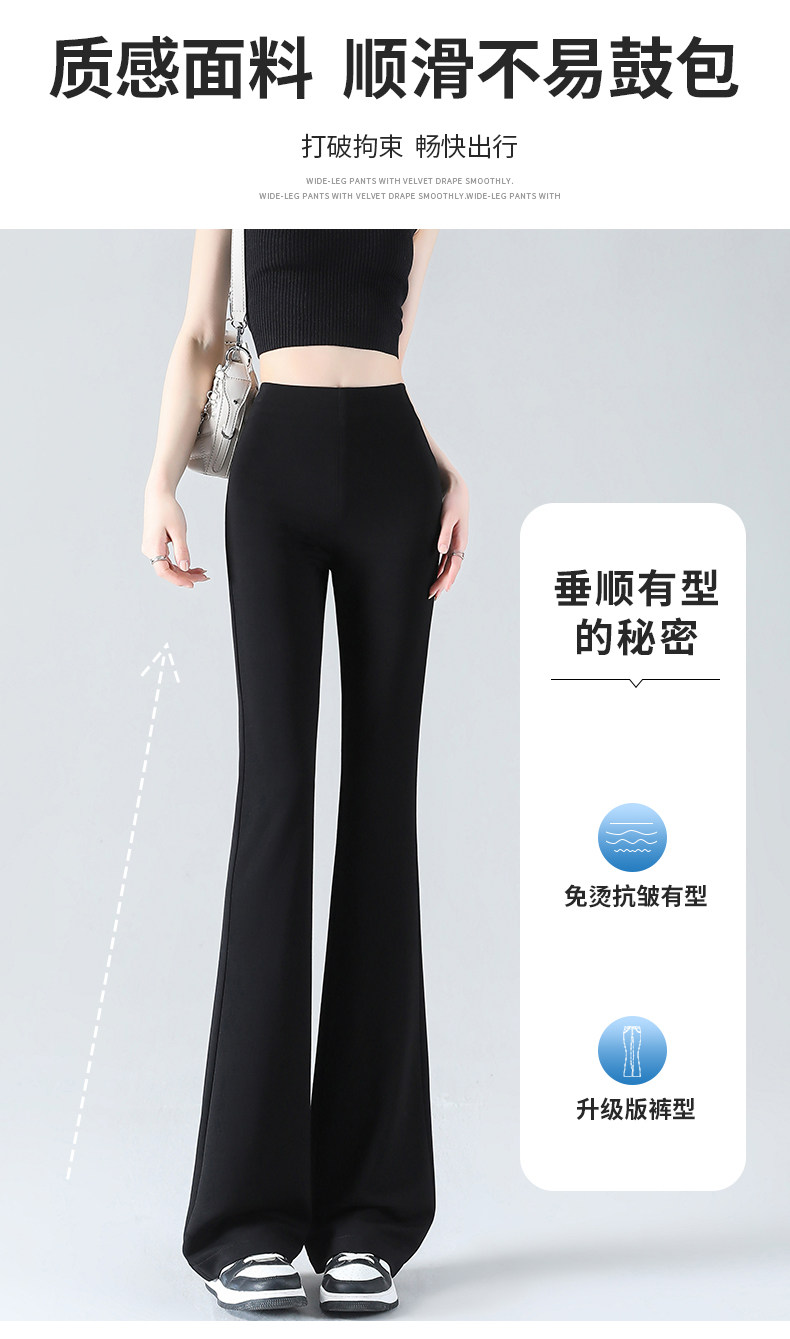 黑色微喇褲女夏季薄款2026新款冰絲小個子高腰美式修身喇叭長褲子