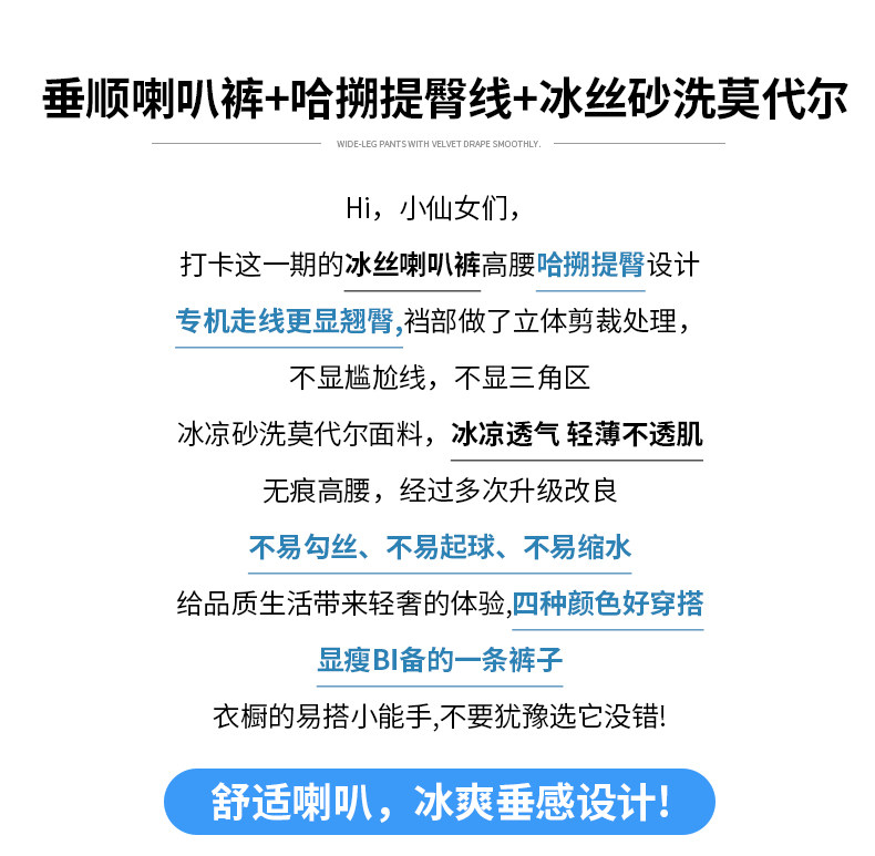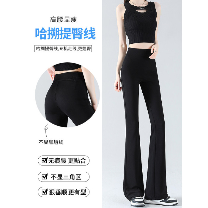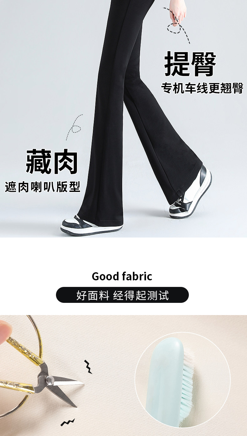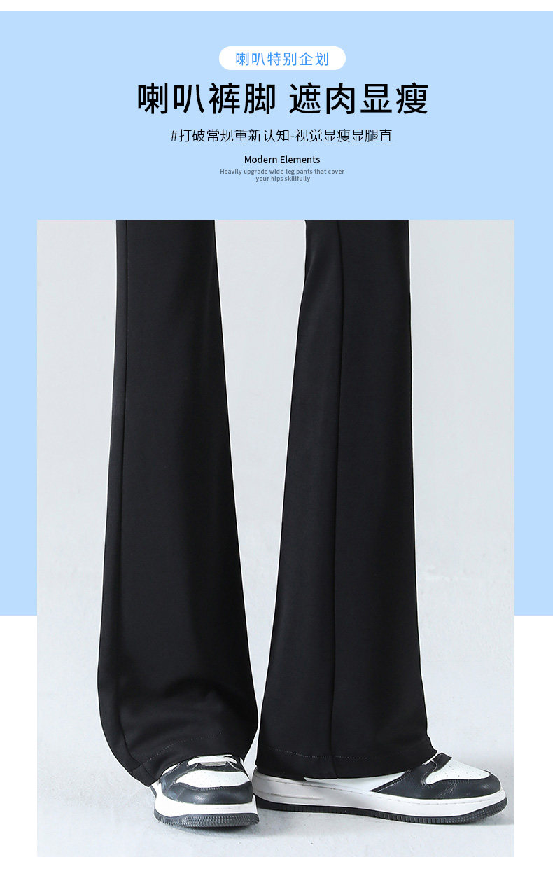 黑色微喇褲女夏季薄款2026新款冰絲小個子高腰美式修身喇叭長褲子