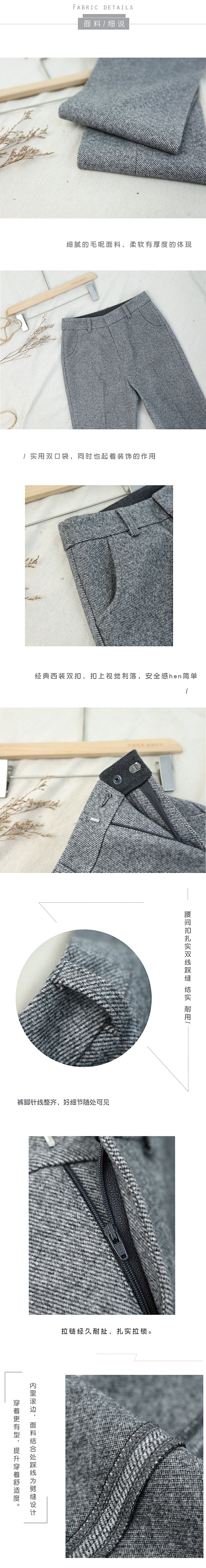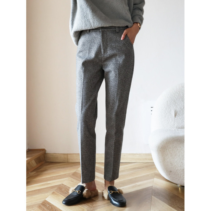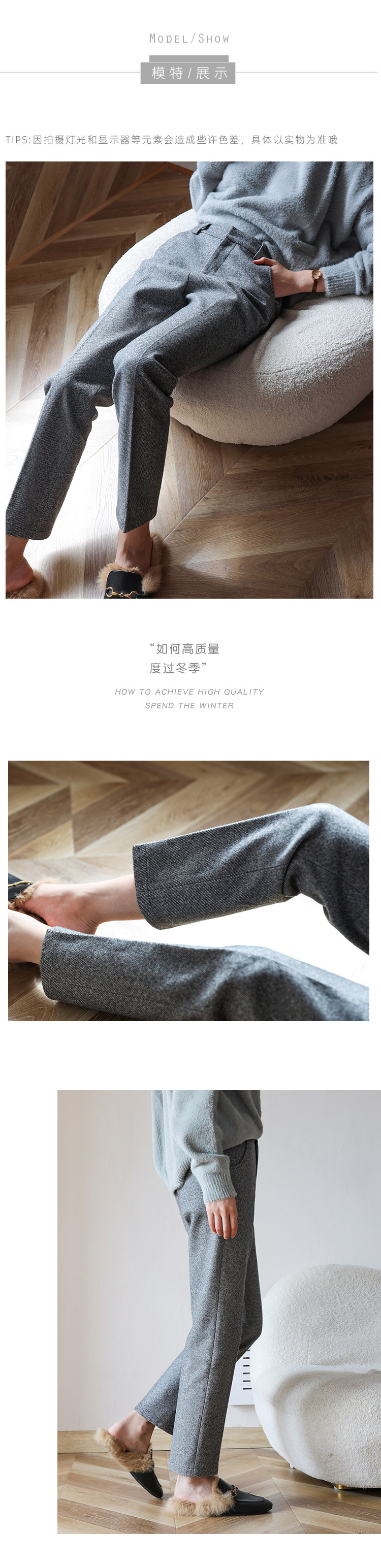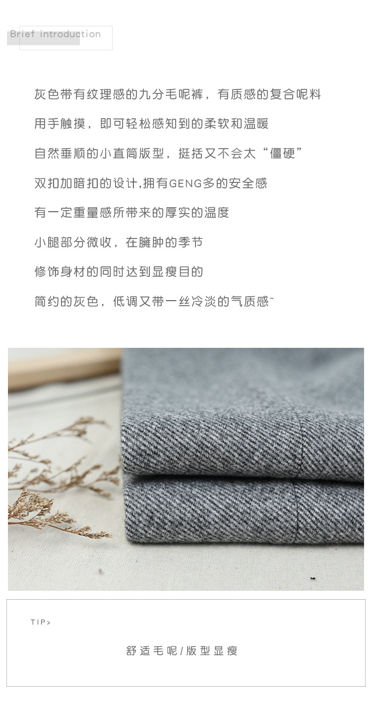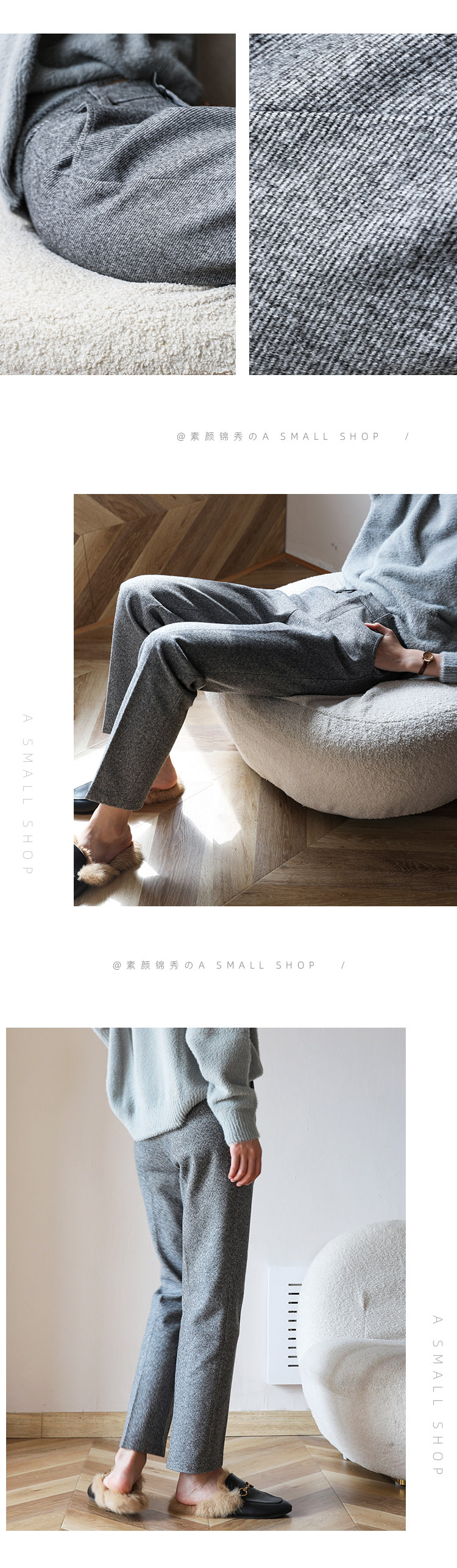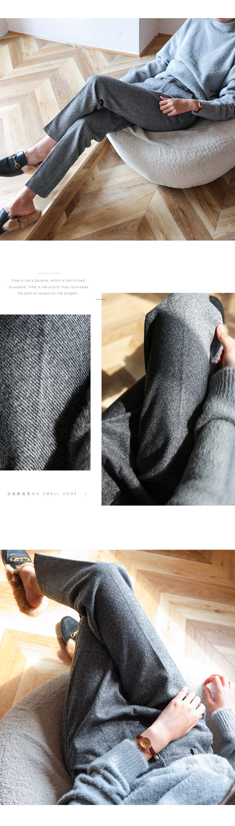質感人字紋秋冬加厚毛呢九分褲百搭顯瘦高級感灰色直筒褲寬鬆休閒