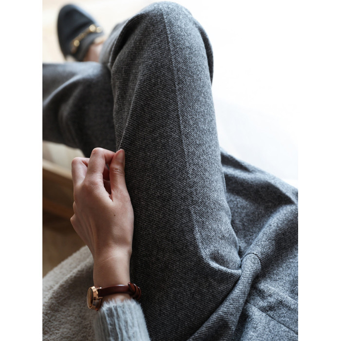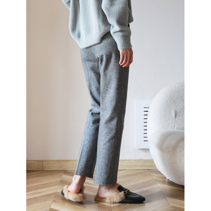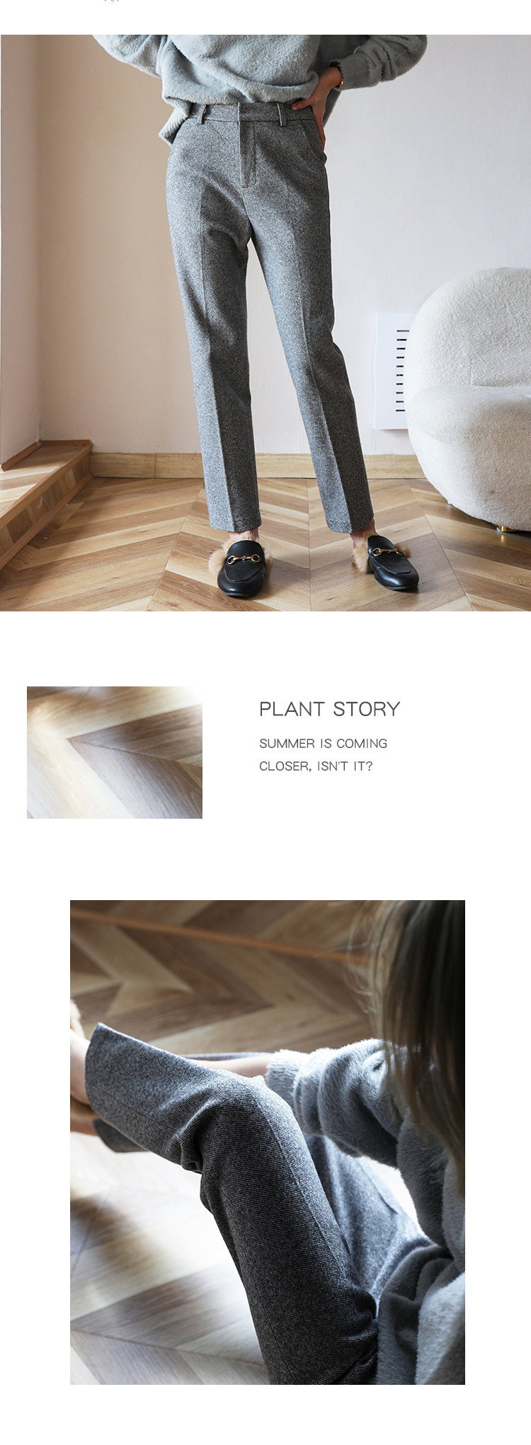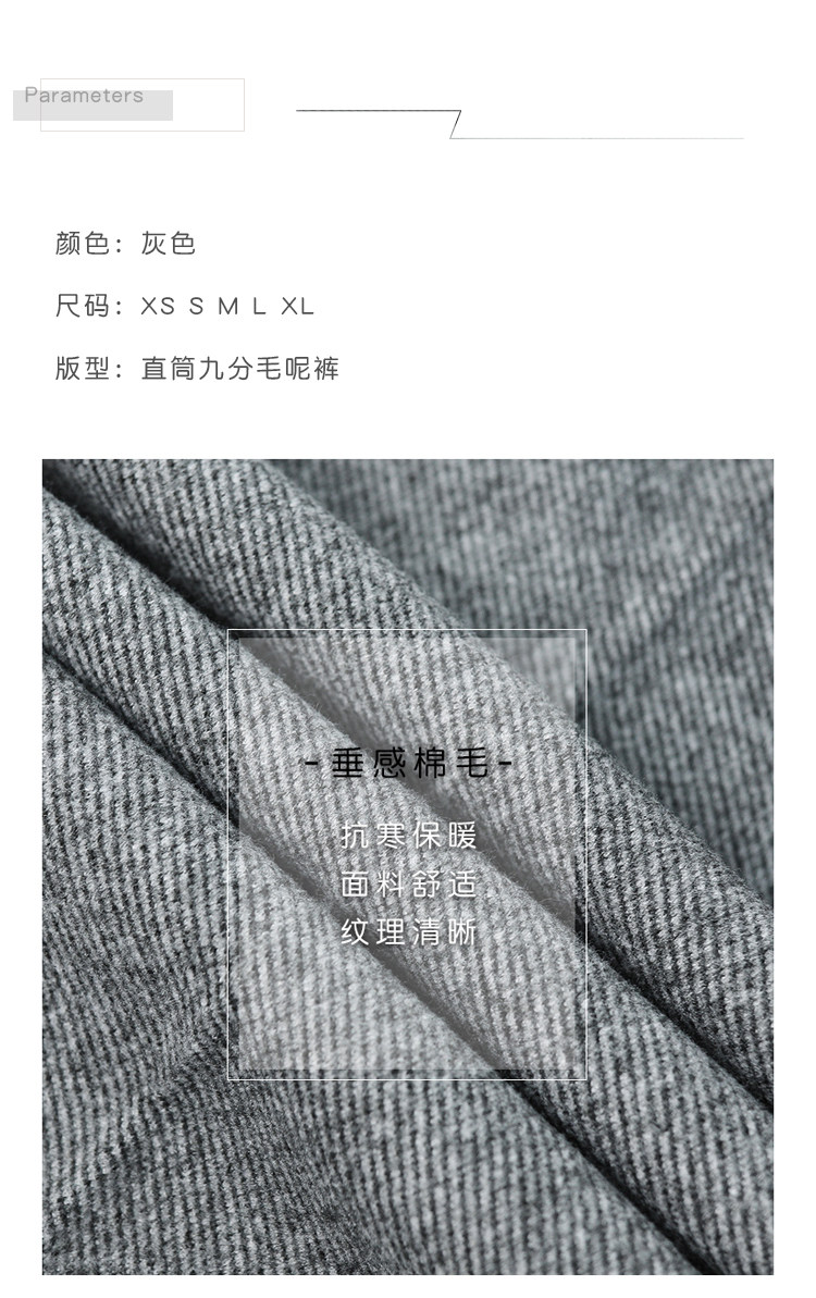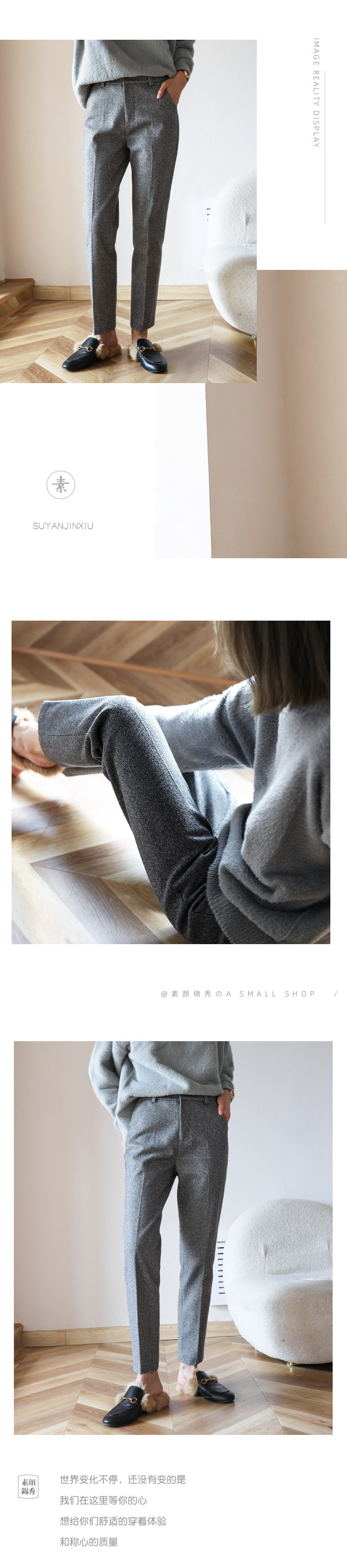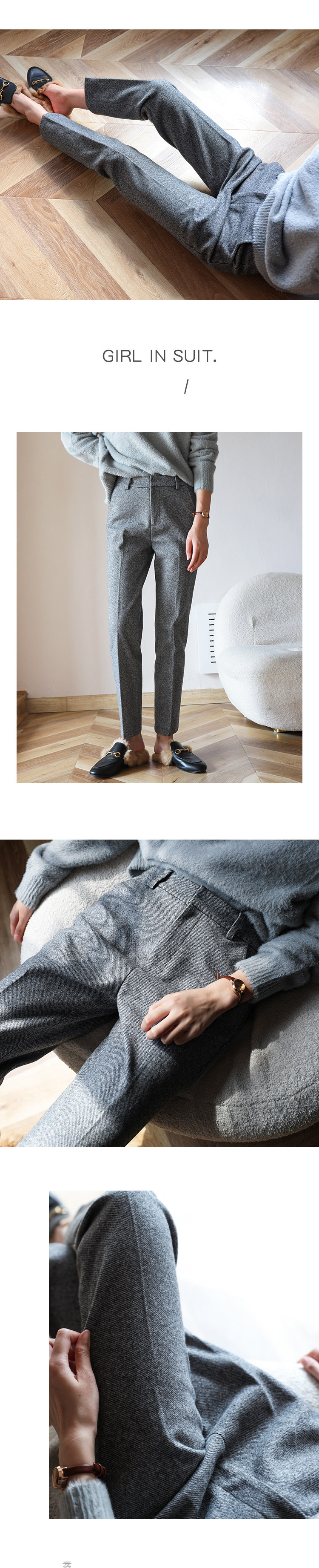 質感人字紋秋冬加厚毛呢九分褲百搭顯瘦高級感灰色直筒褲寬鬆休閒