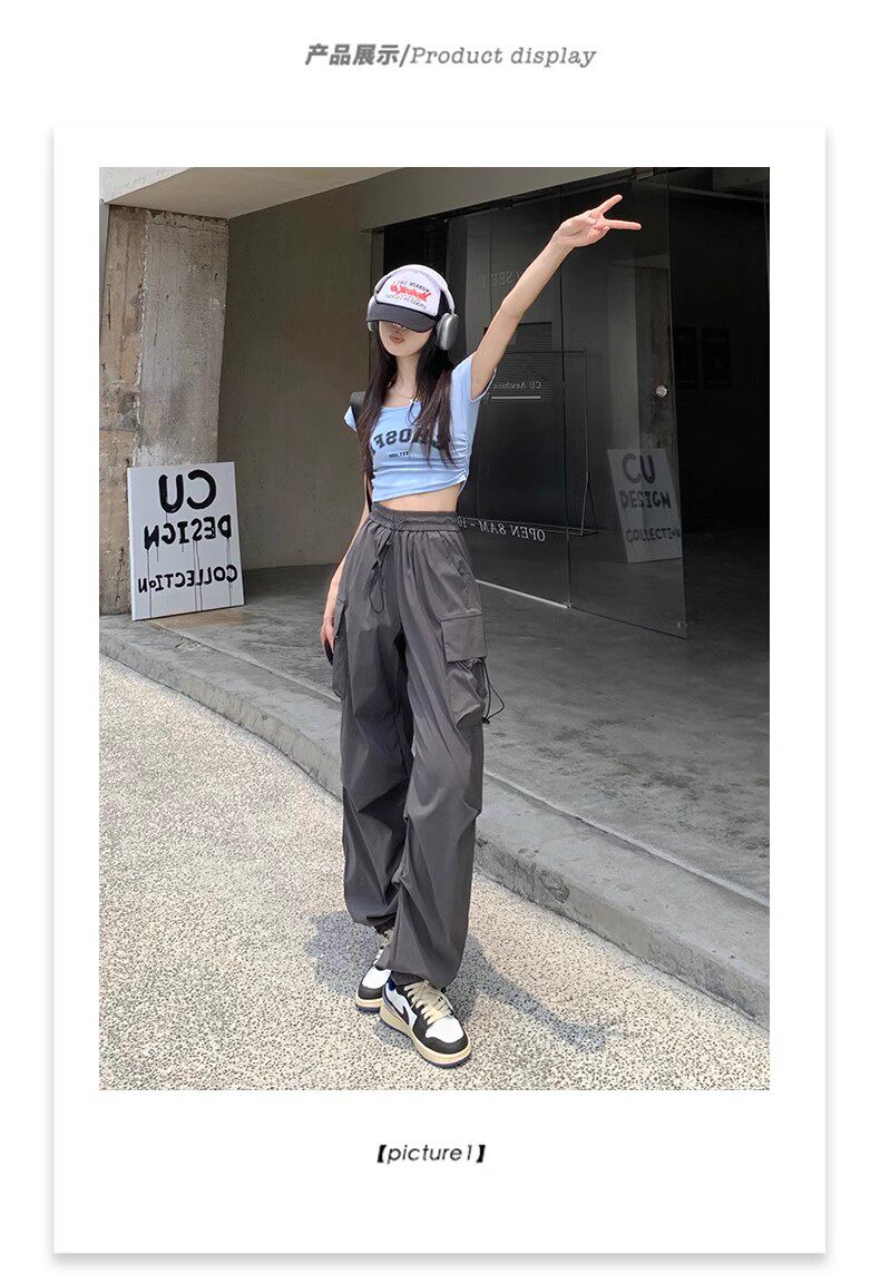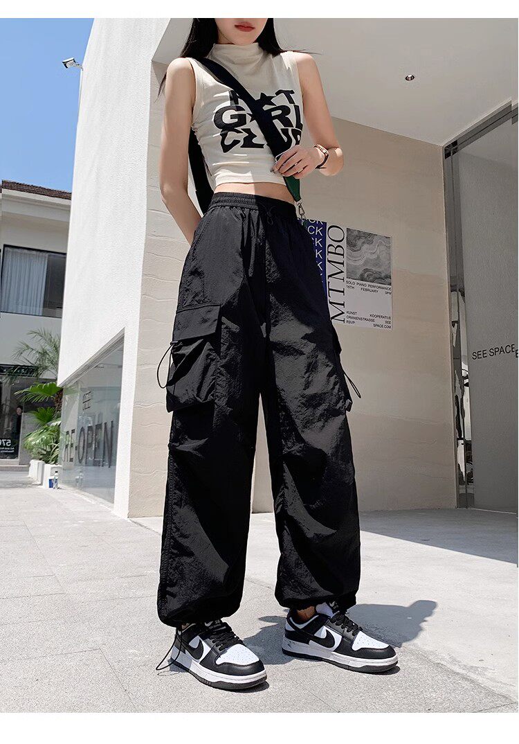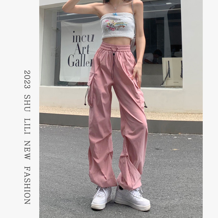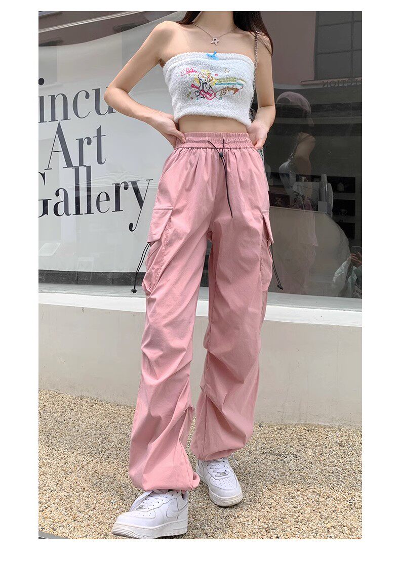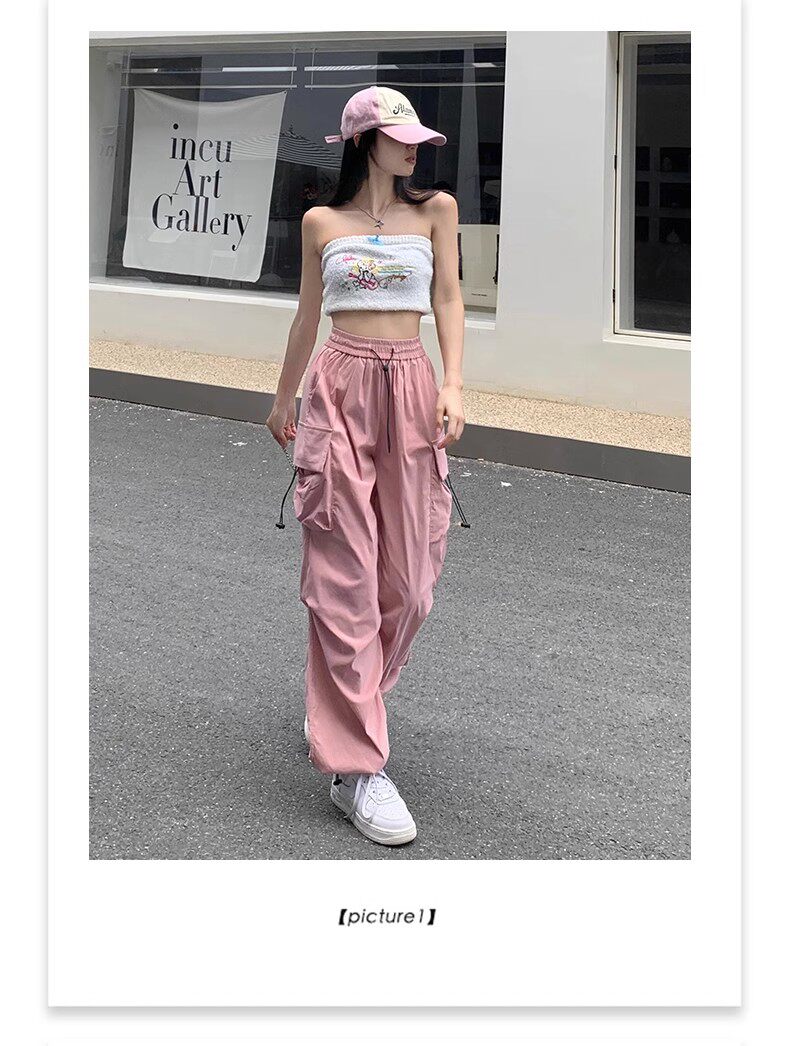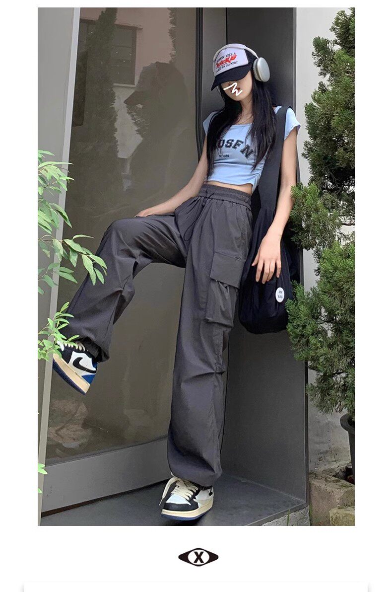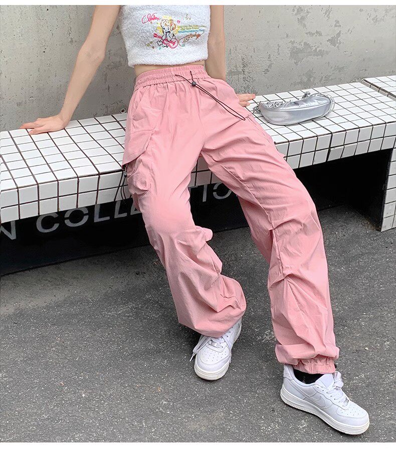 美式工裝褲女爵士舞寬鬆濶腿運動褲高腰顯瘦休閒百搭直筒束腳長褲