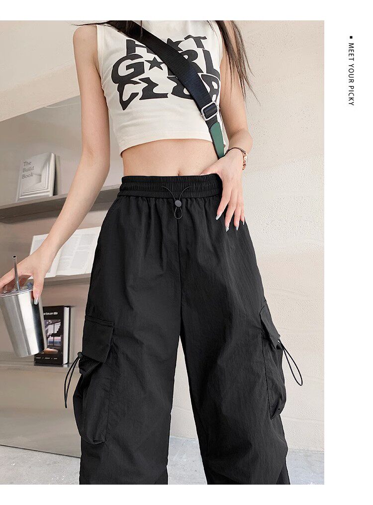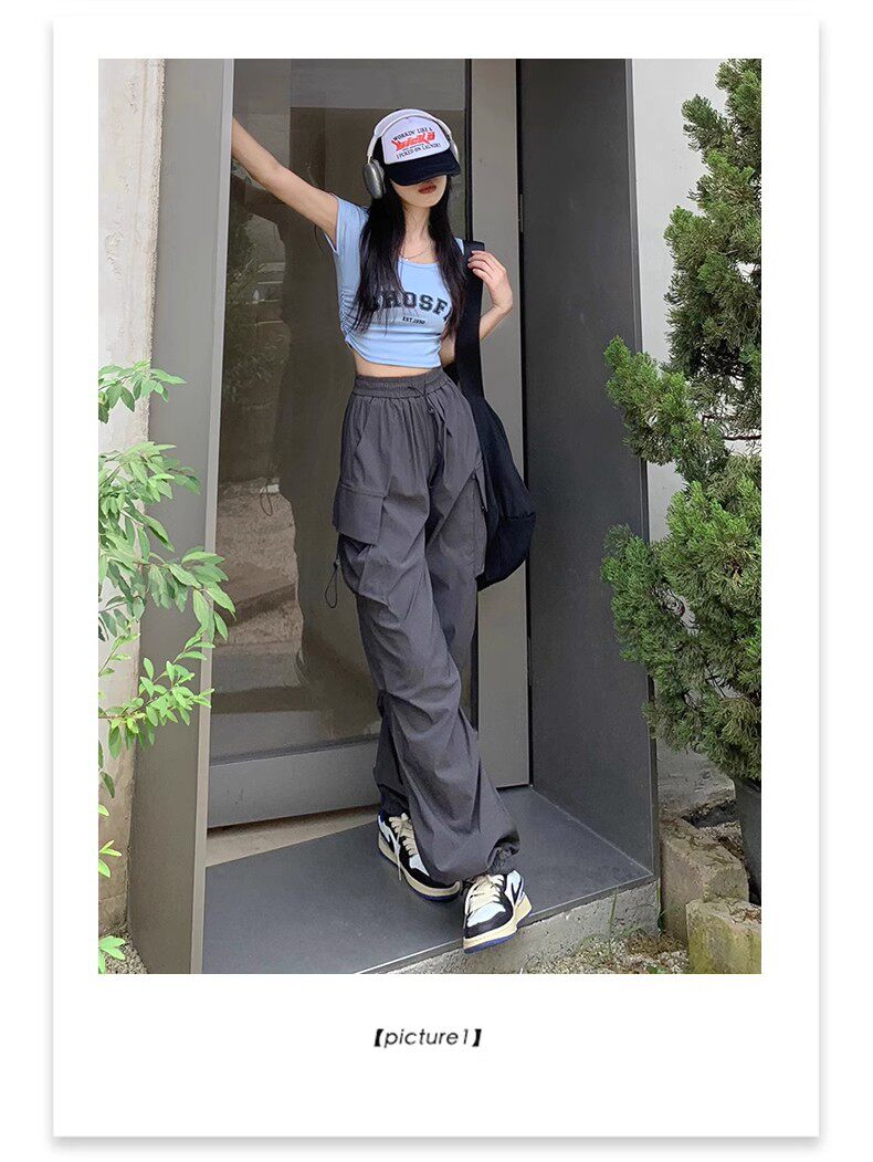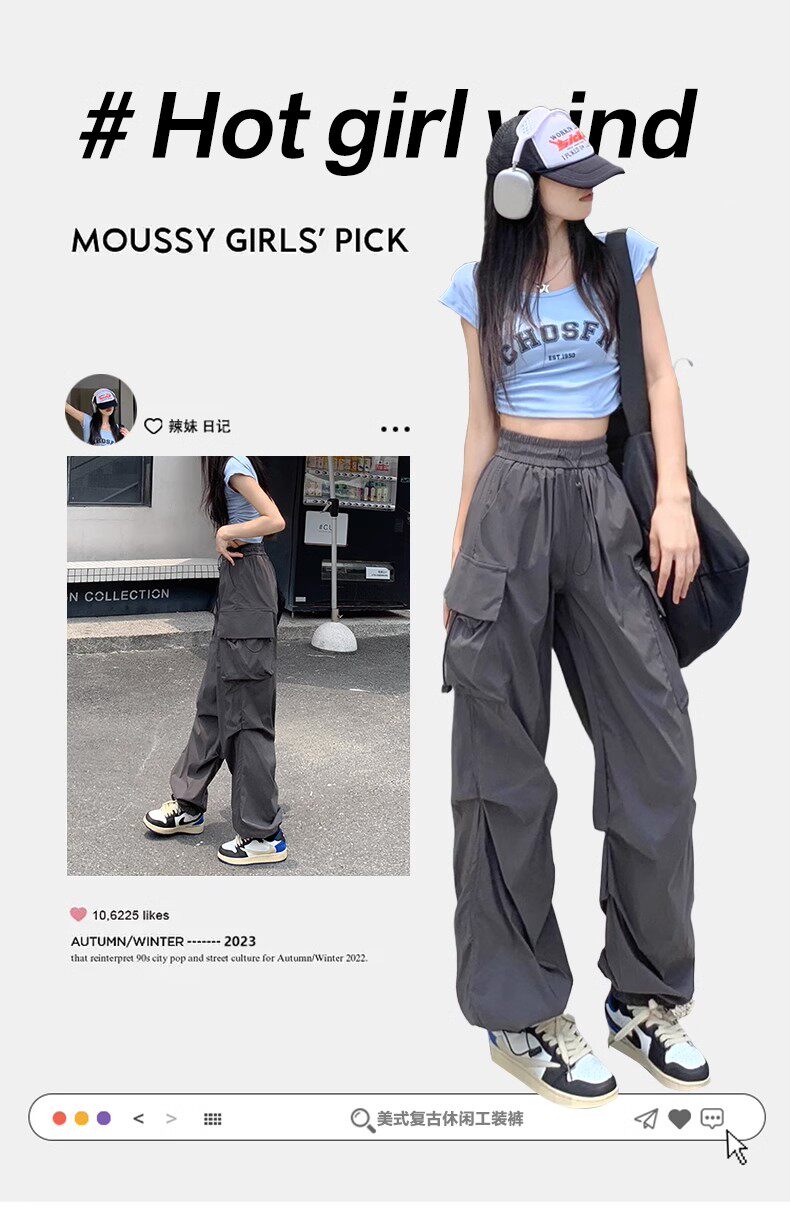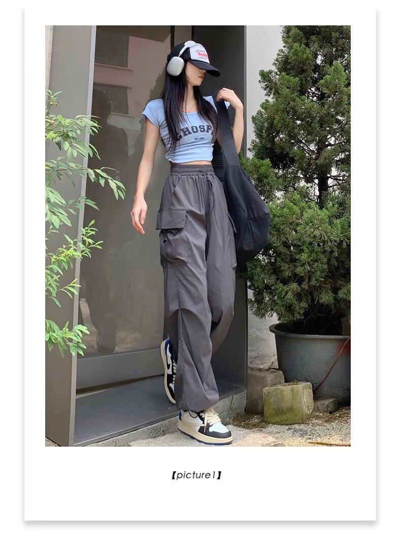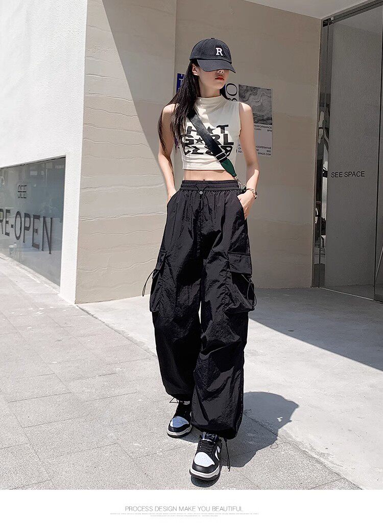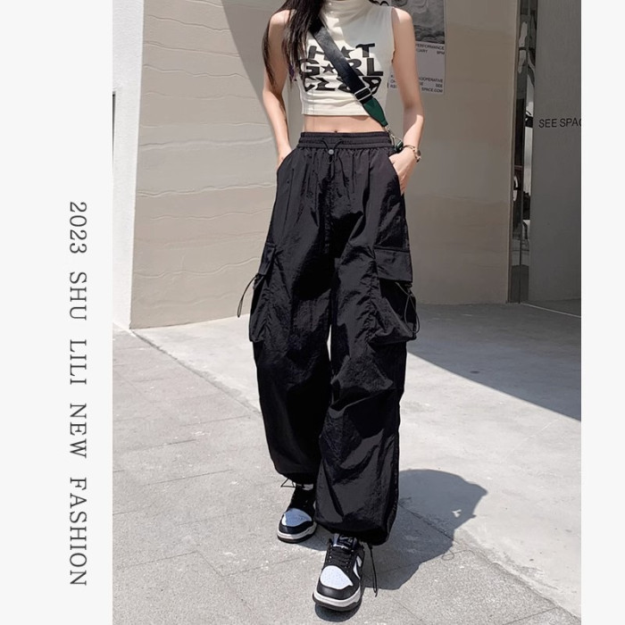 美式工裝褲女爵士舞寬鬆濶腿運動褲高腰顯瘦休閒百搭直筒束腳長褲