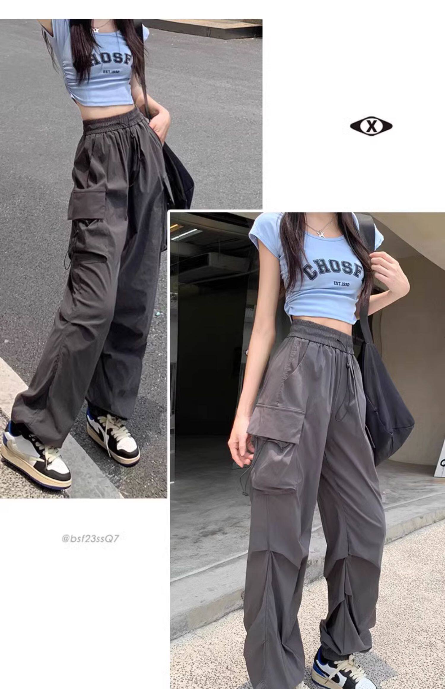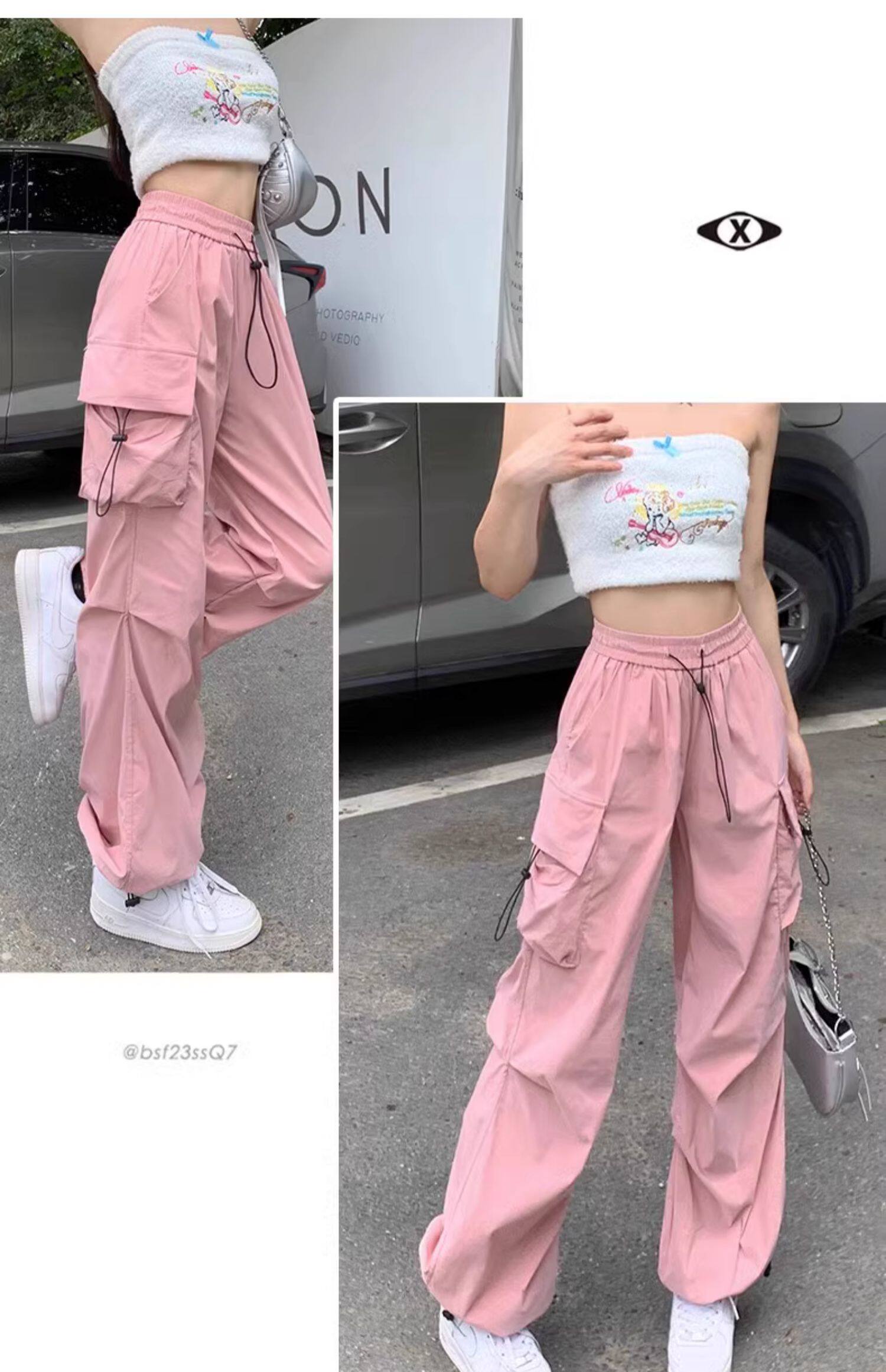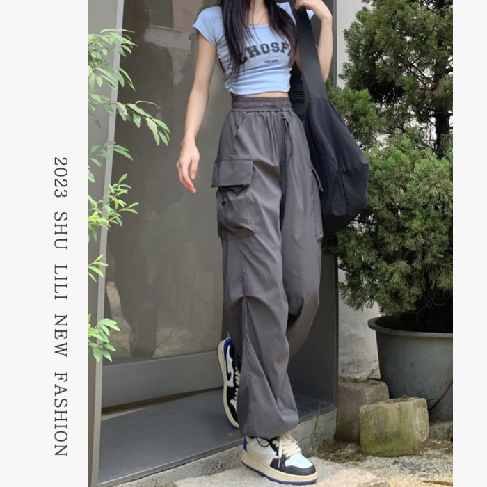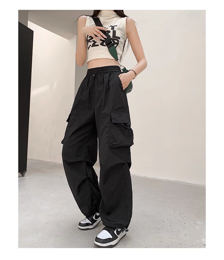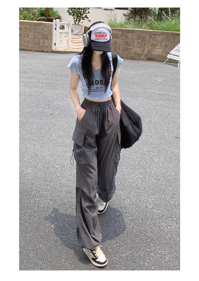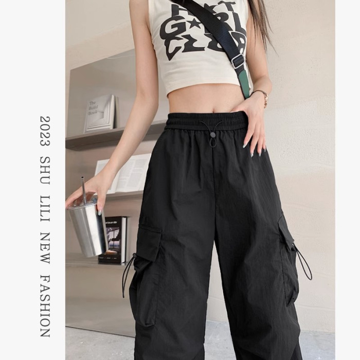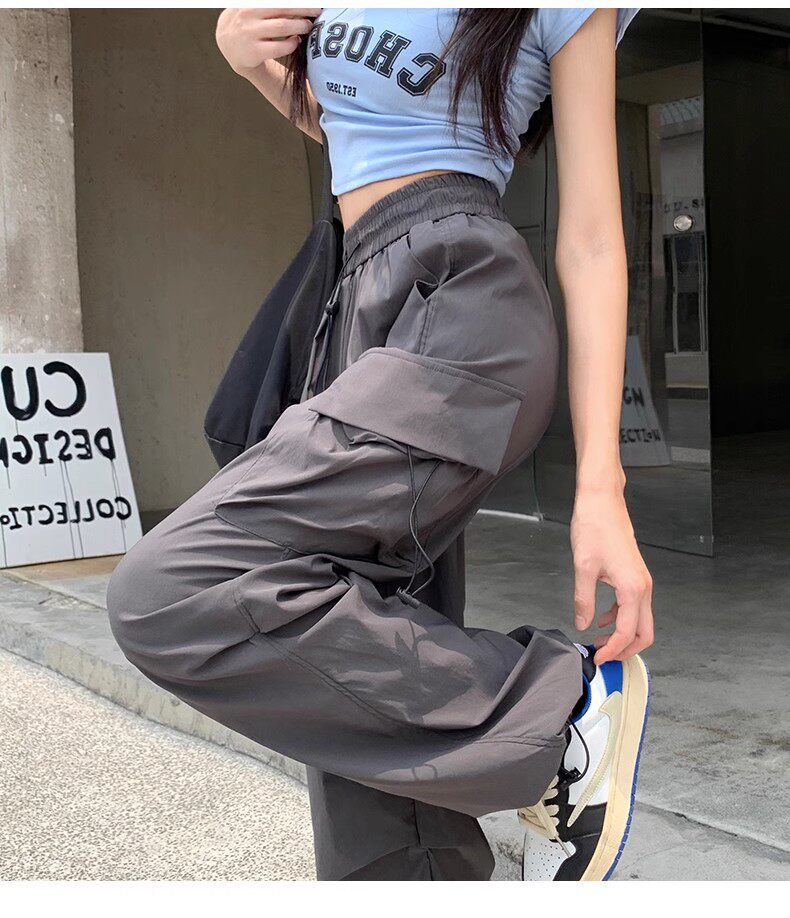 美式工裝褲女爵士舞寬鬆濶腿運動褲高腰顯瘦休閒百搭直筒束腳長褲
