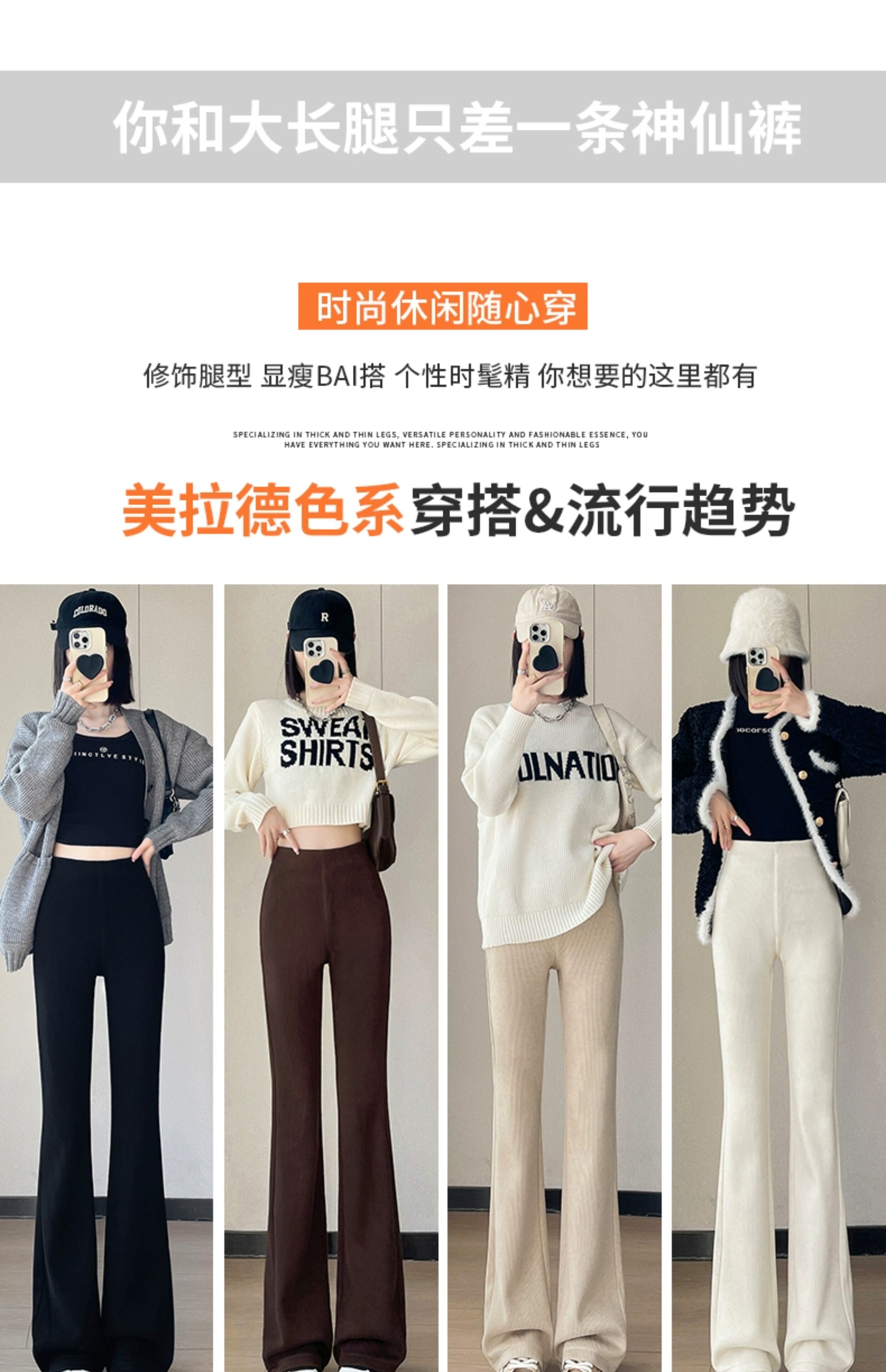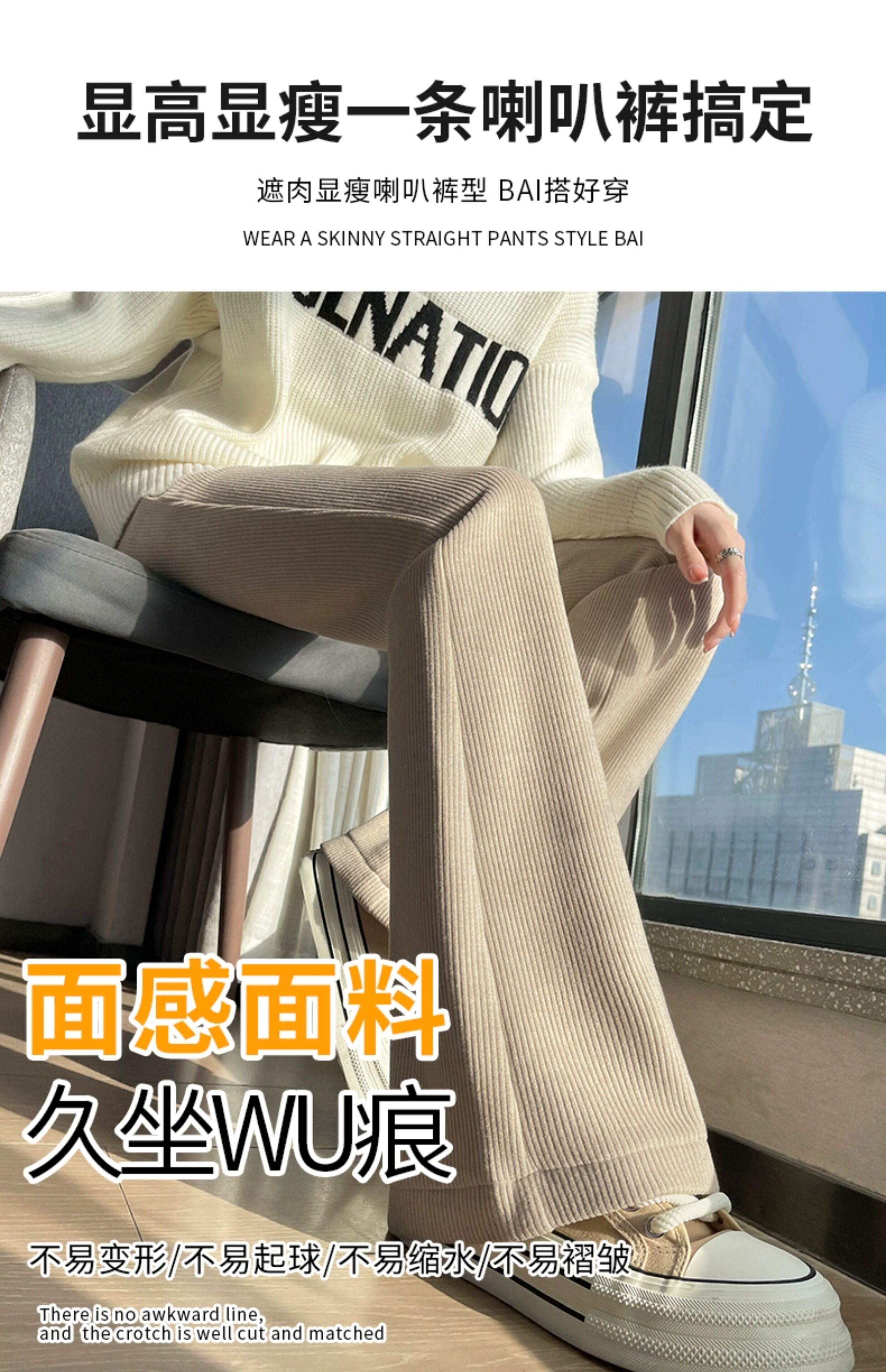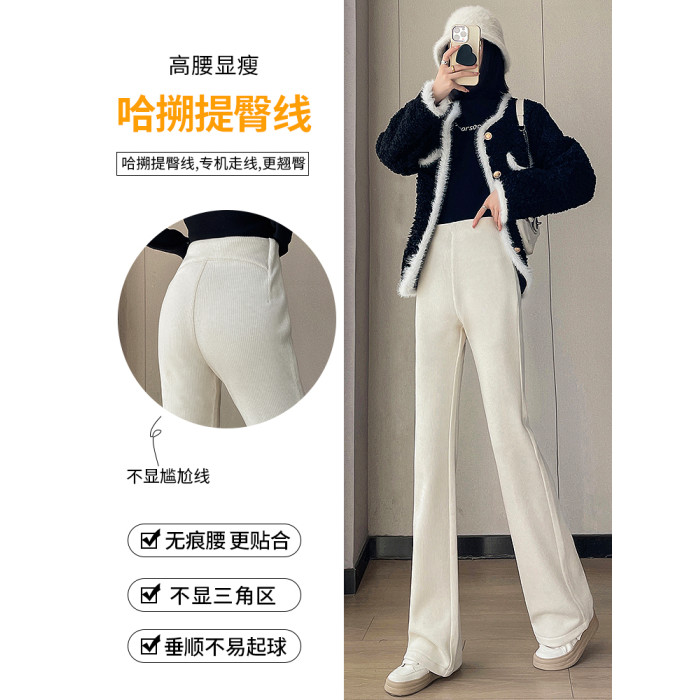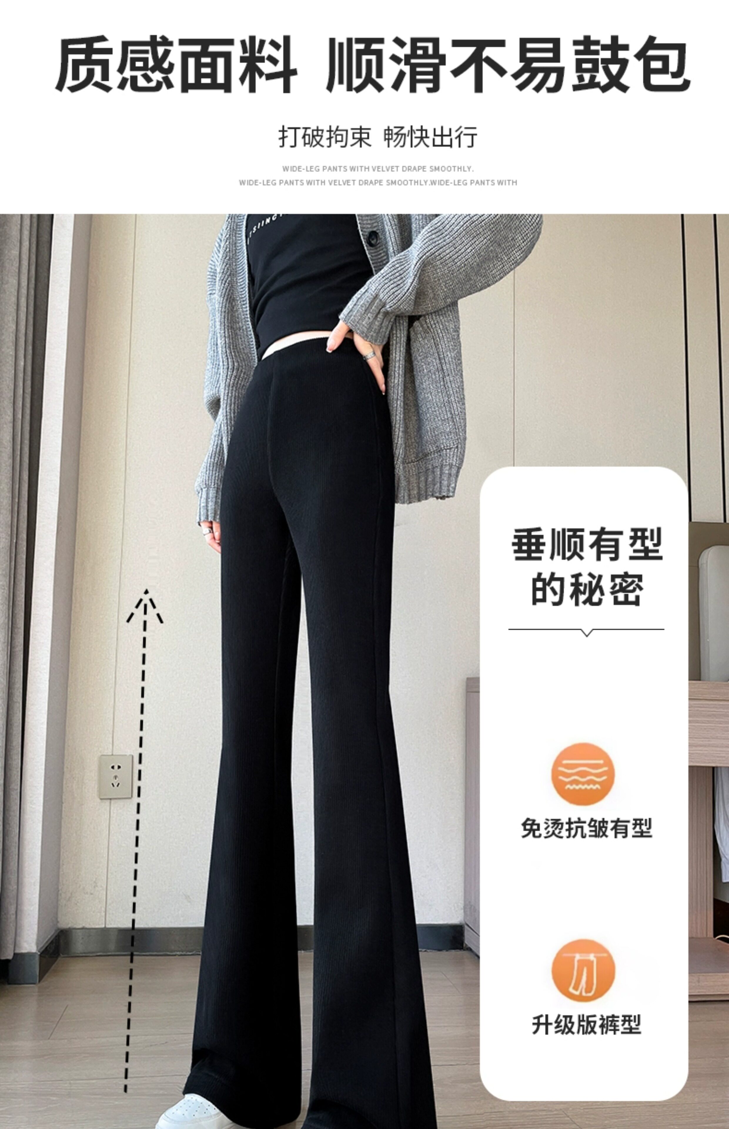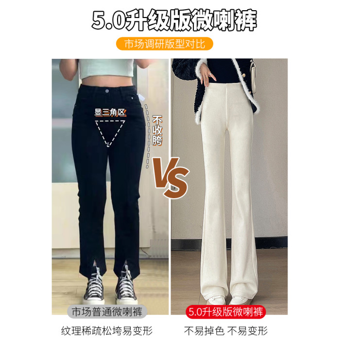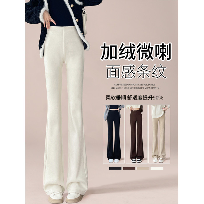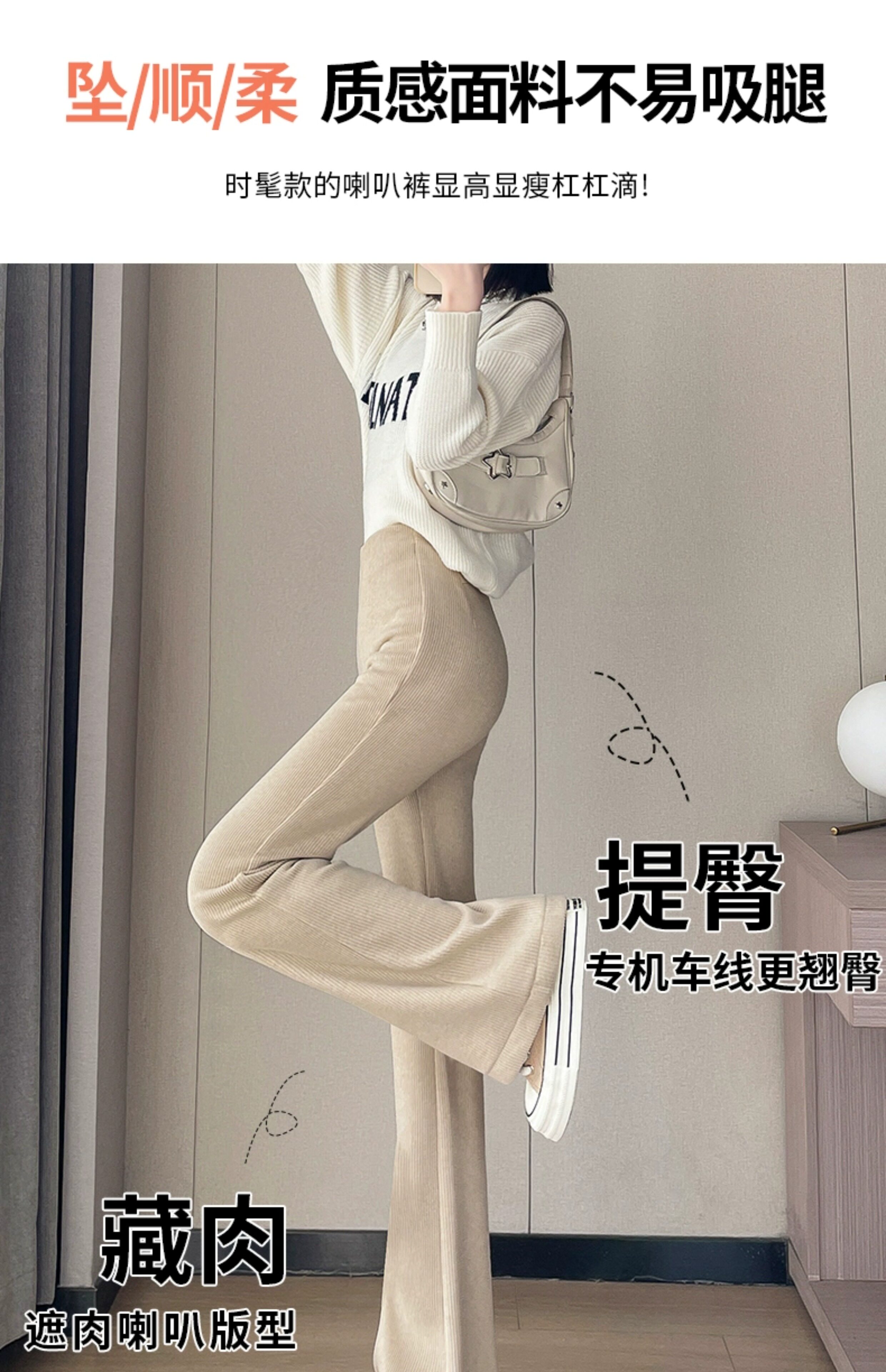 米白色喇叭褲高腰顯瘦女2026新款秋冬季加絨修身美式微喇休閒褲子