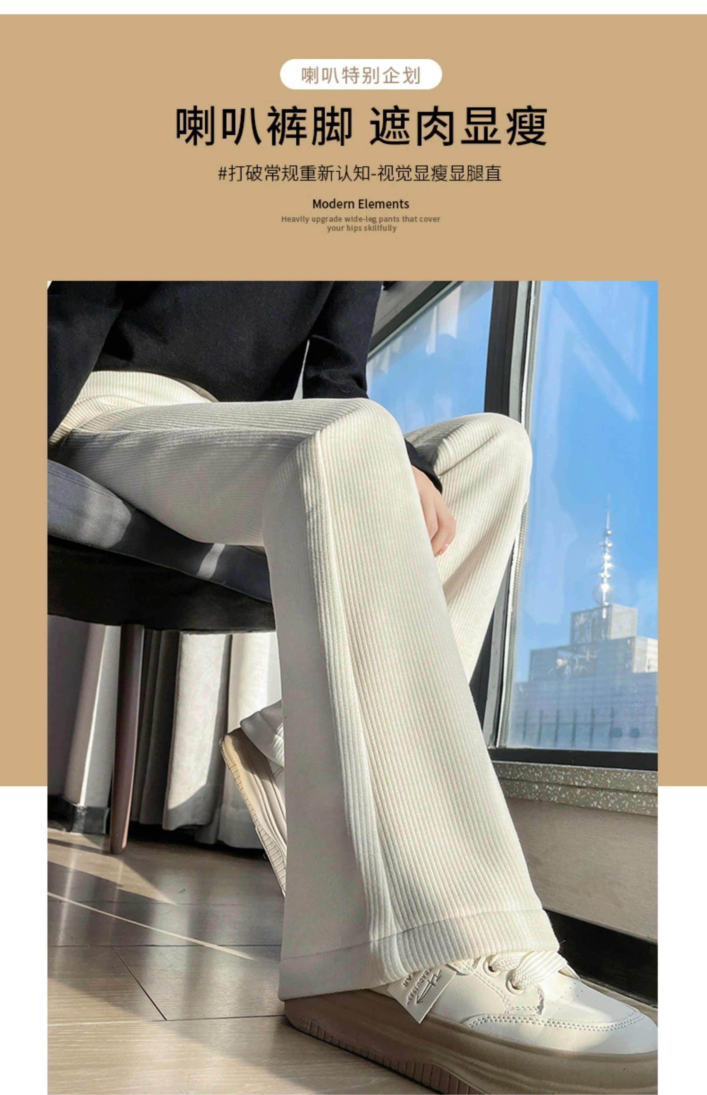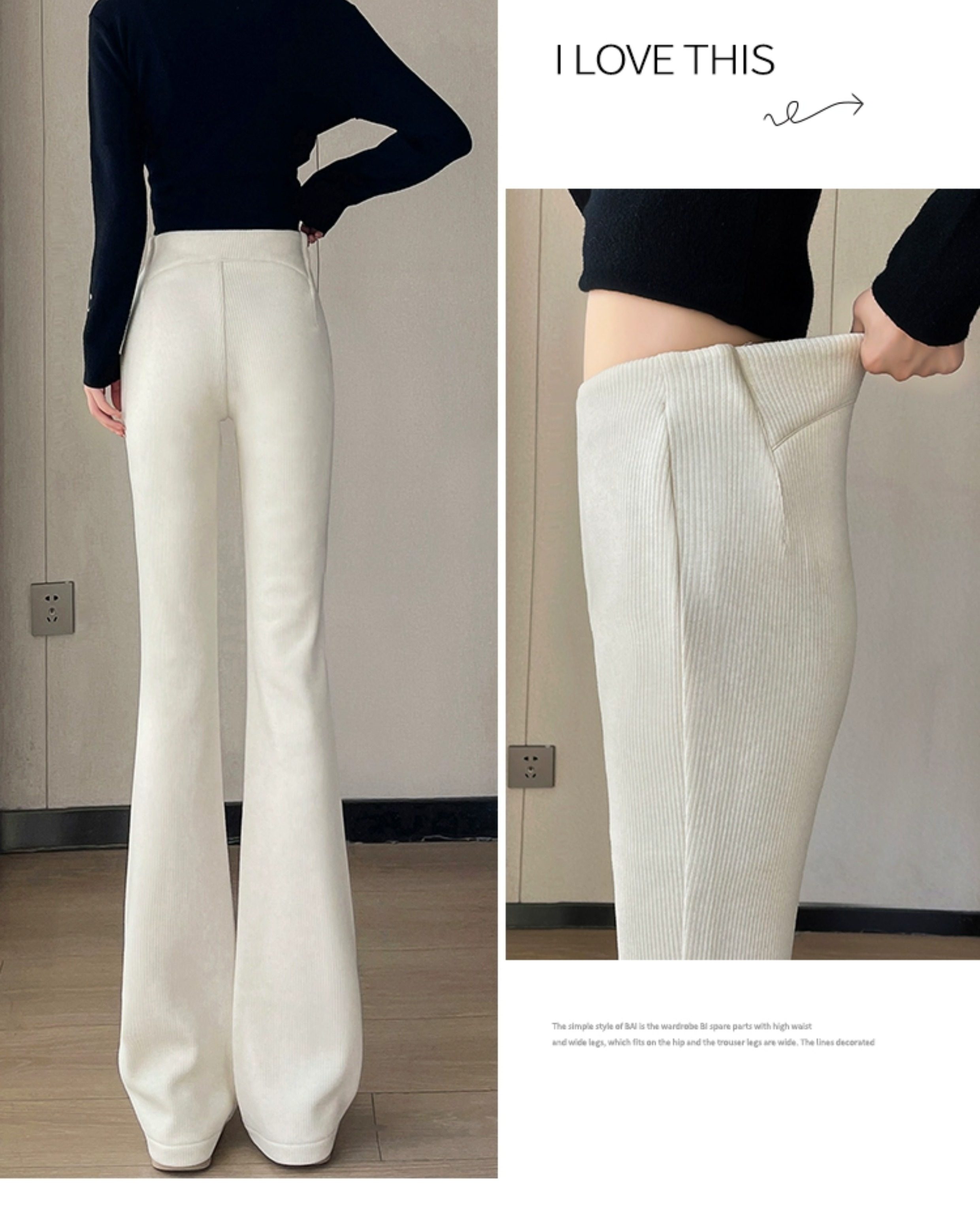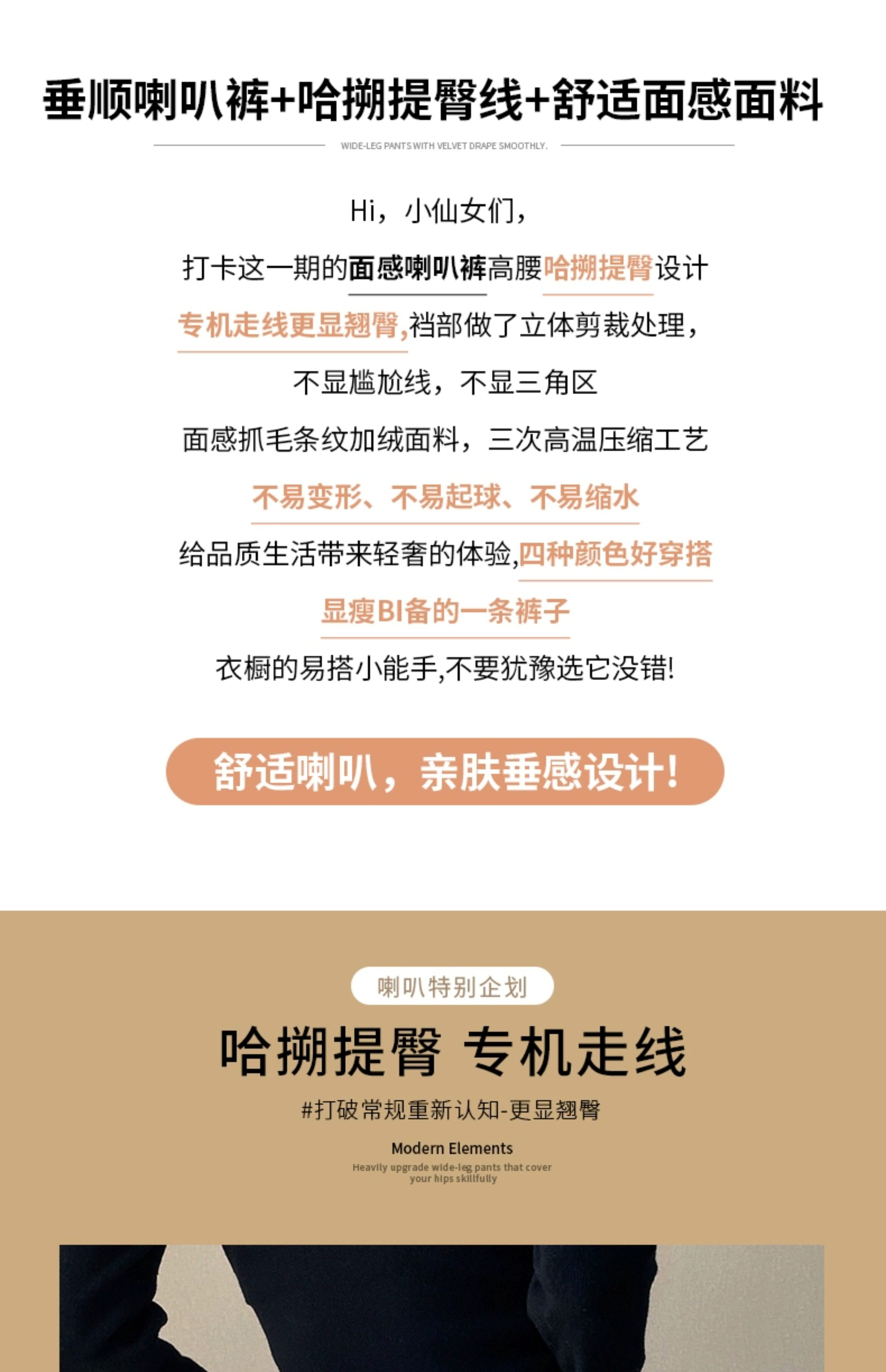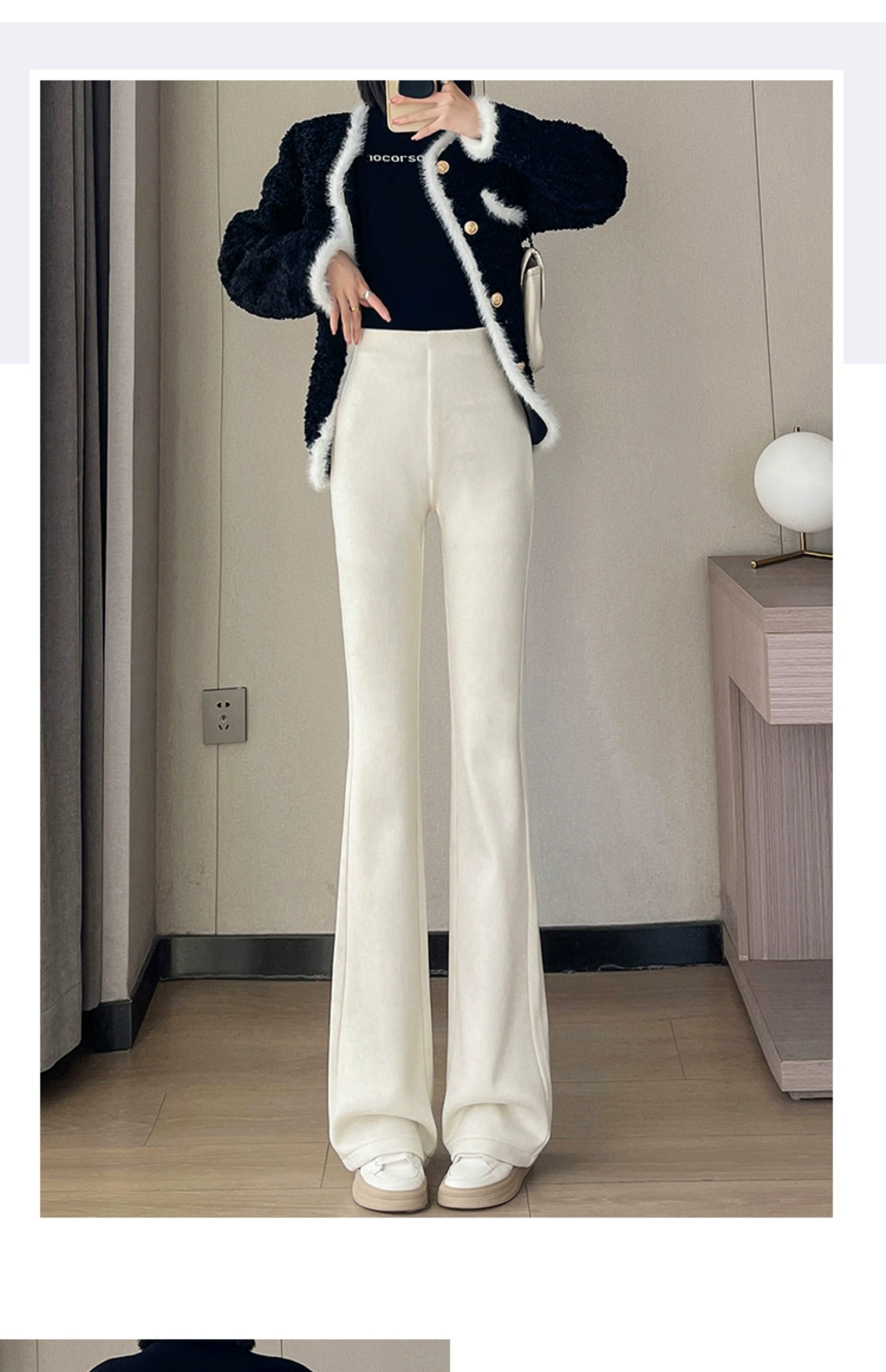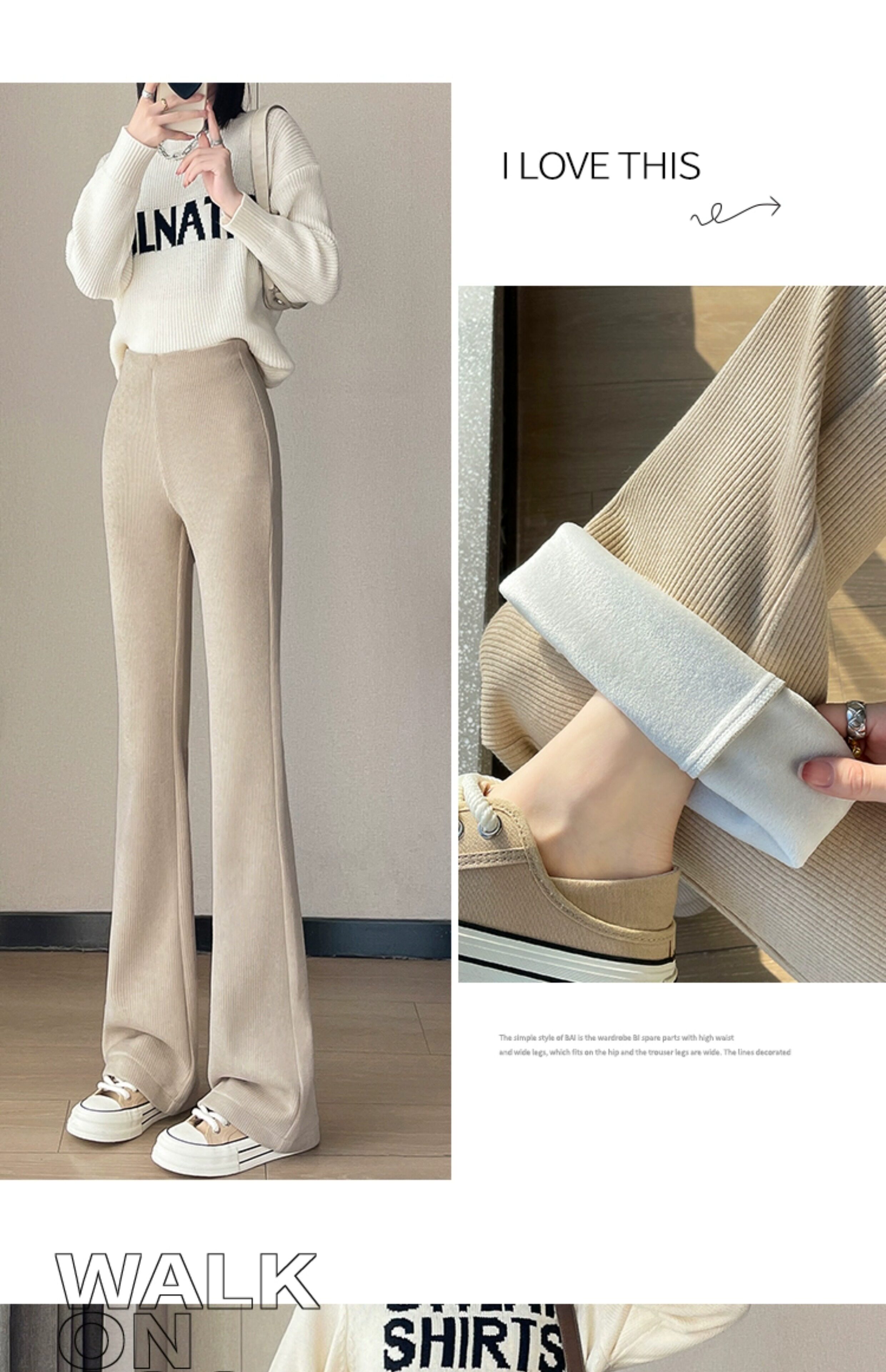 米白色喇叭褲高腰顯瘦女2026新款秋冬季加絨修身美式微喇休閒褲子