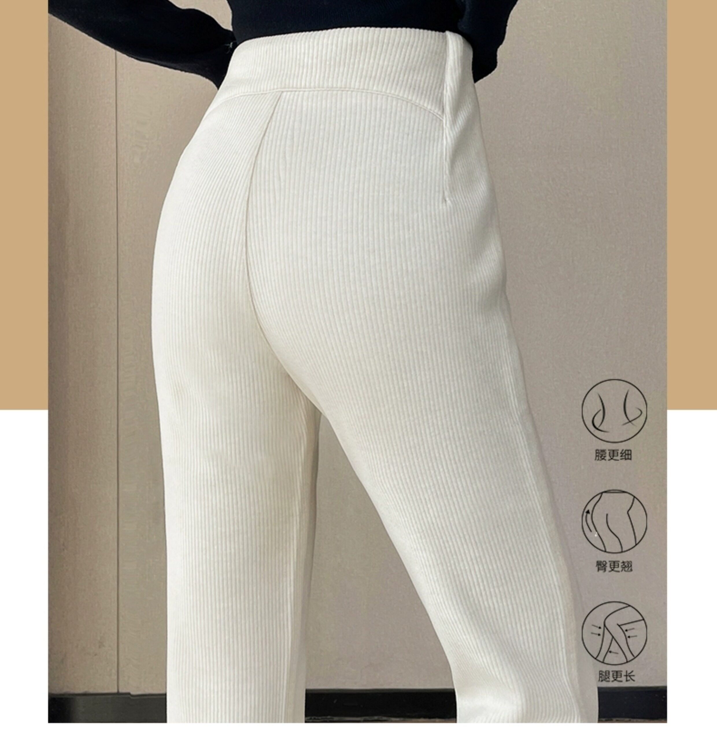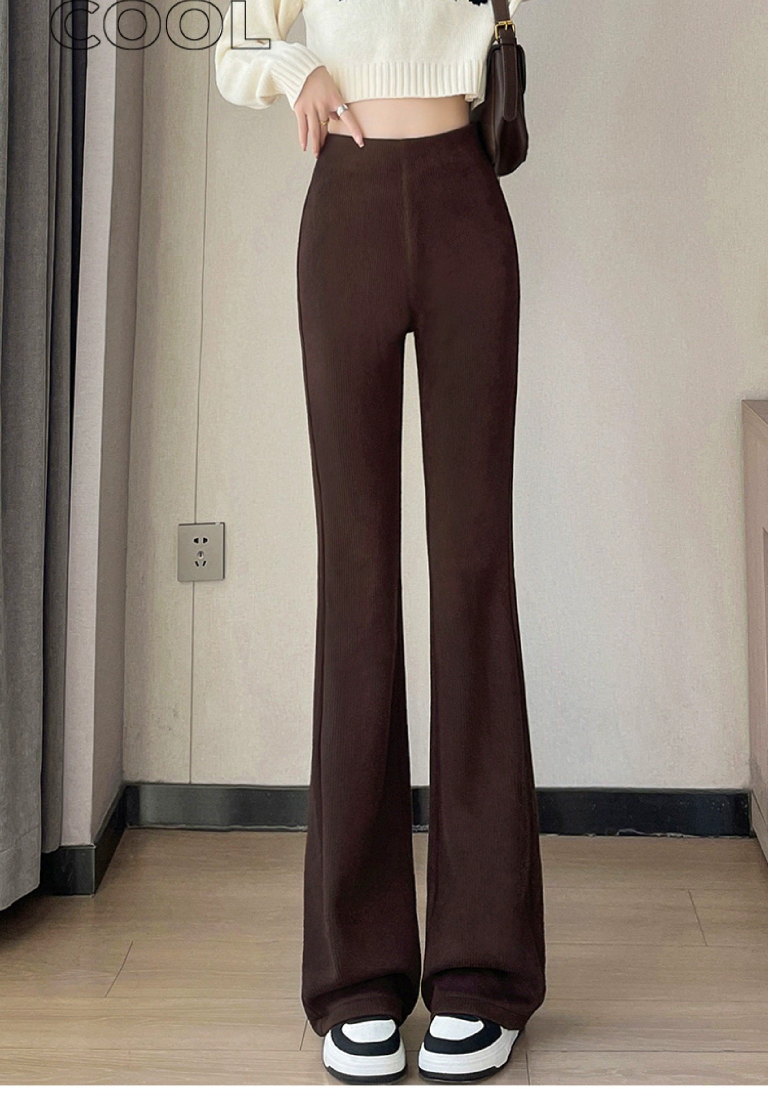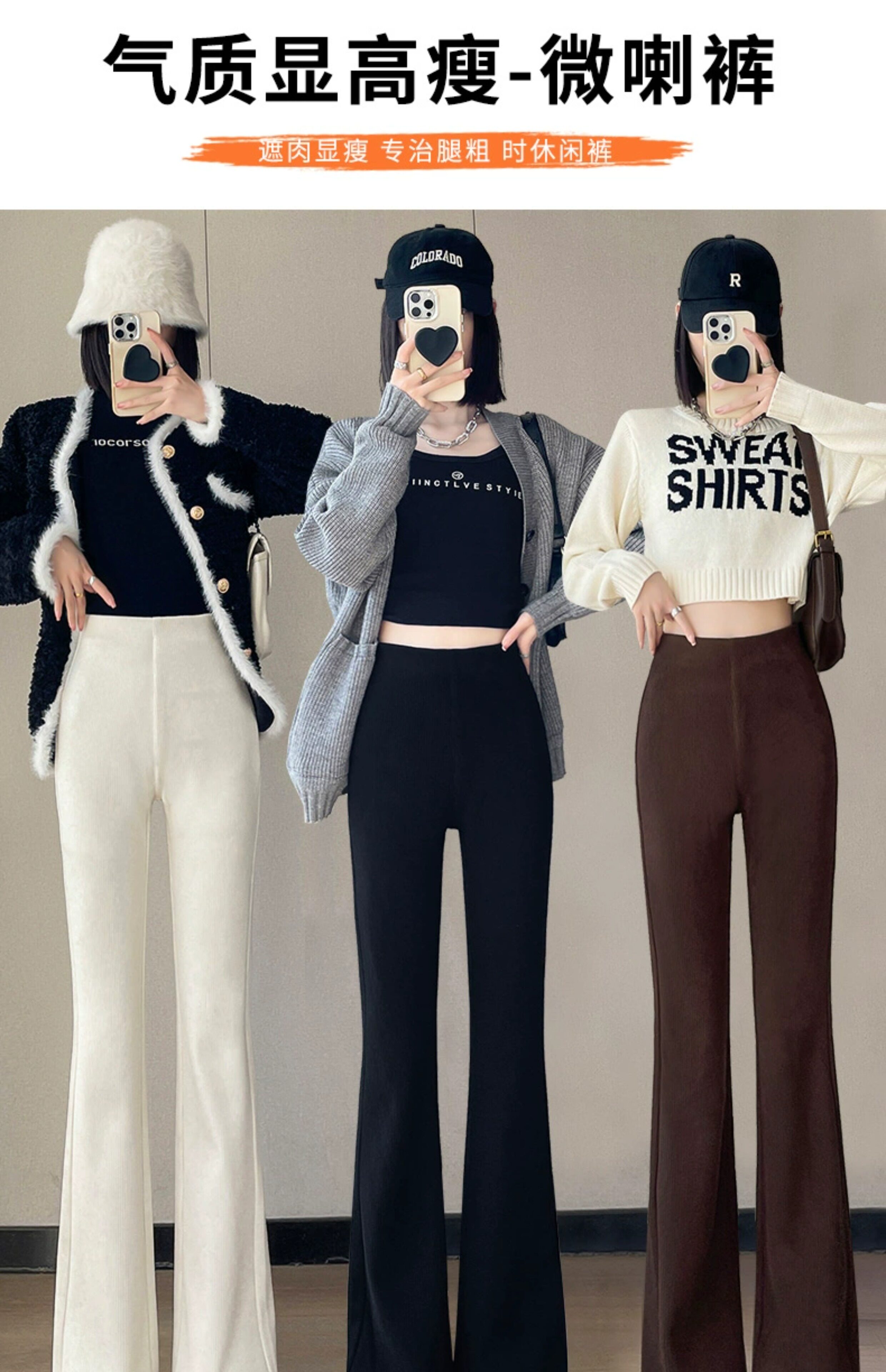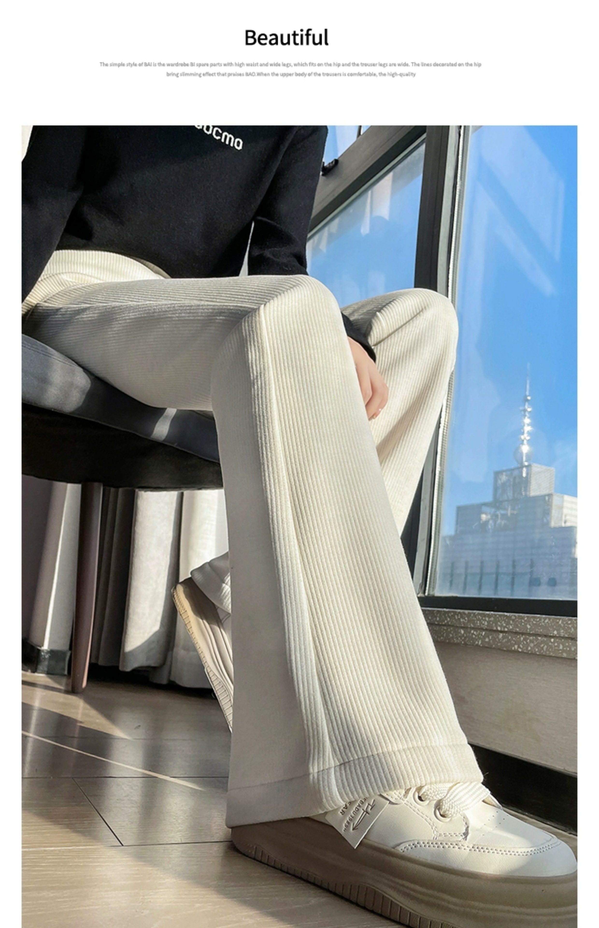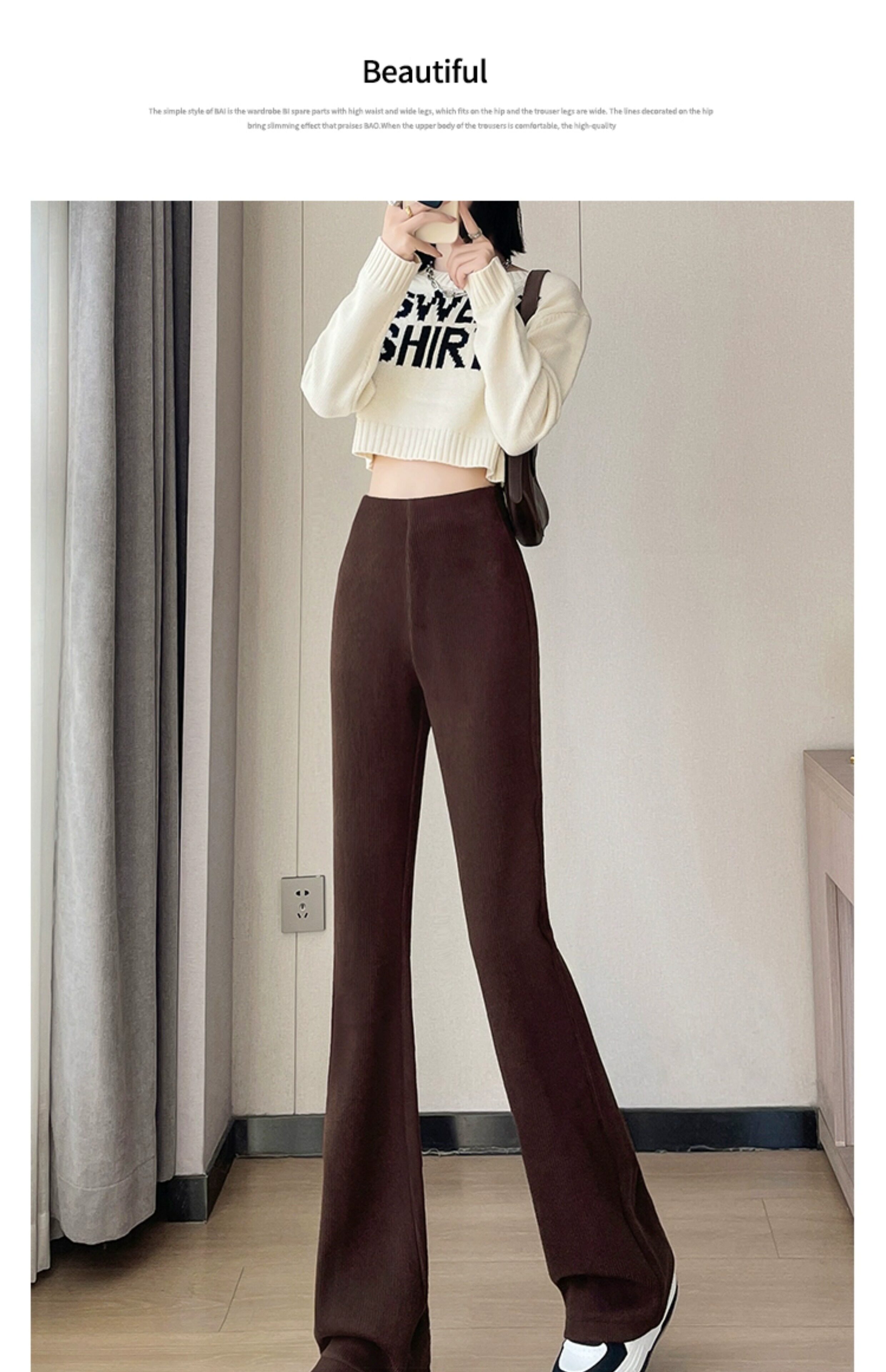 米白色喇叭褲高腰顯瘦女2026新款秋冬季加絨修身美式微喇休閒褲子