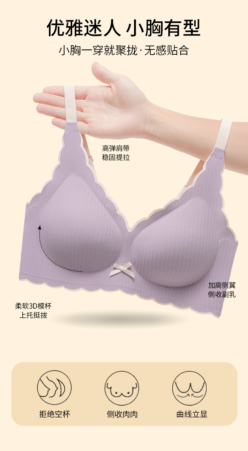 雲朵舒適無痕內衣女小胸聚攏收副乳防下垂無鋼圈背心式文胸罩胸衣