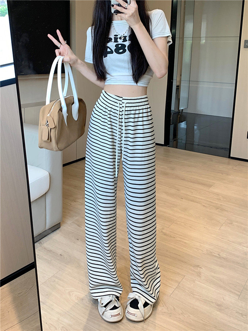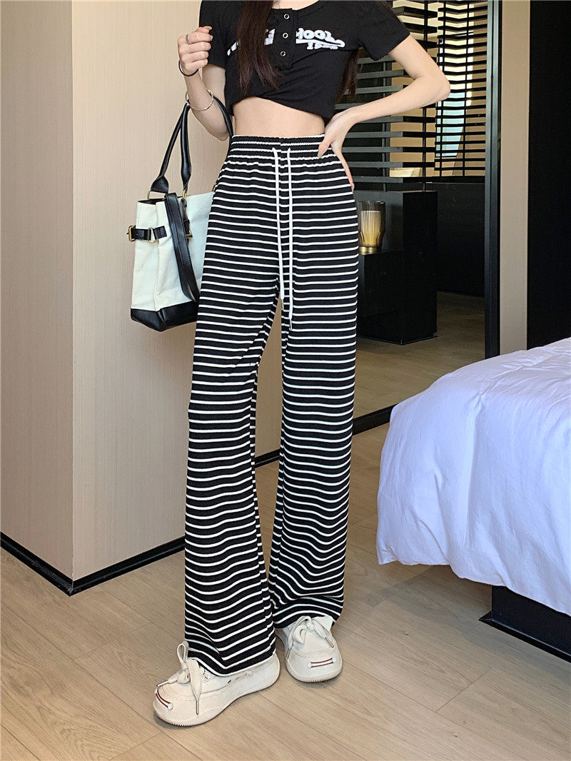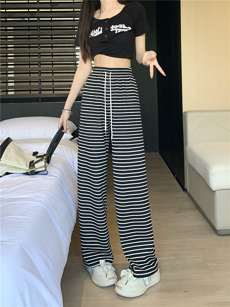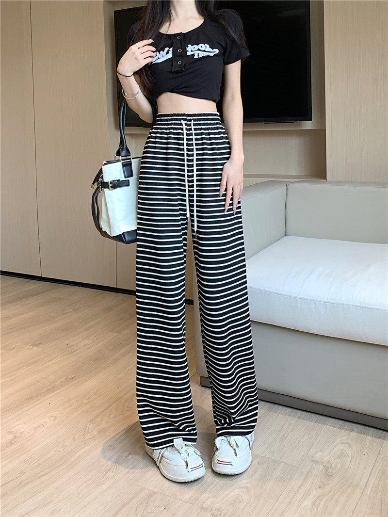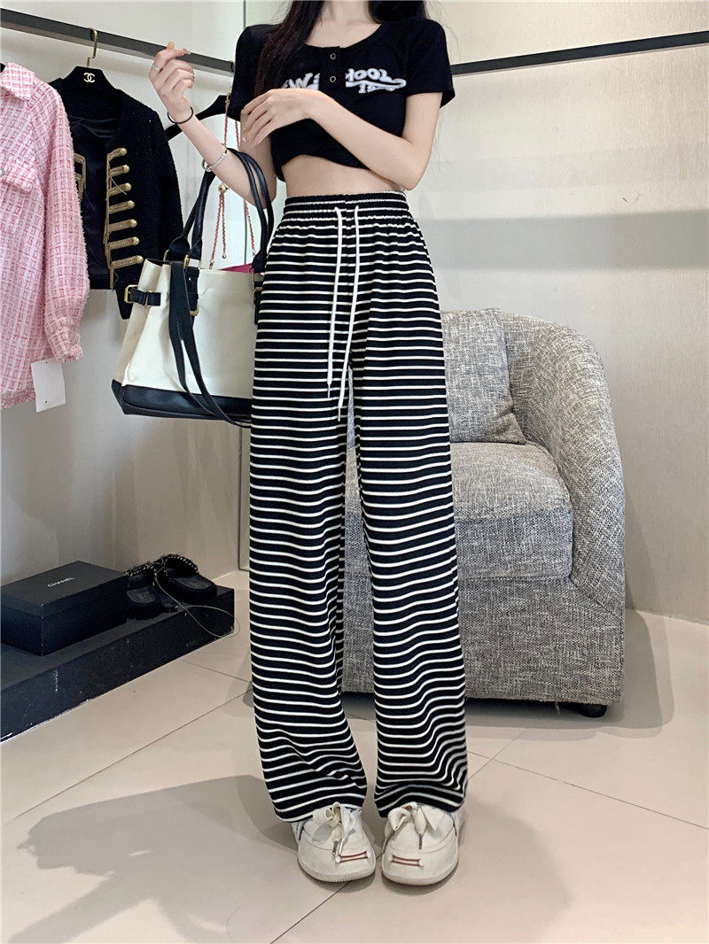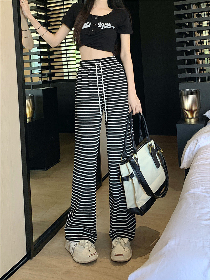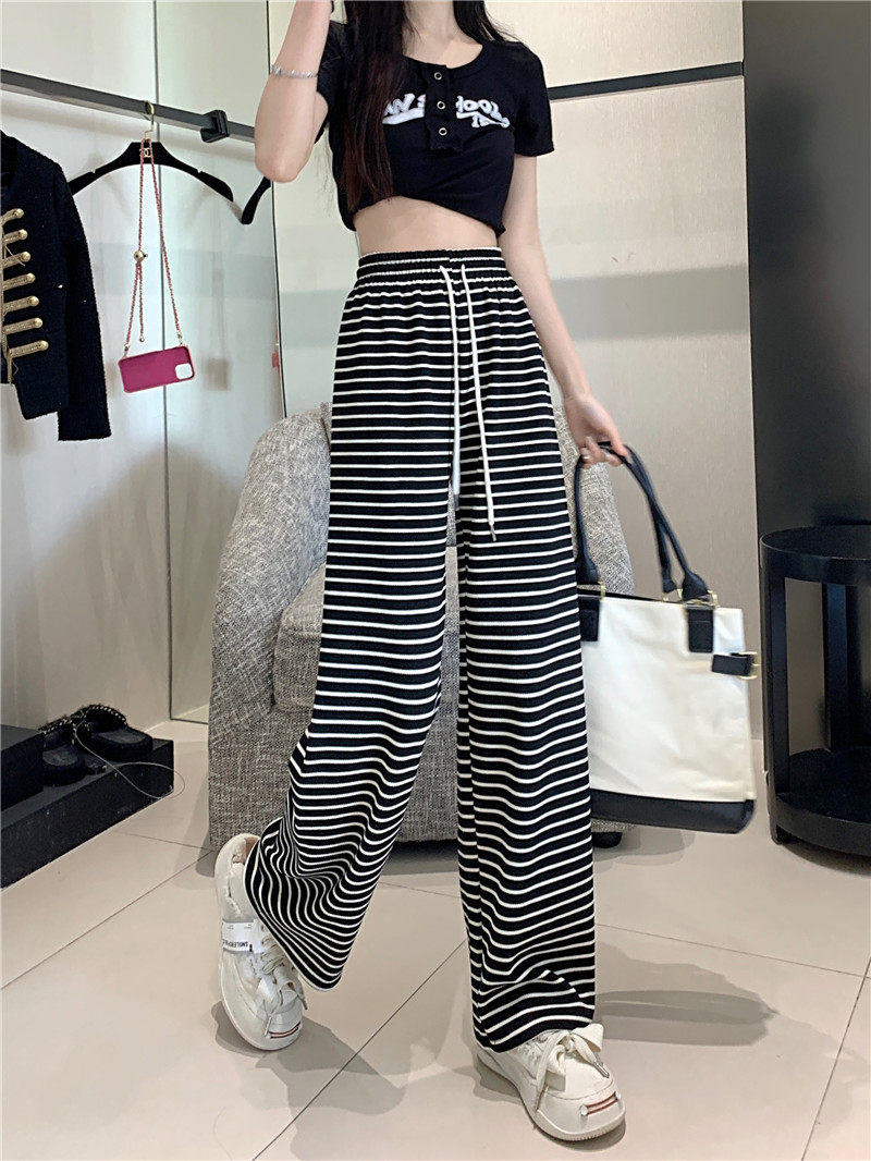 小個子黑白橫條紋窄版濶腿褲女夏季薄款150cm休閒運動直筒九分褲