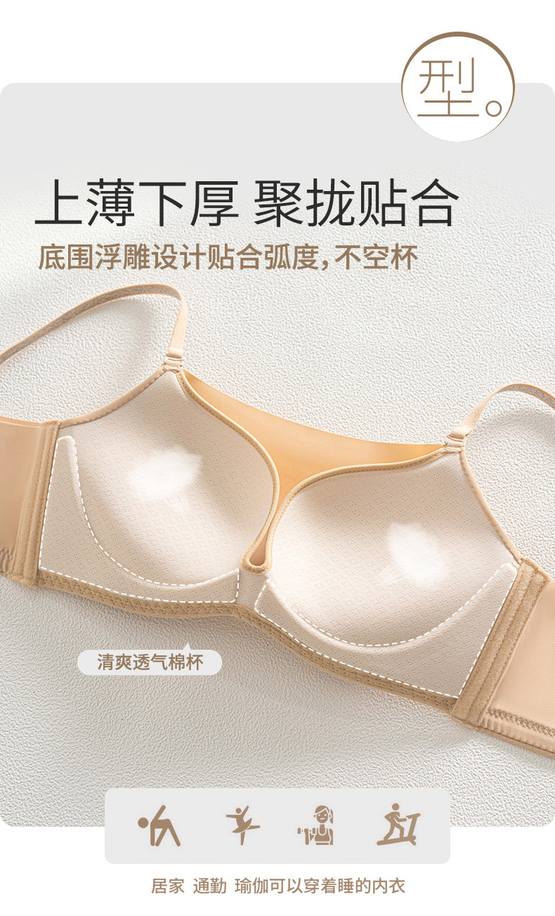 無鋼圈運動文胸抹胸內衣女防走光加厚聚攏小胸上托防下垂平胸專用
