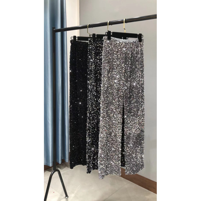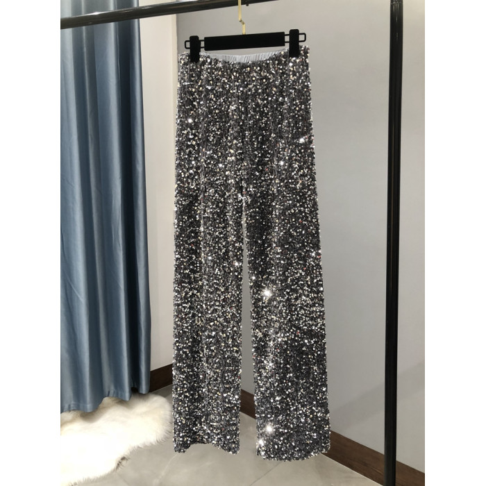 秋冬加厚韓國絨亮片濶腿褲大長腿垂感大碼拖地褲閃亮加長直筒褲女