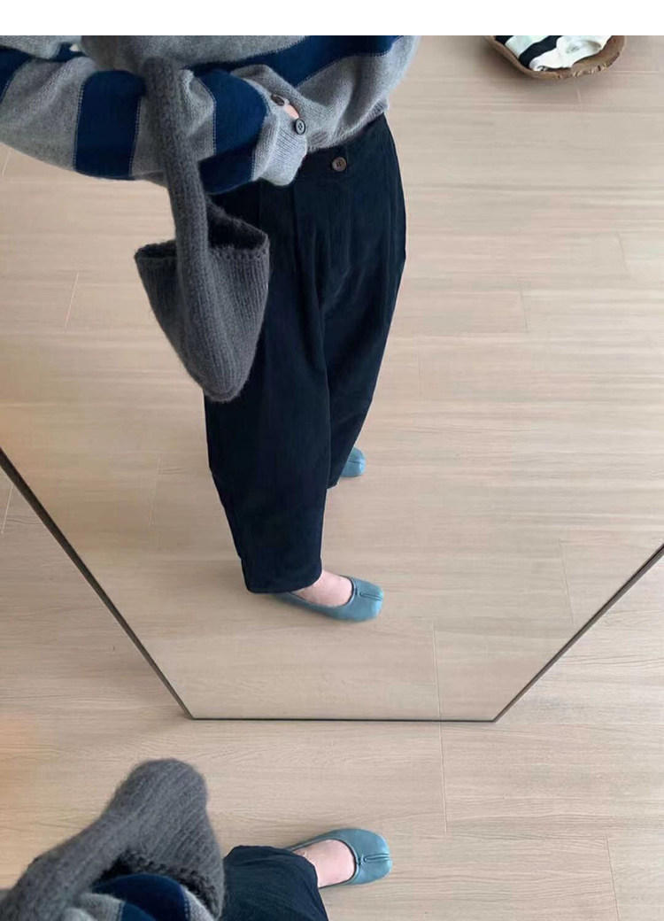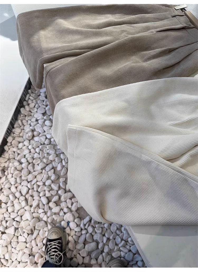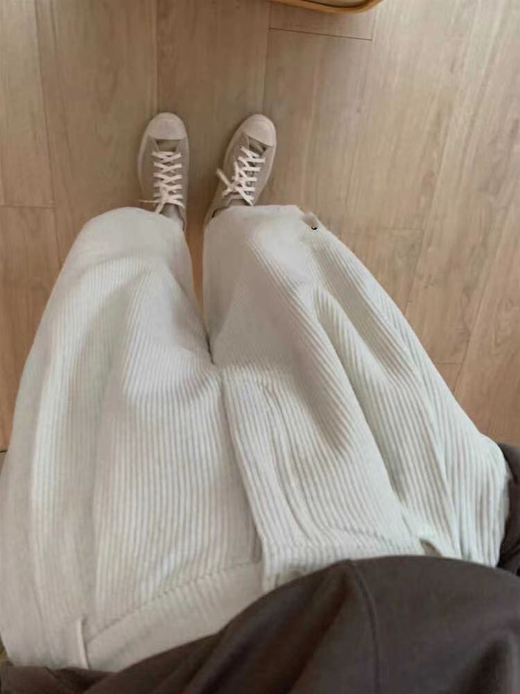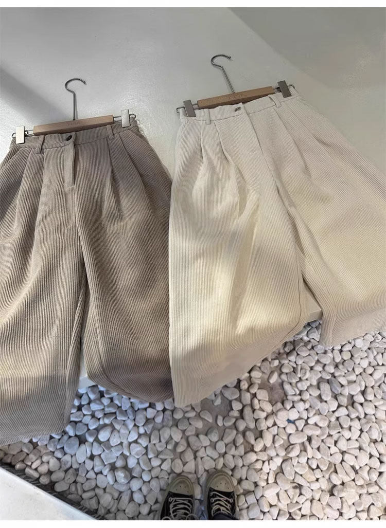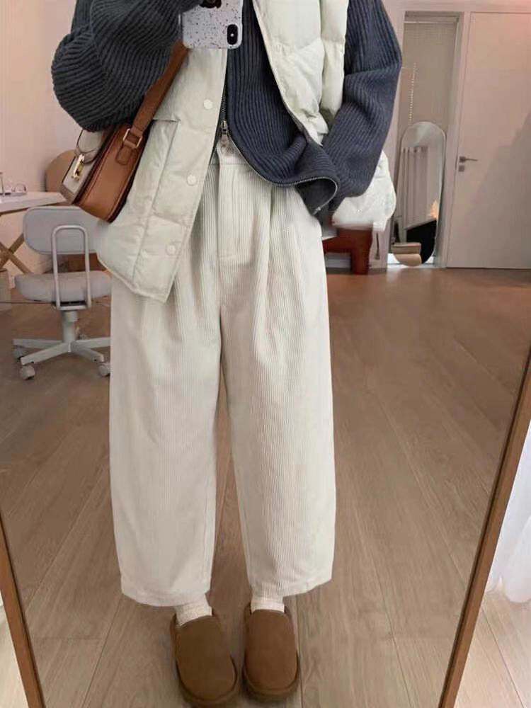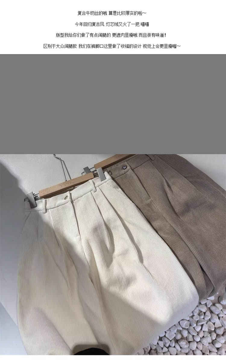 八分米色燈芯絨濶腿褲女秋冬加厚小個子寬鬆顯瘦休閒蘿蔔奶奶褲xs