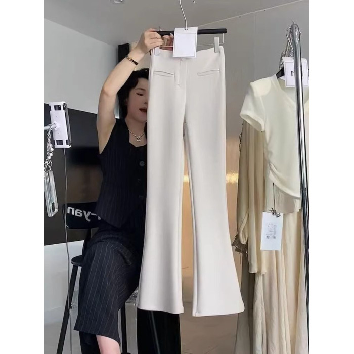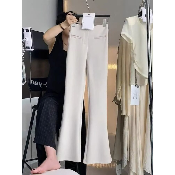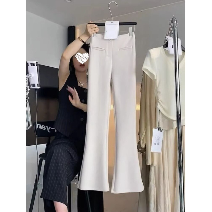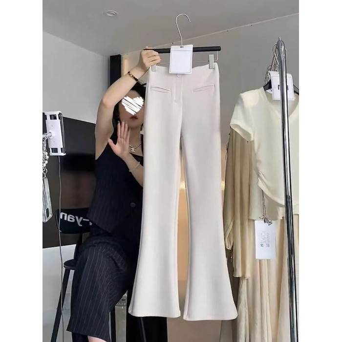 白色微喇叭高腰休閒褲子女2026新款春夏辣妹修身百搭小個子西裝褲