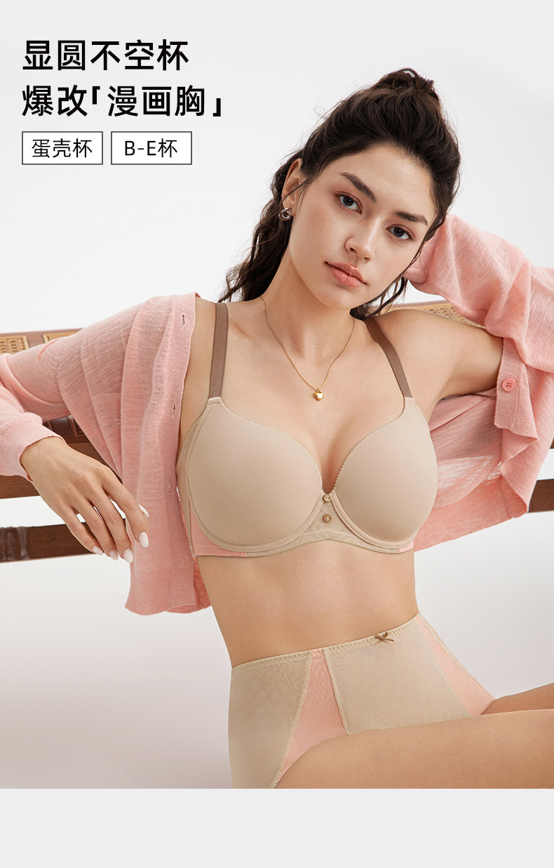 怡倩【蛋殼杯】無痕內衣女大胸顯小夏隱形聚攏收副乳薄款光面文胸