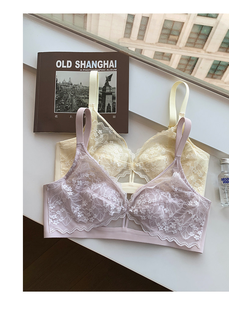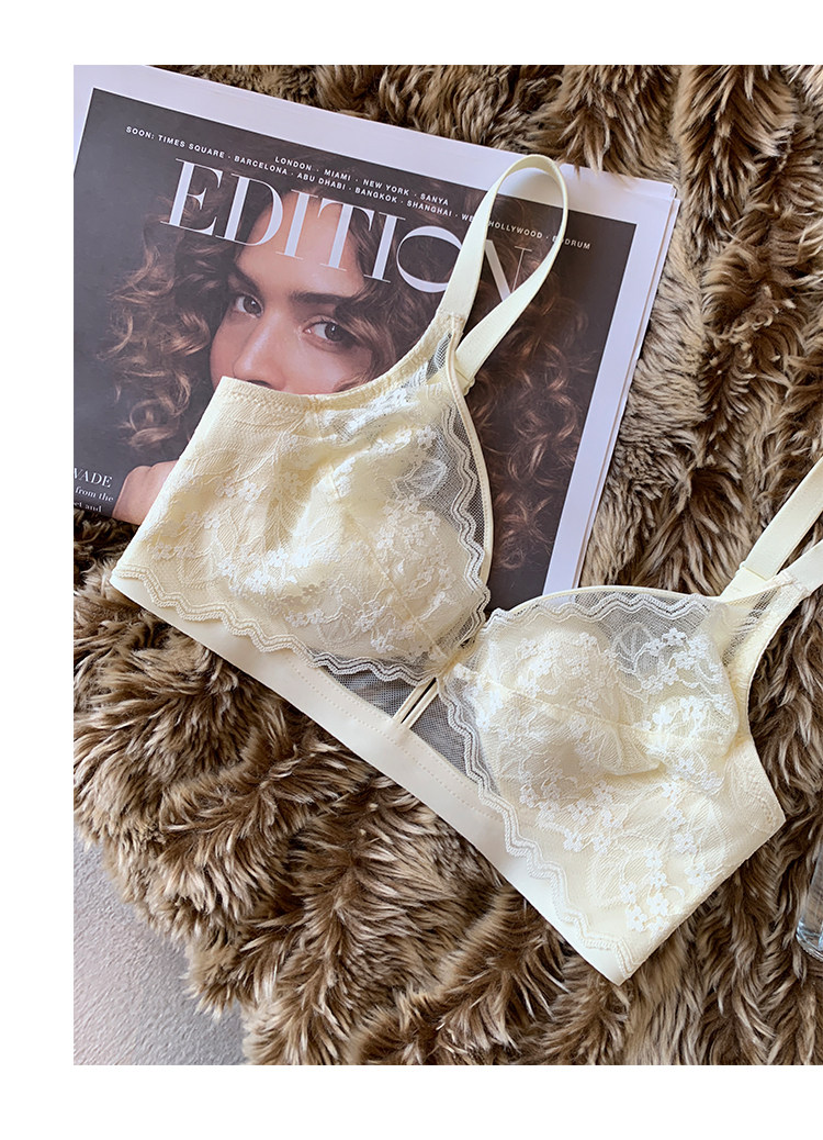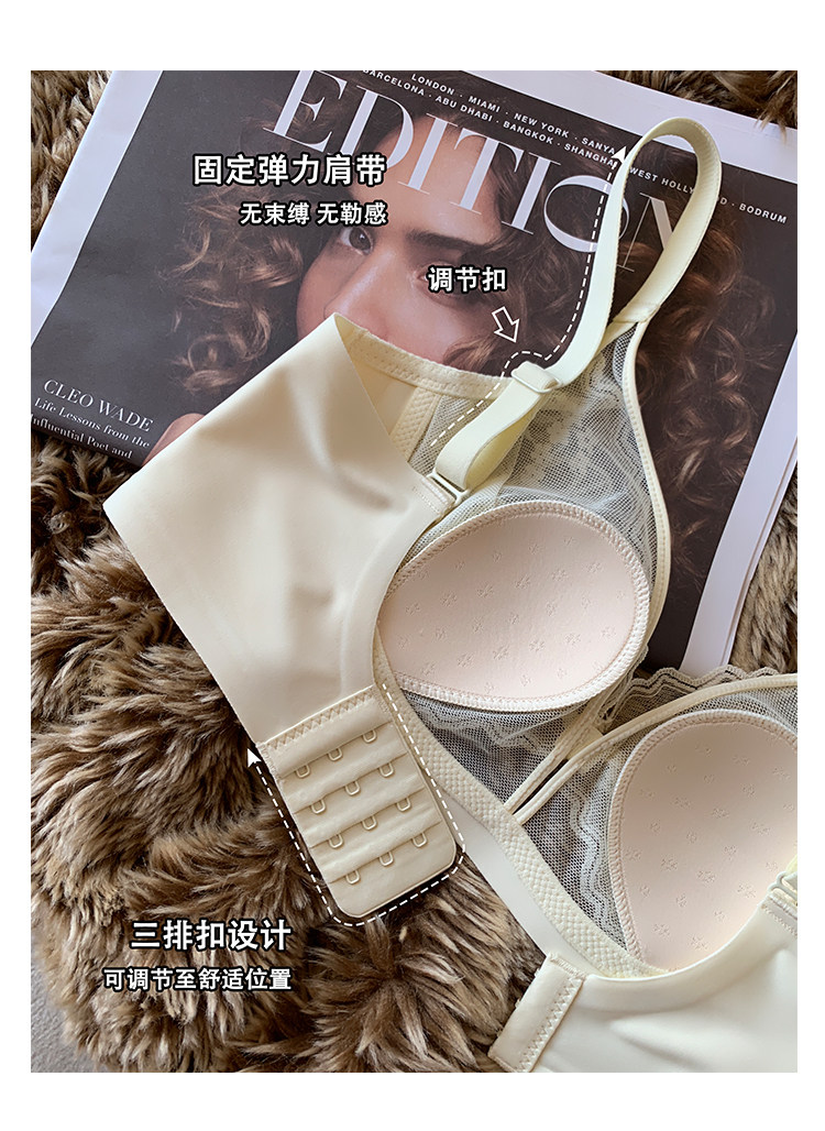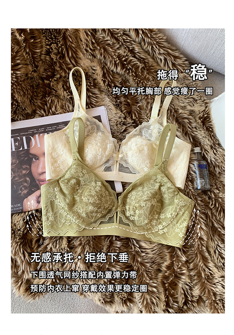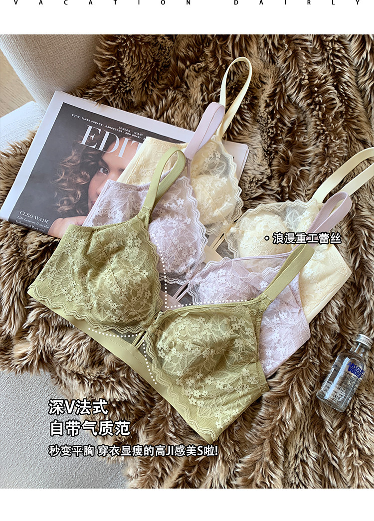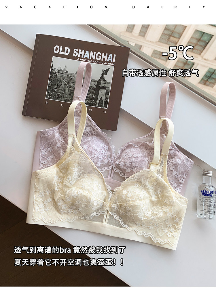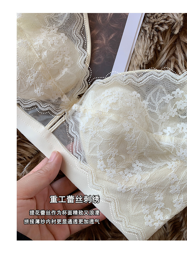 法式蕾絲薄款水晶杯大胸顯小內衣女顯瘦無鋼圈收副乳兔耳朵杯文胸