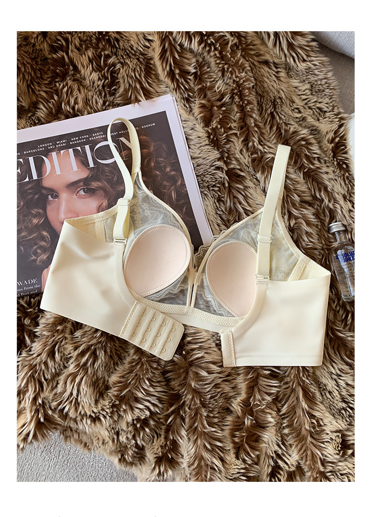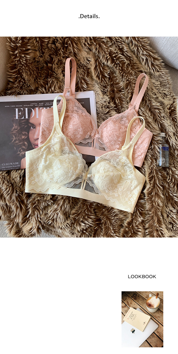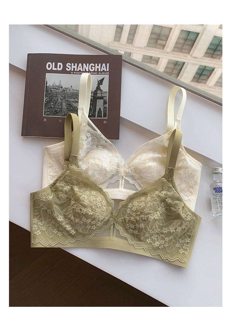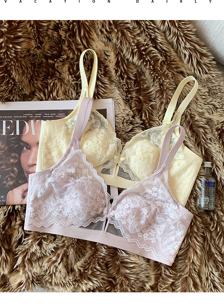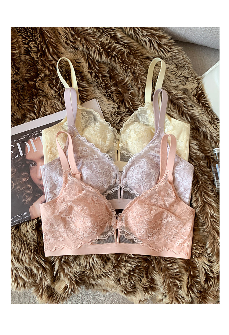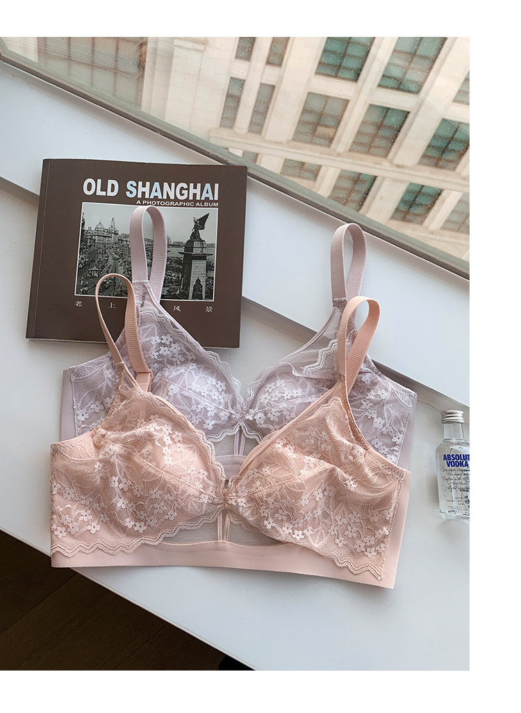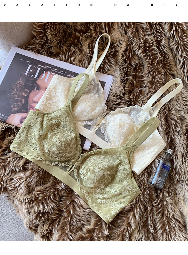 法式蕾絲薄款水晶杯大胸顯小內衣女顯瘦無鋼圈收副乳兔耳朵杯文胸