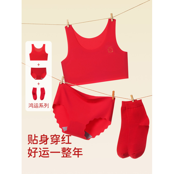 2026馬年本命年內衣套裝女童發育期小背心紅色兒童女孩12嵗少女