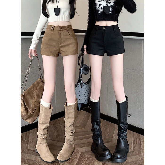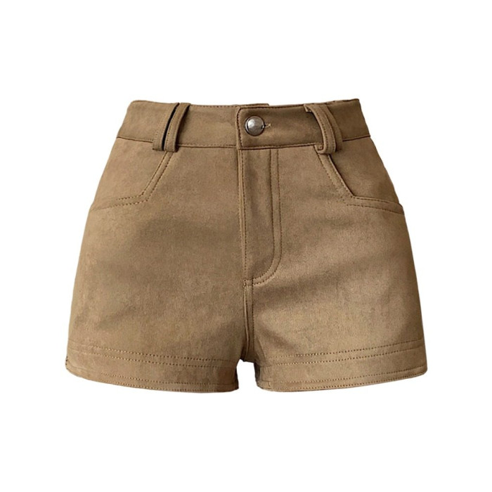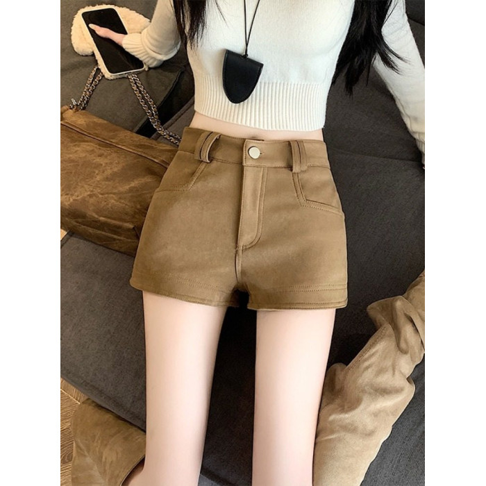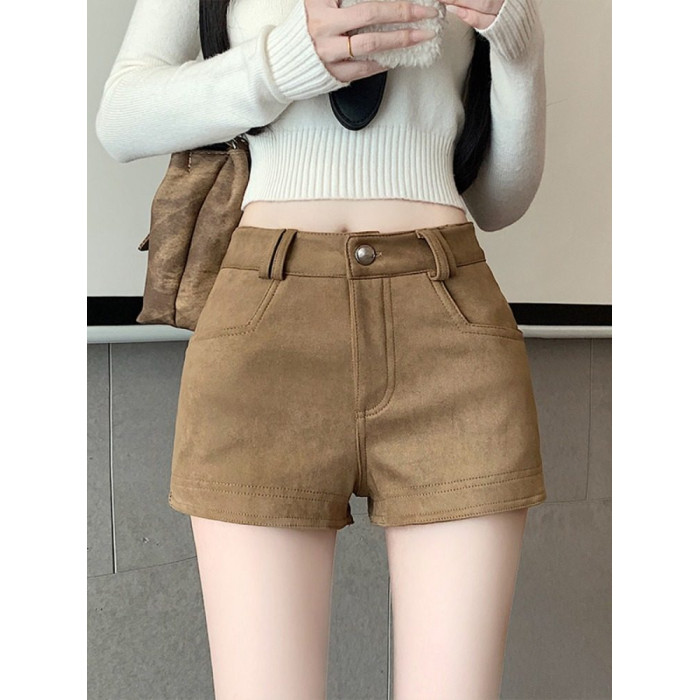 美式復古春秋短褲女外穿2026新款鹿皮絨高腰緊身辣妹a字包臀熱褲