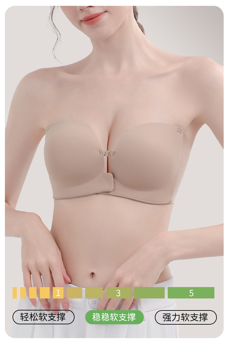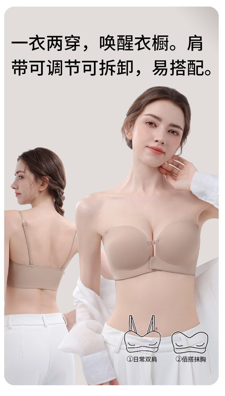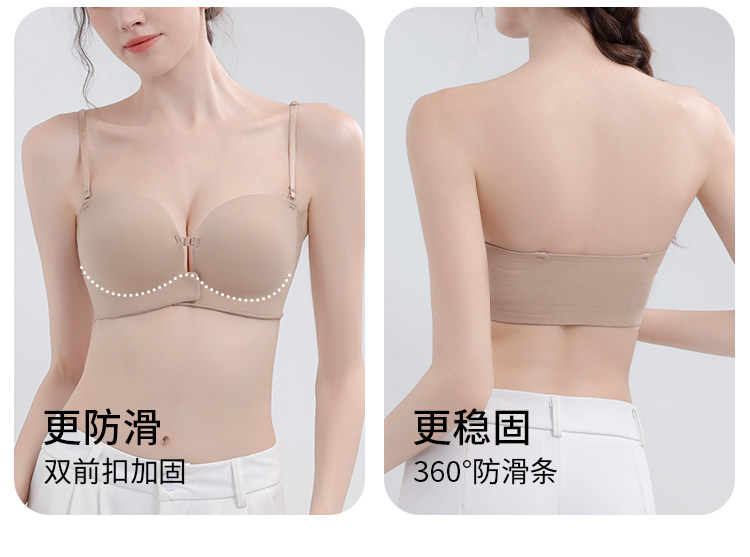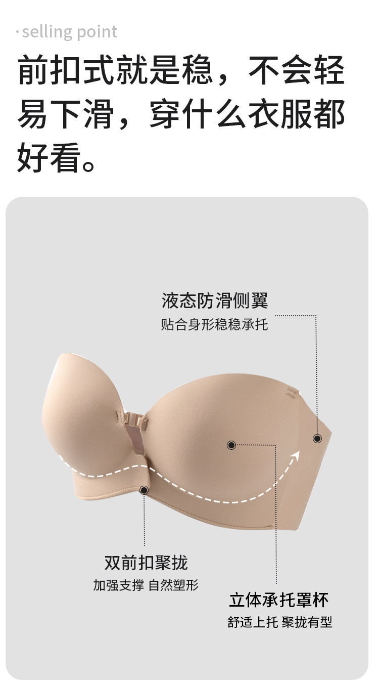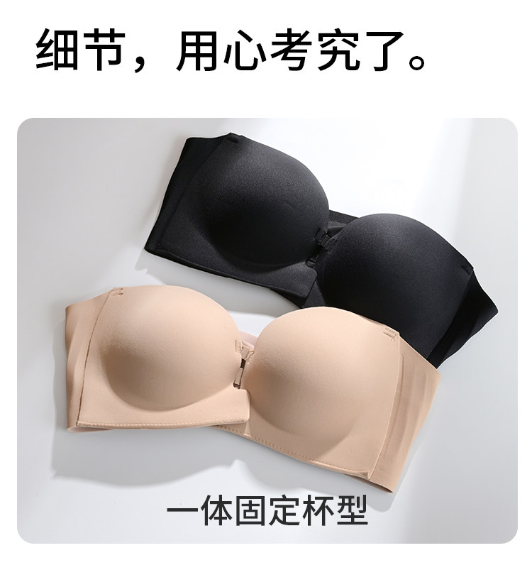貓人前釦抹胸粉底液內衣女小胸聚攏顯大隱形防滑無肩帶裹胸文胸罩