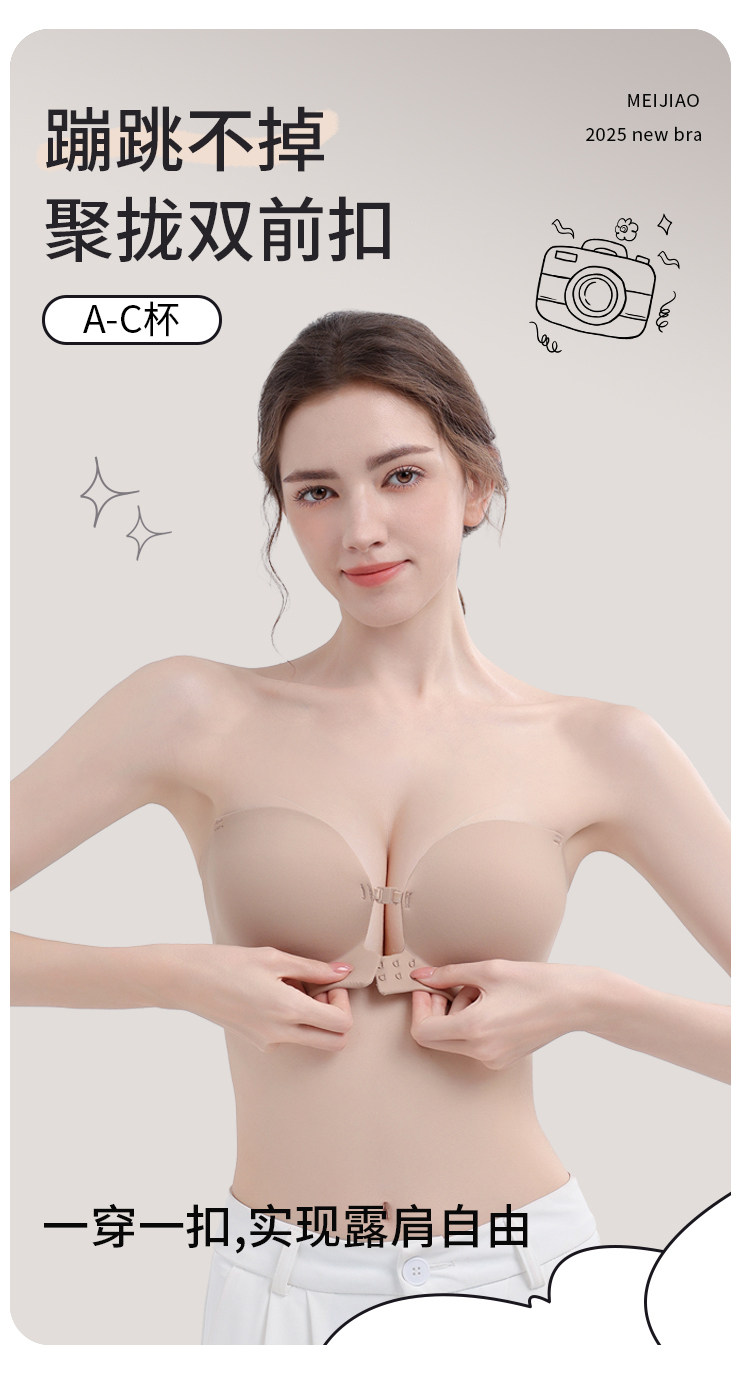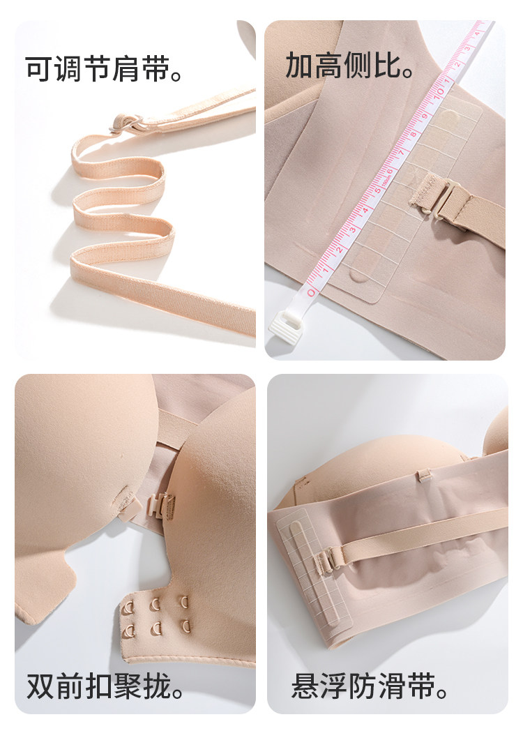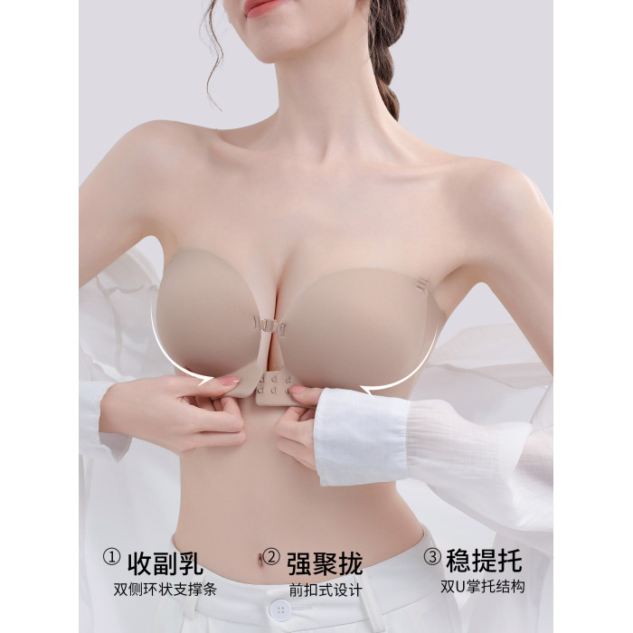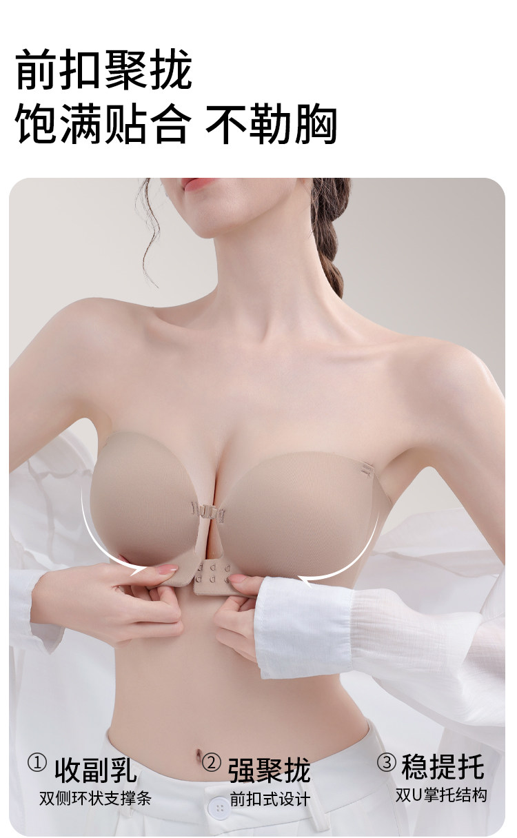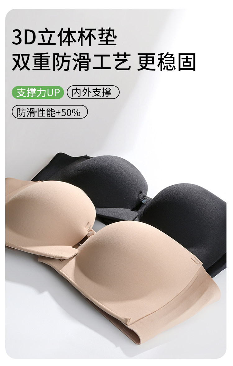 貓人前釦抹胸粉底液內衣女小胸聚攏顯大隱形防滑無肩帶裹胸文胸罩