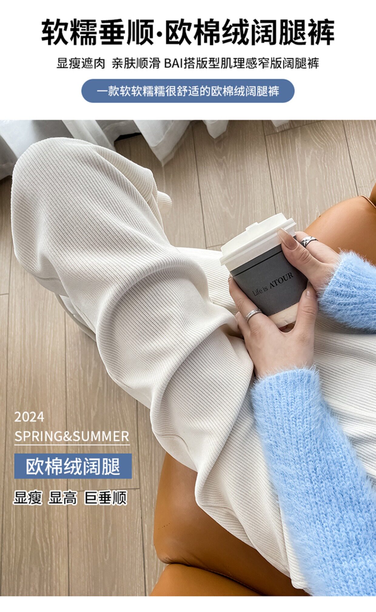 雪尼爾白色濶腿褲女春秋冬季加絨2026新款小個子直筒休閒糯米褲子