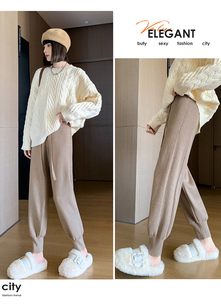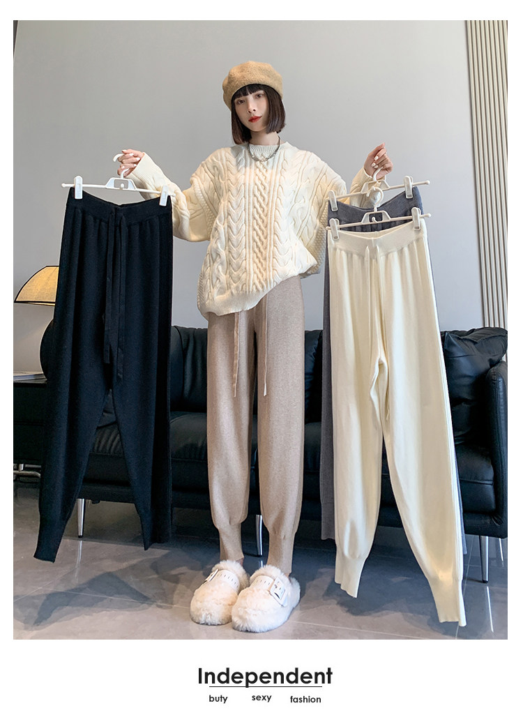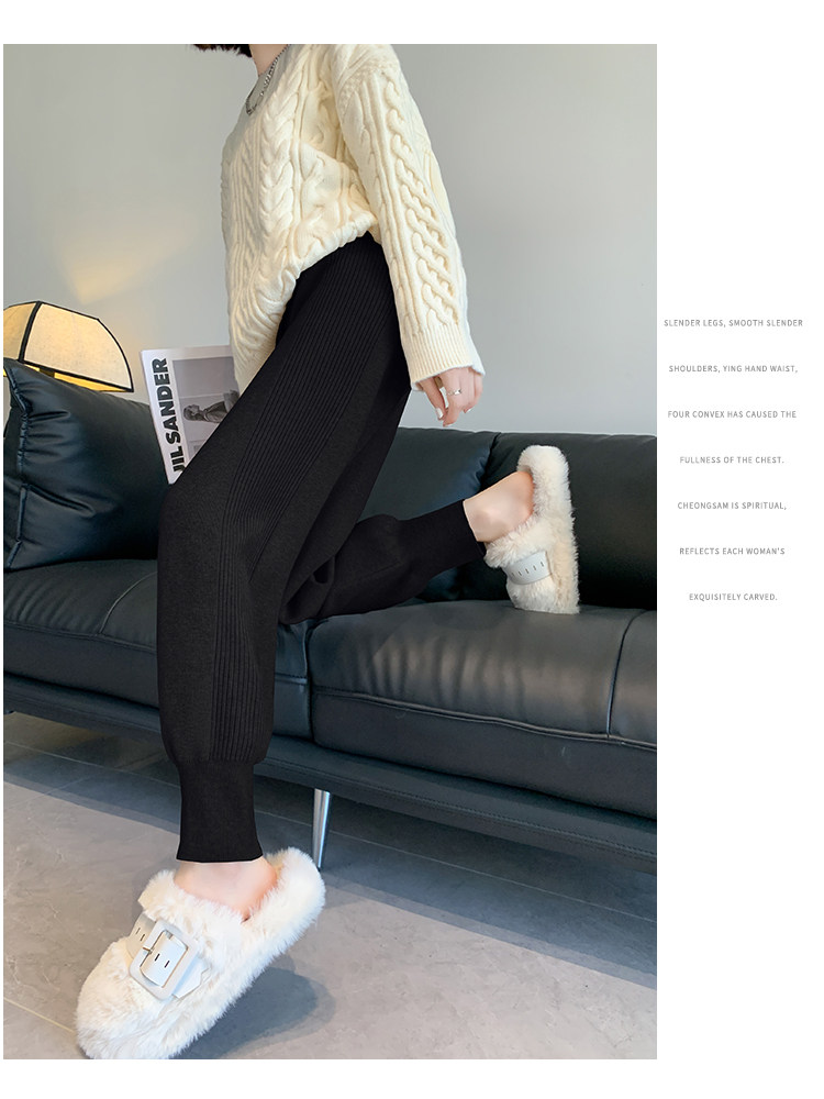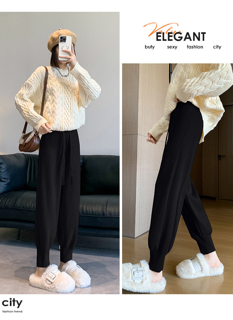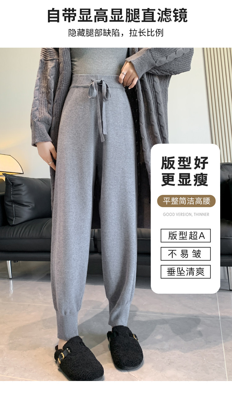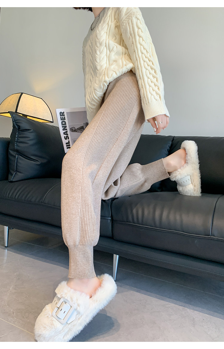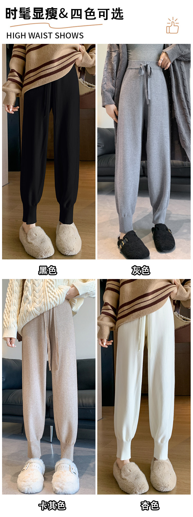 軟糯針織加厚哈倫褲女秋冬小個子高腰顯瘦寬鬆束腳九分奶奶蘿蔔褲