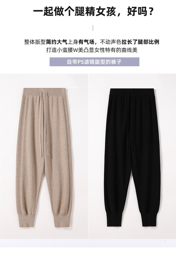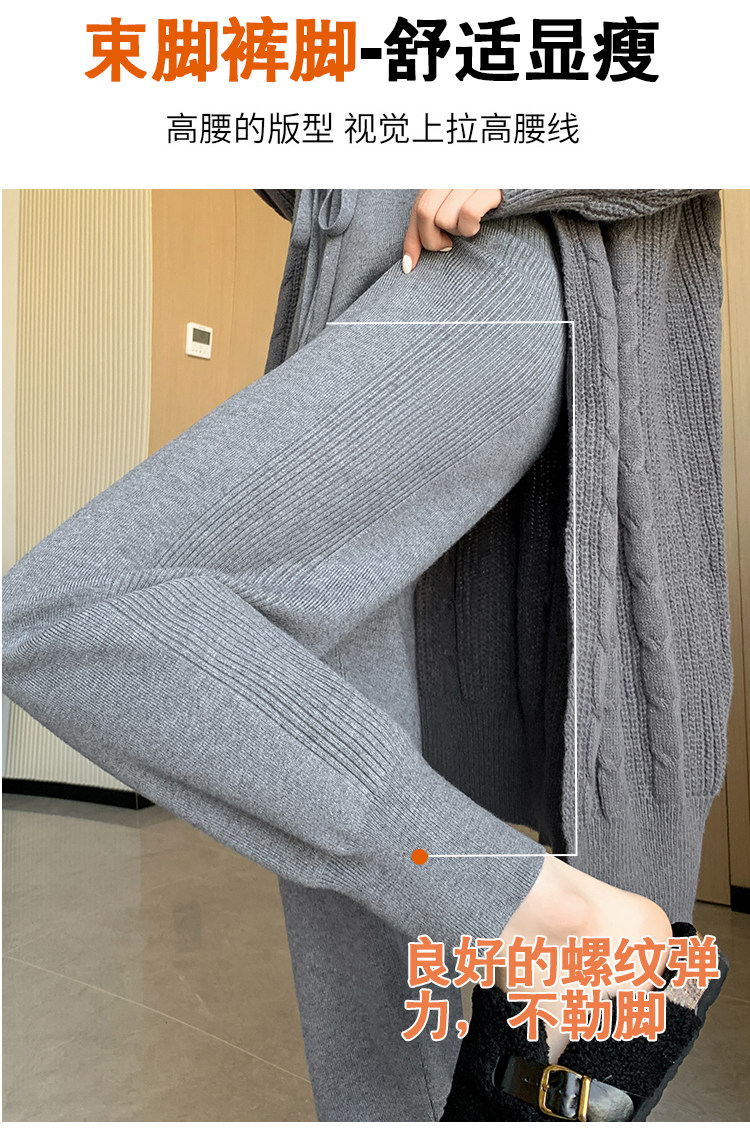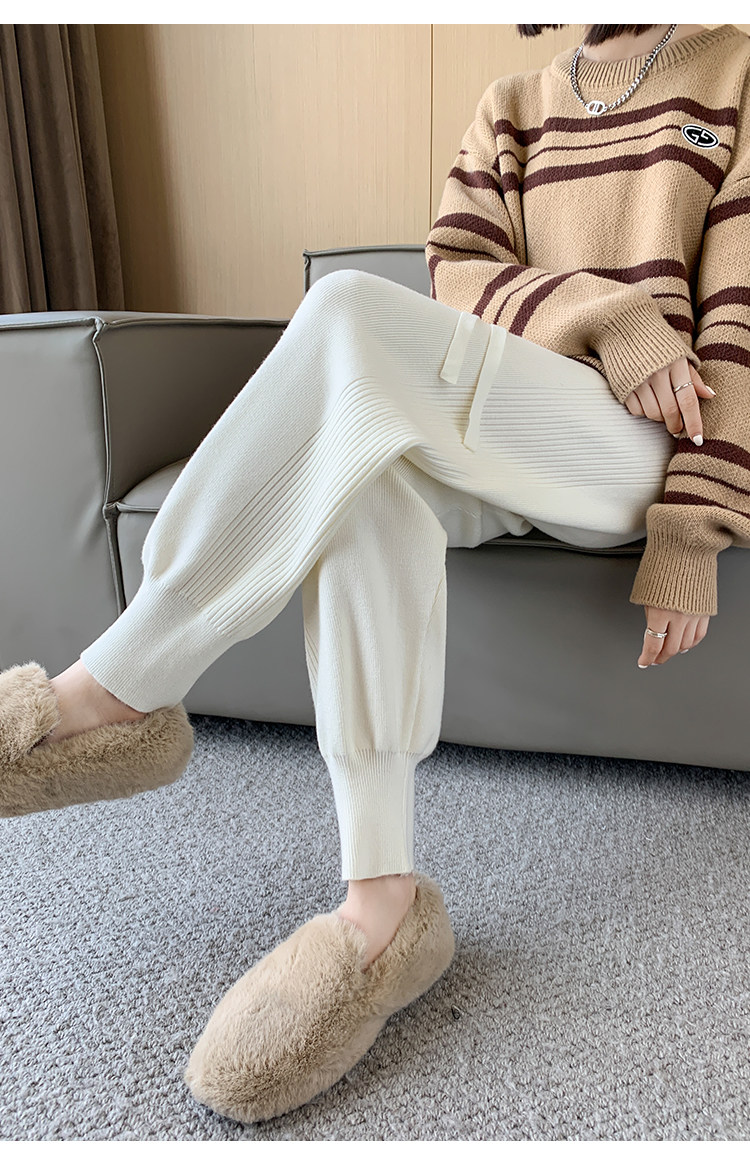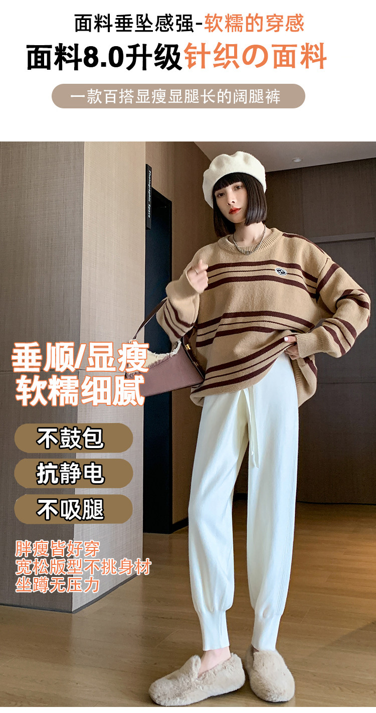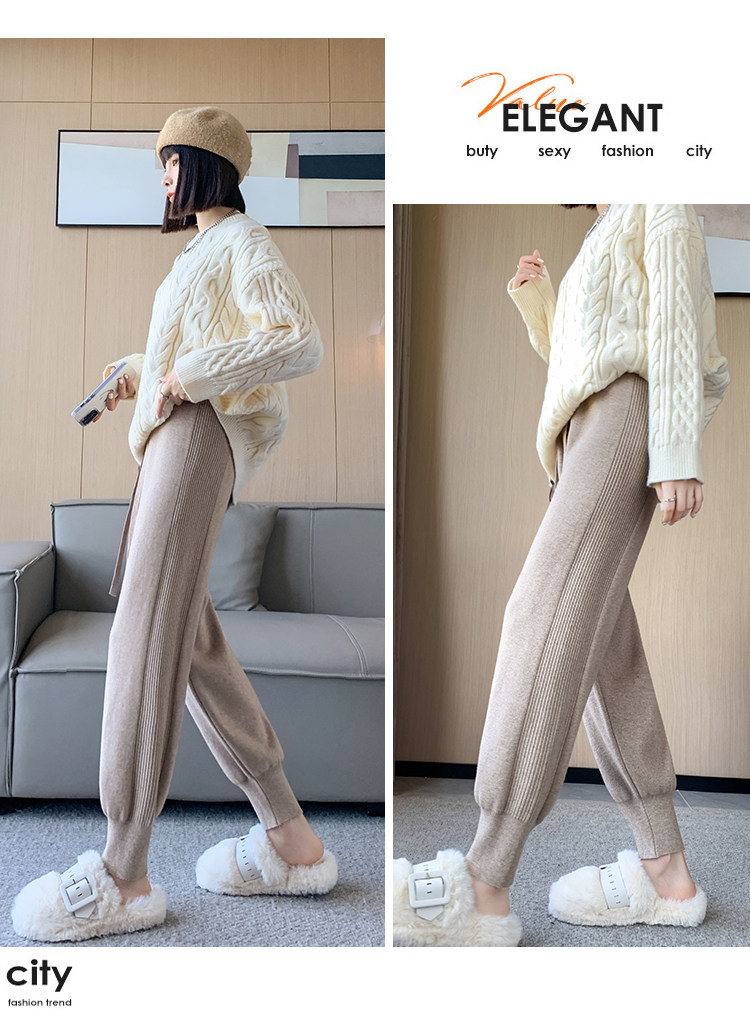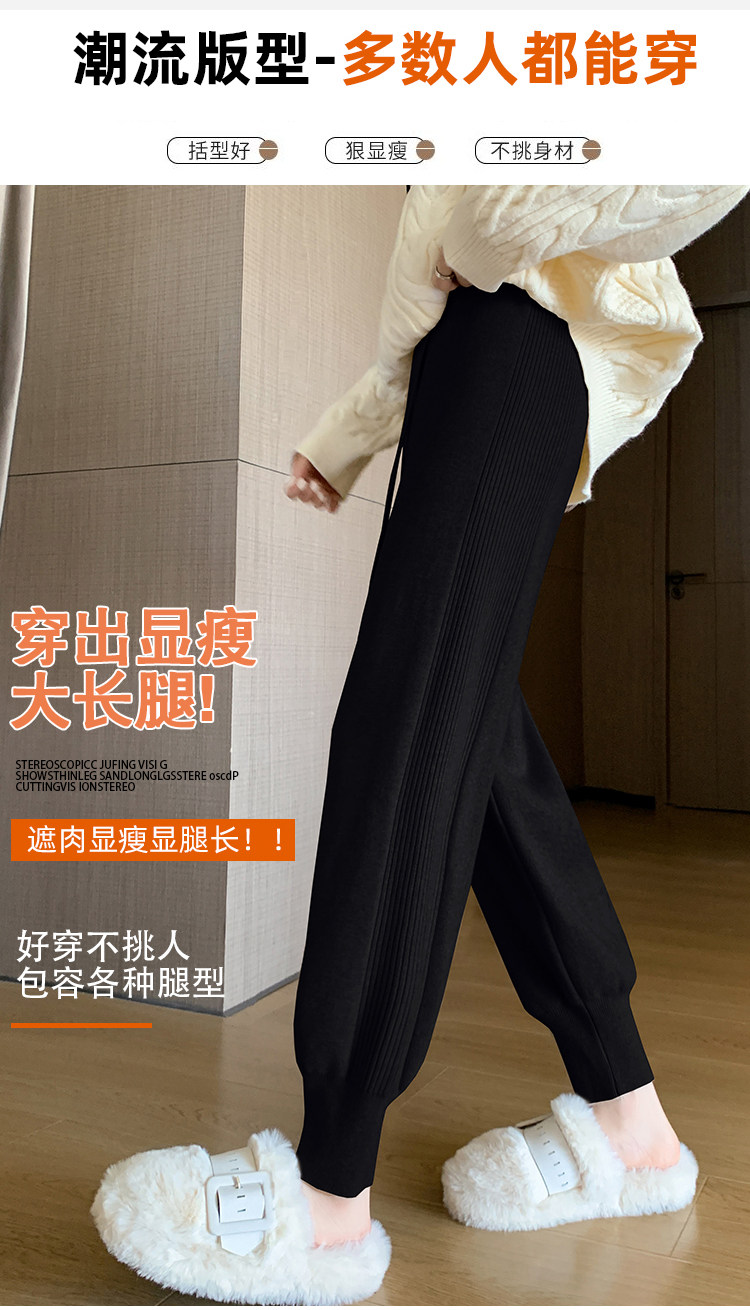 軟糯針織加厚哈倫褲女秋冬小個子高腰顯瘦寬鬆束腳九分奶奶蘿蔔褲
