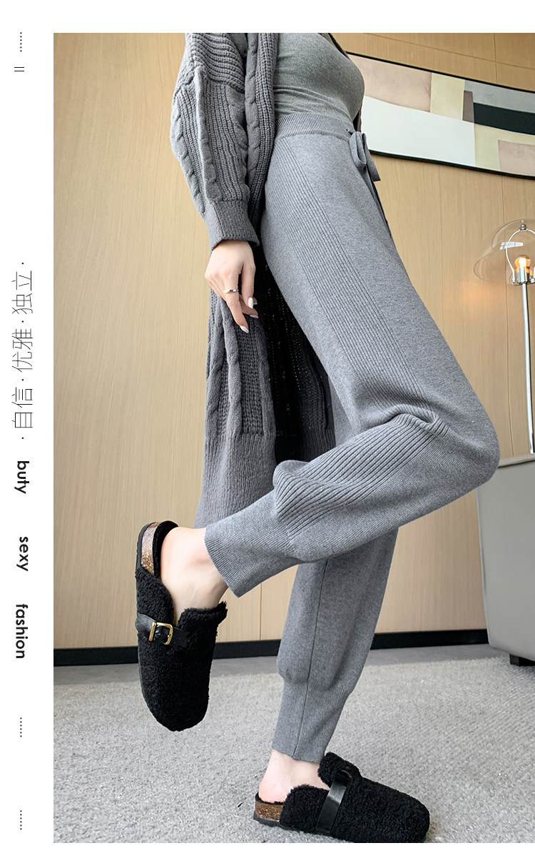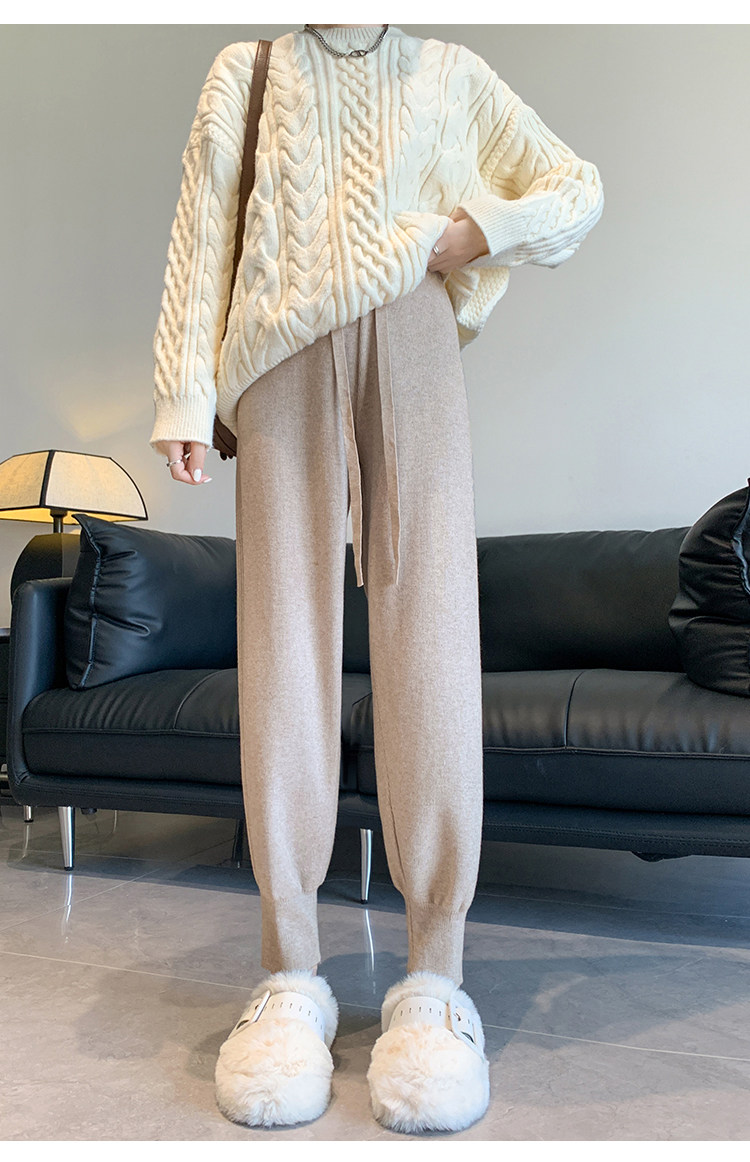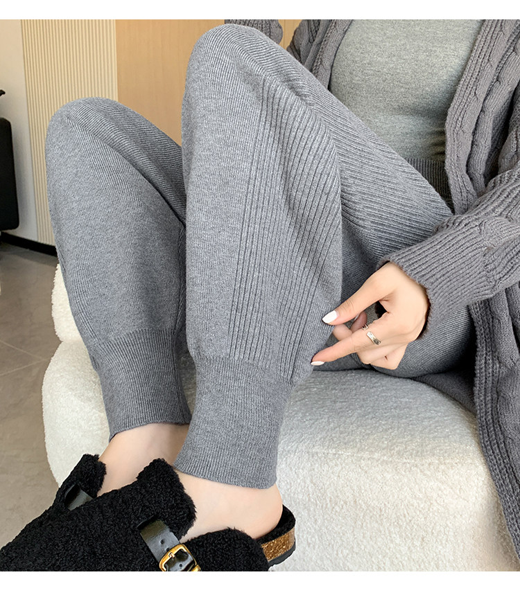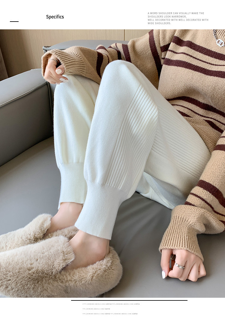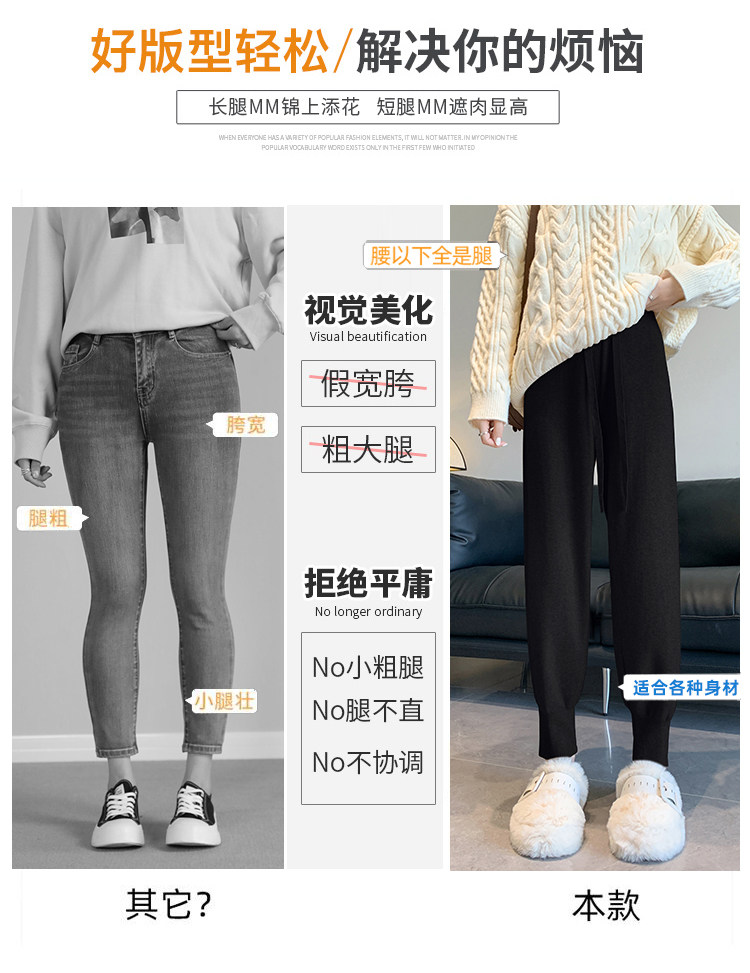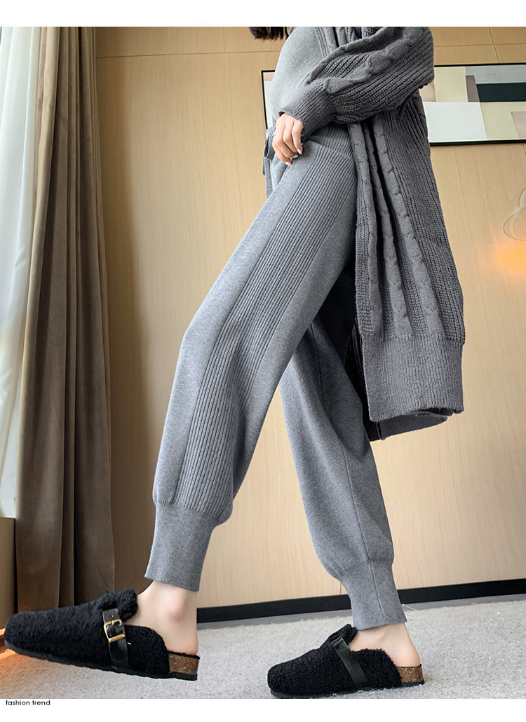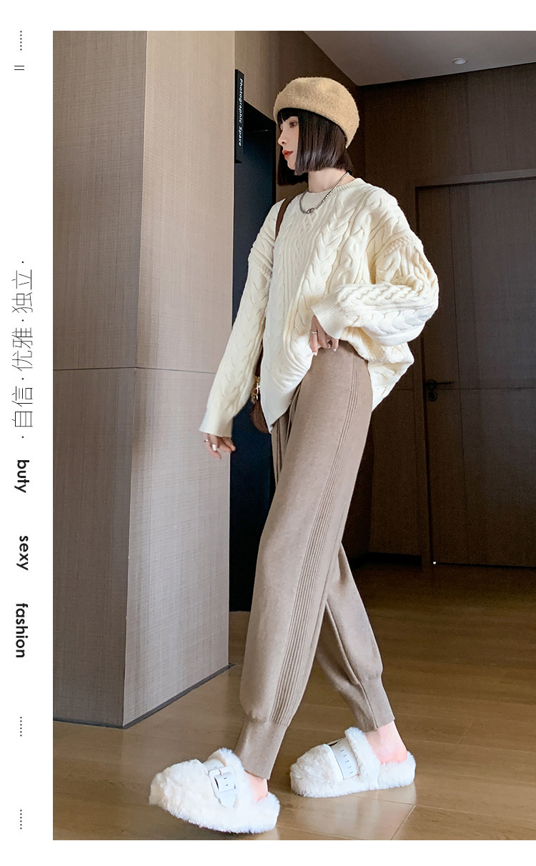 軟糯針織加厚哈倫褲女秋冬小個子高腰顯瘦寬鬆束腳九分奶奶蘿蔔褲